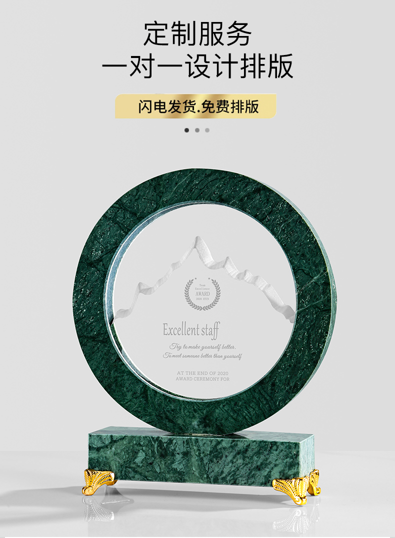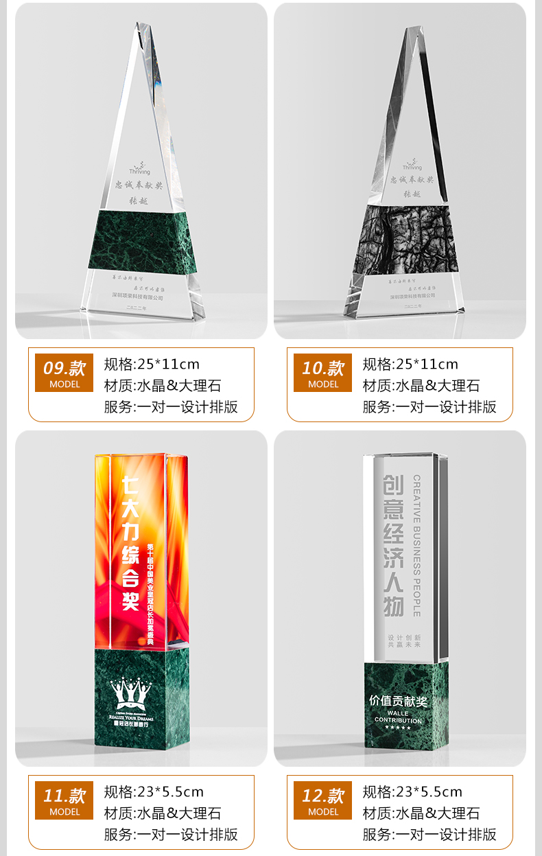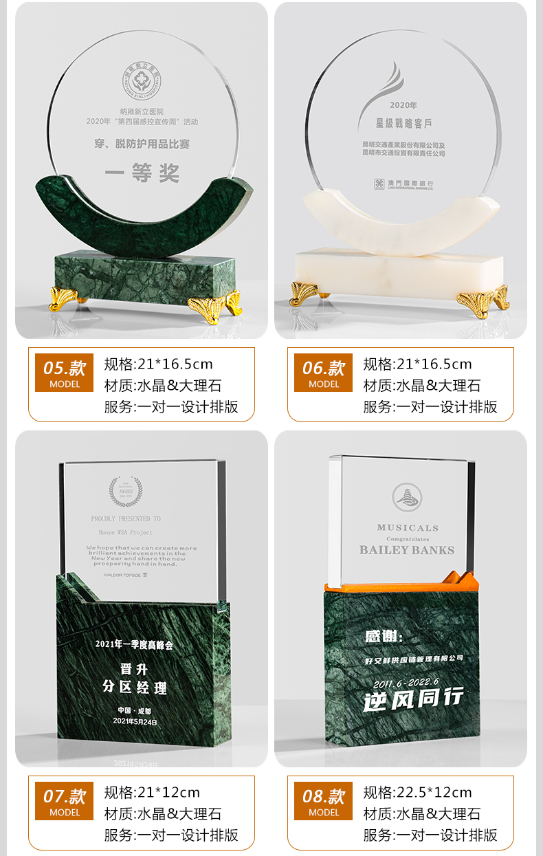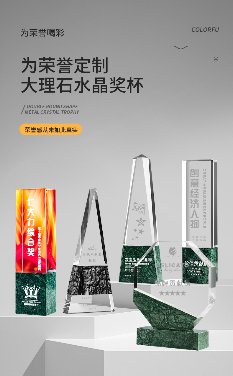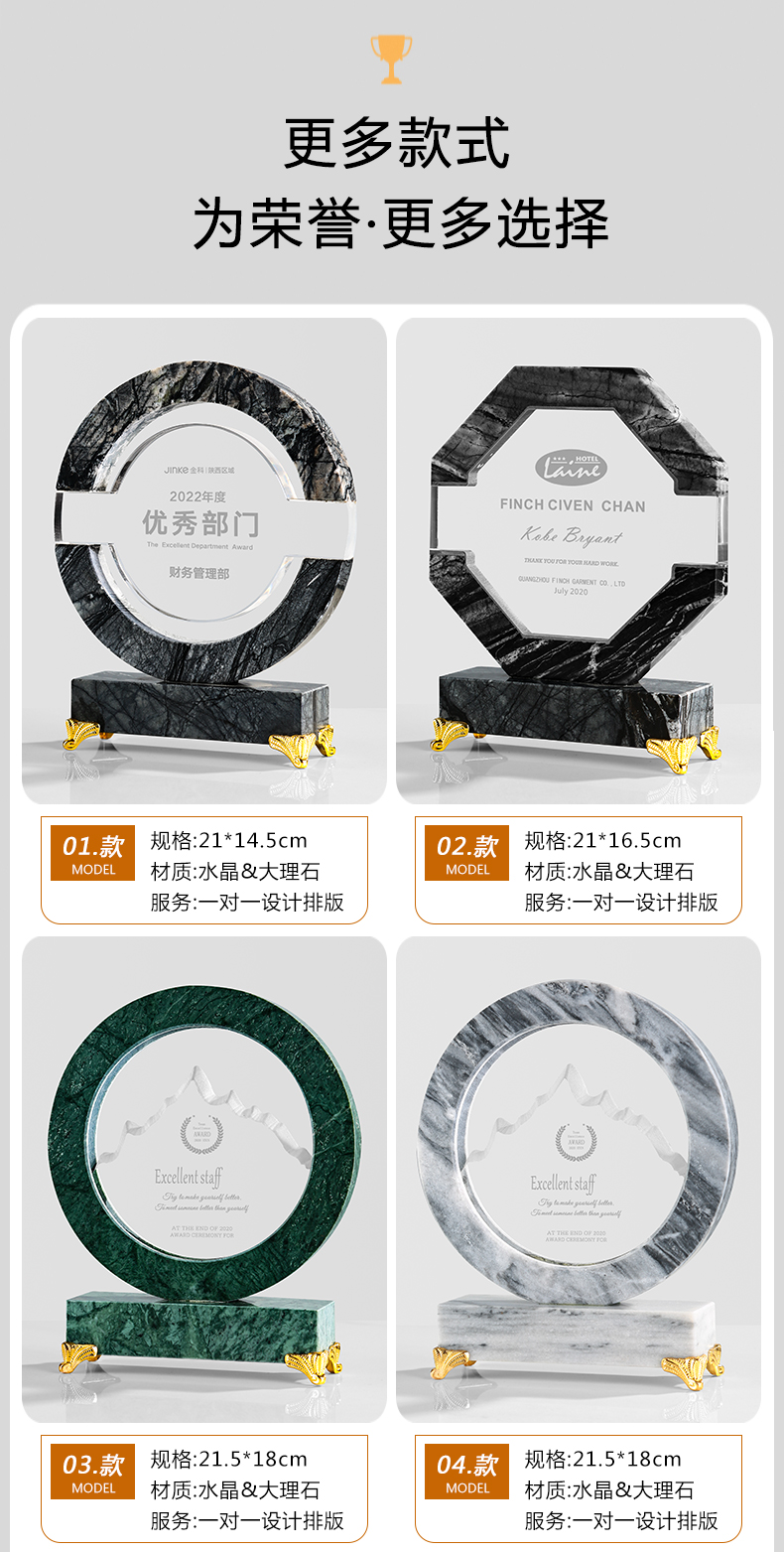 241 / 【大理石水晶】高档大理石水晶奖杯公司年会优秀员工嘉奖纪念退休颁奖活动定制