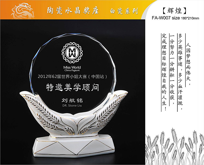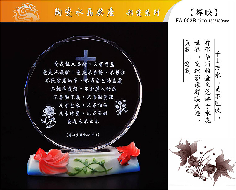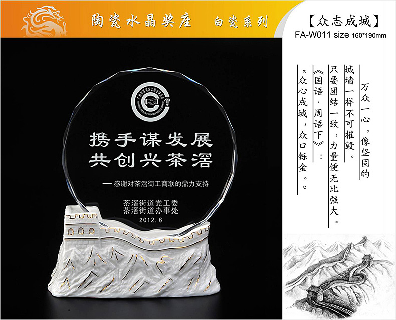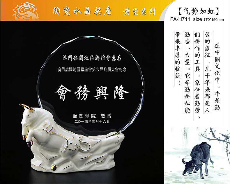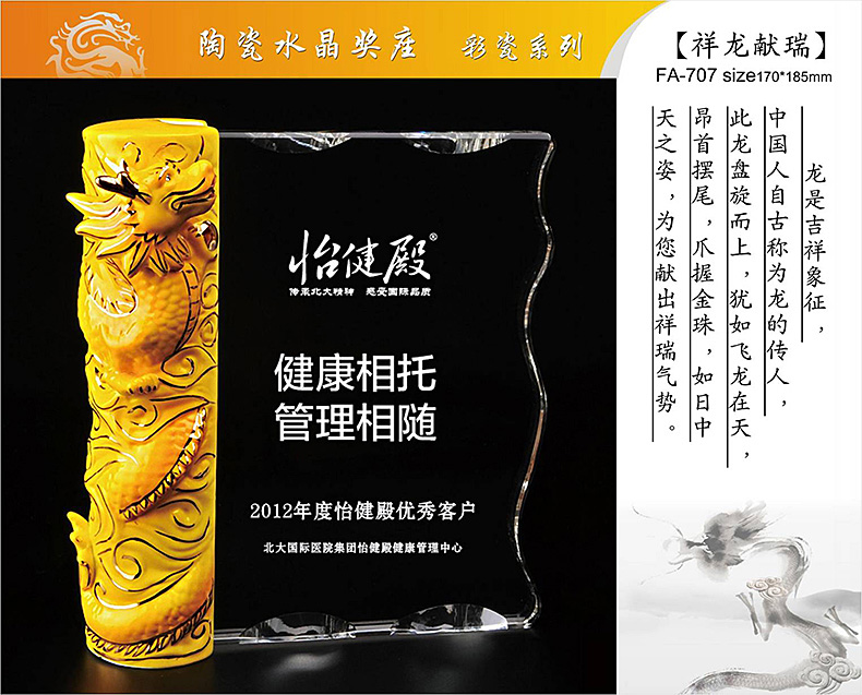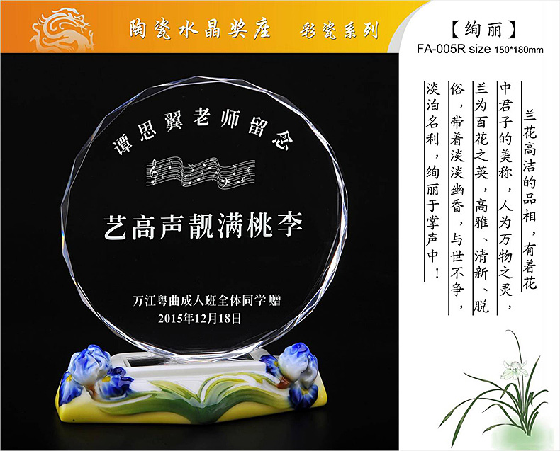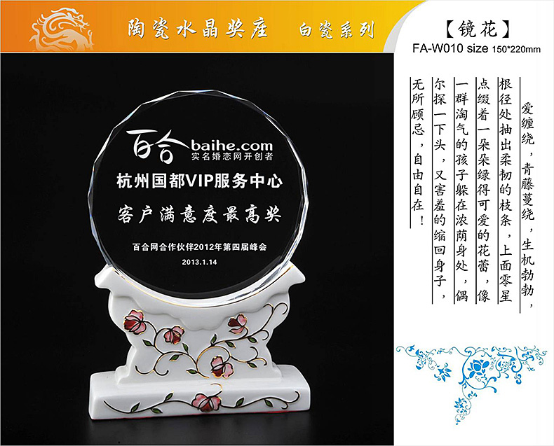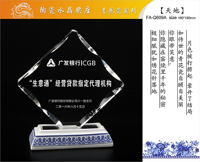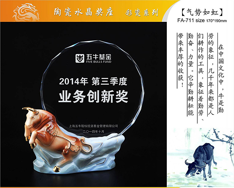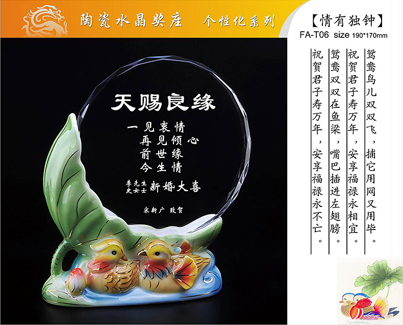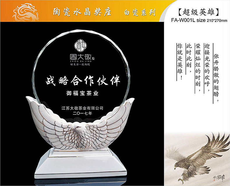 1001 / 水晶陶瓷奖杯定制创意奖牌周年庆古典孔雀感谢奖牌定做授权加盟牌
