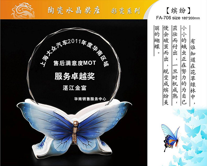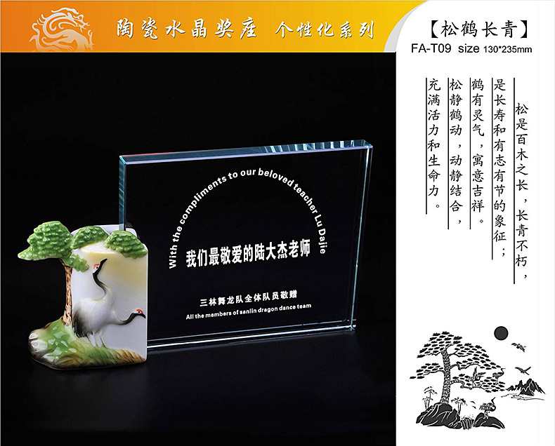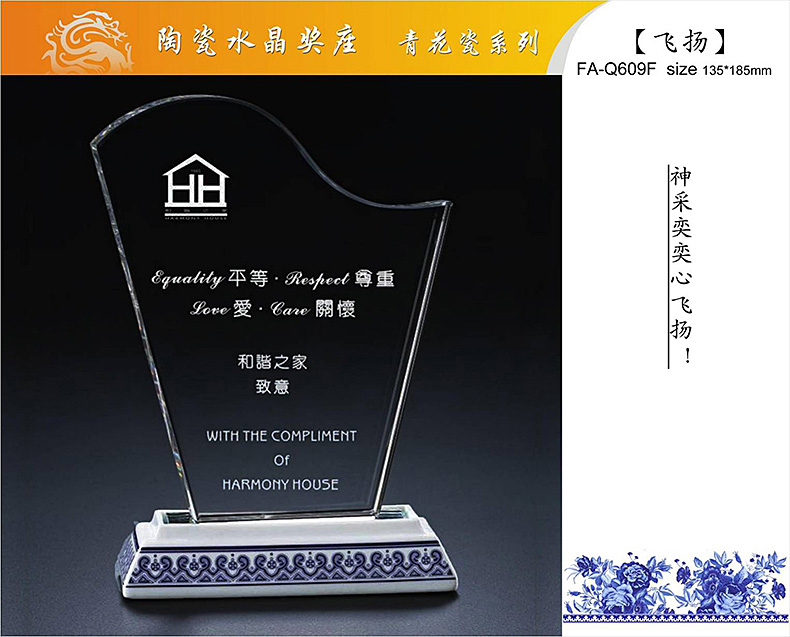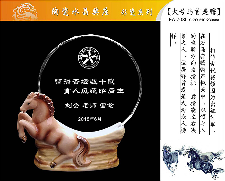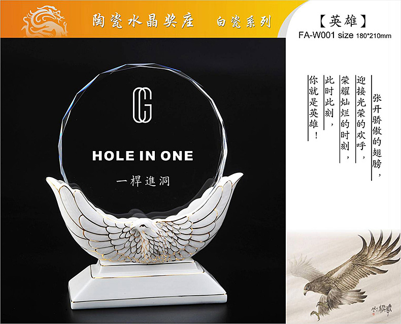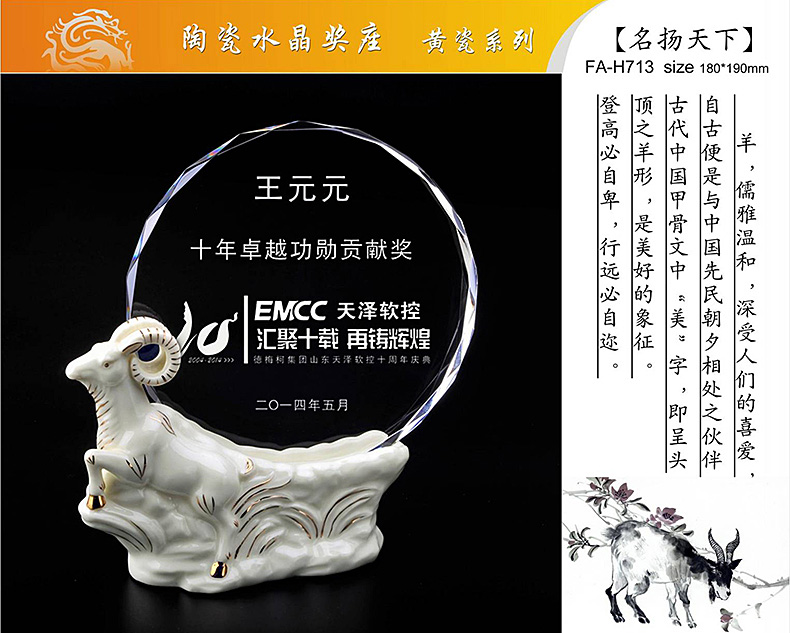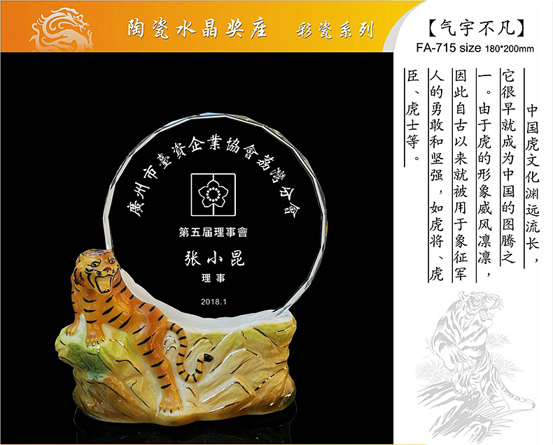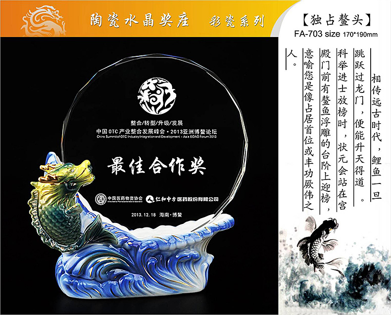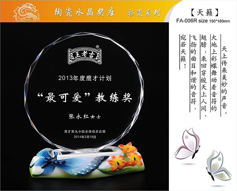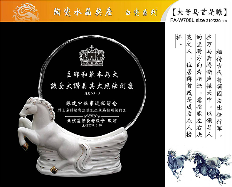 1001 / 水晶陶瓷奖杯定制创意奖牌周年庆古典孔雀感谢奖牌定做授权加盟牌