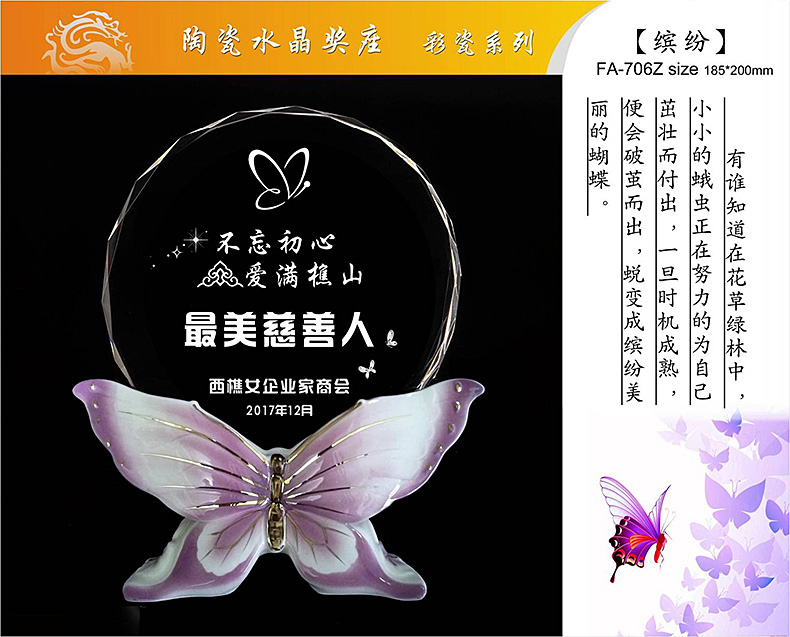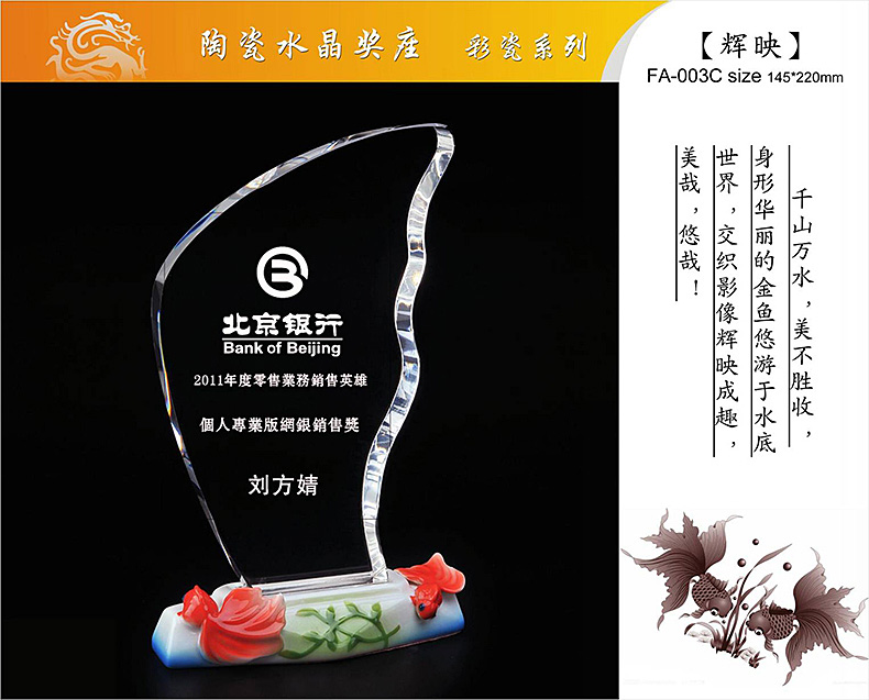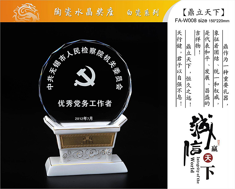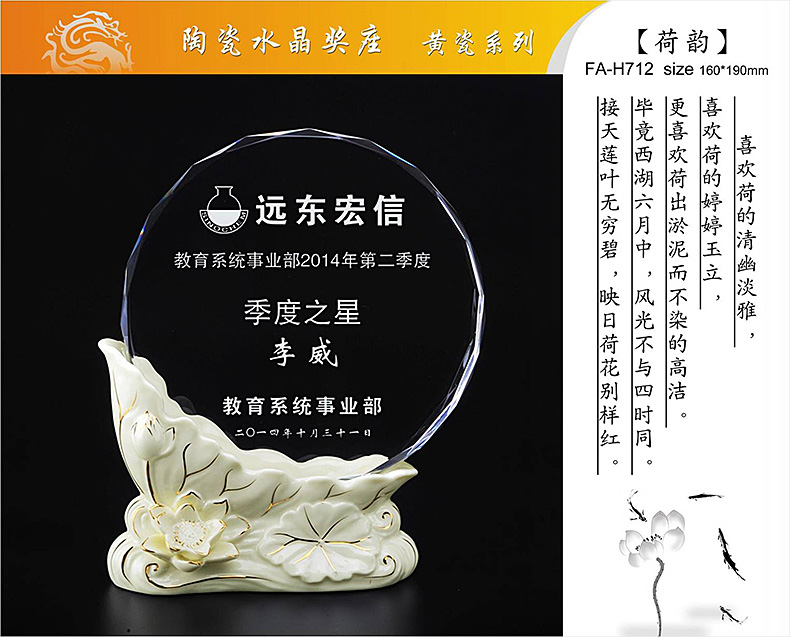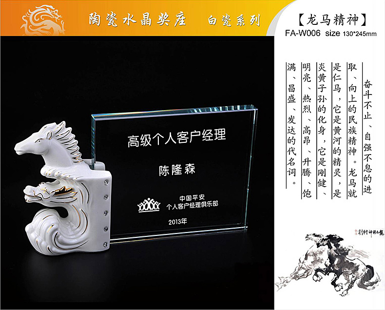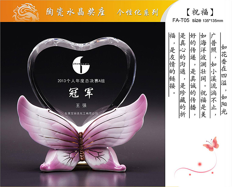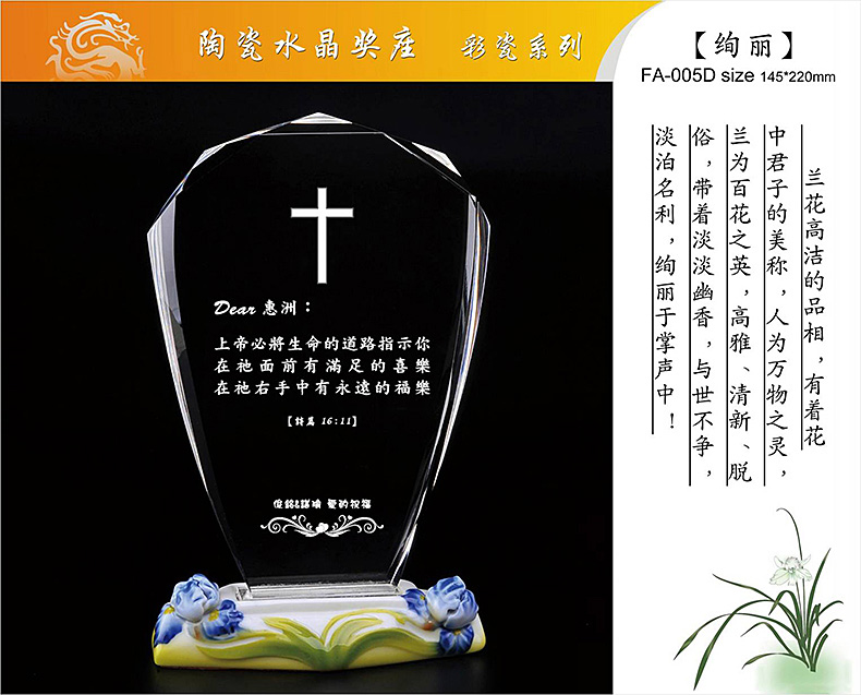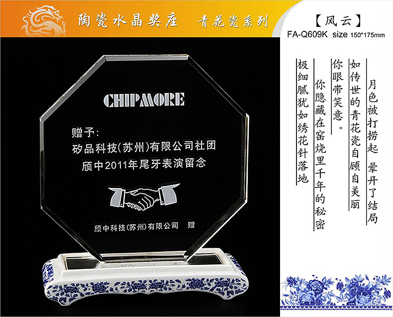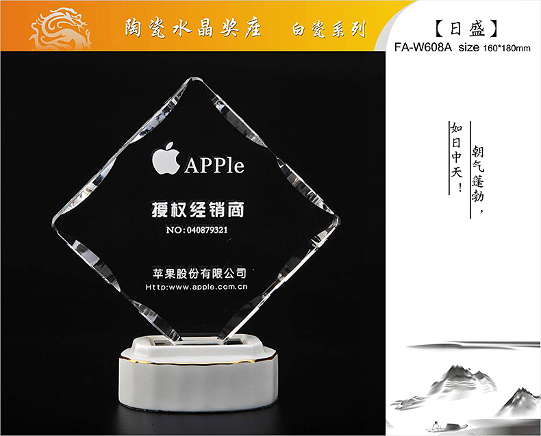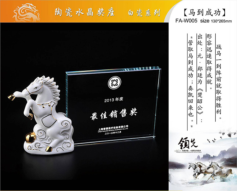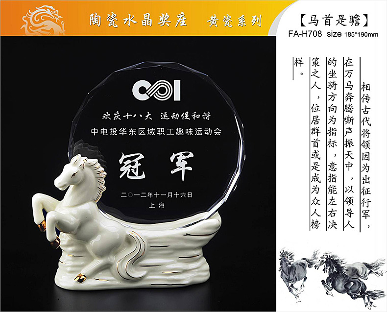 1001 / 水晶陶瓷奖杯定制创意奖牌周年庆古典孔雀感谢奖牌定做授权加盟牌