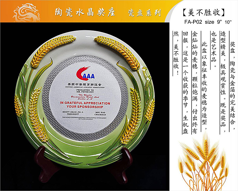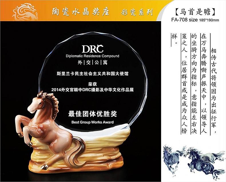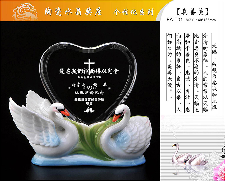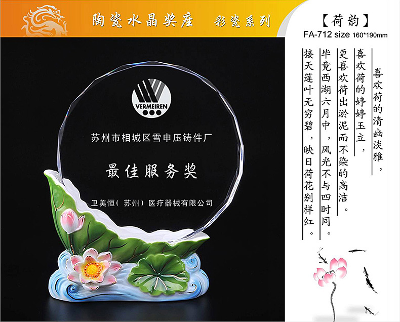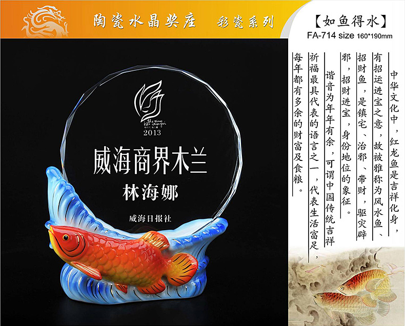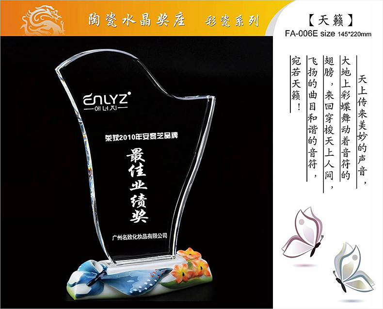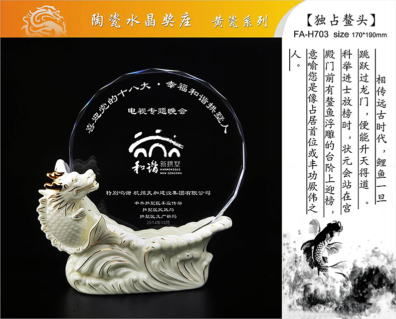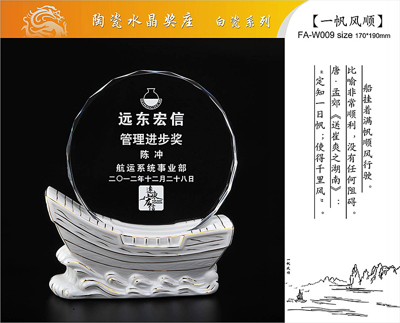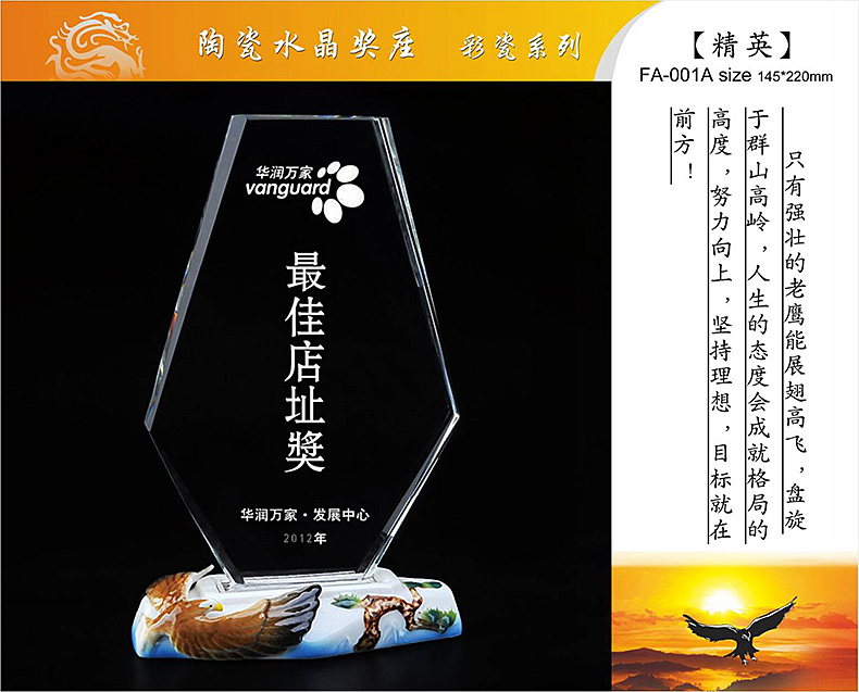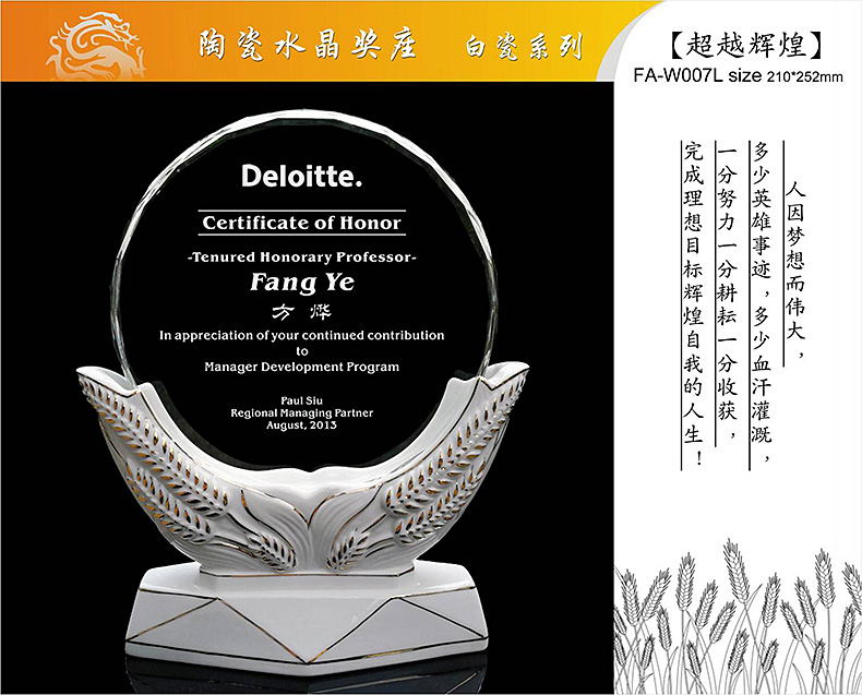 1001 / 水晶陶瓷奖杯定制创意奖牌周年庆古典孔雀感谢奖牌定做授权加盟牌