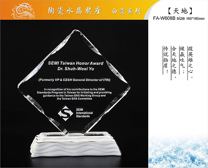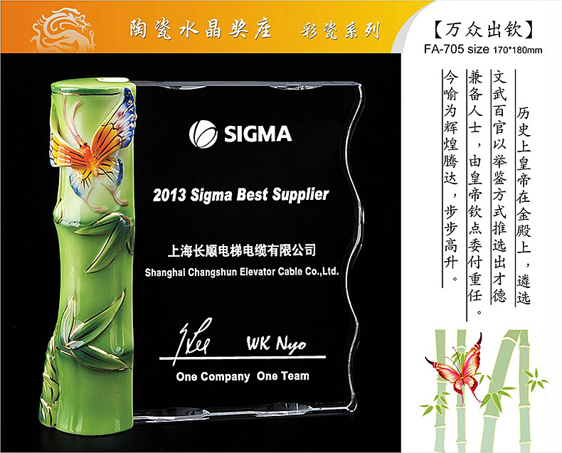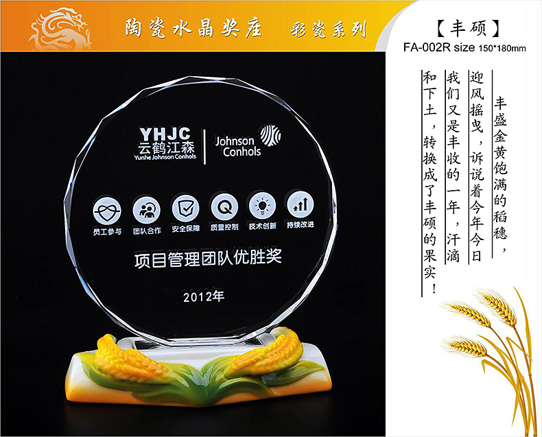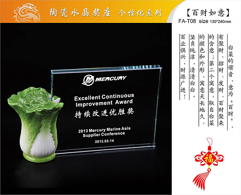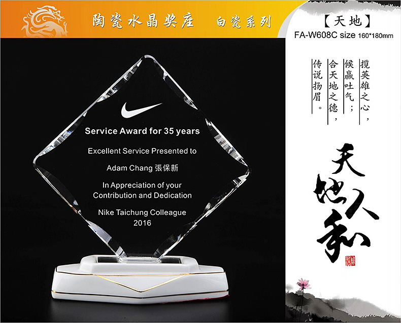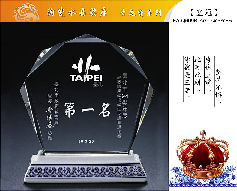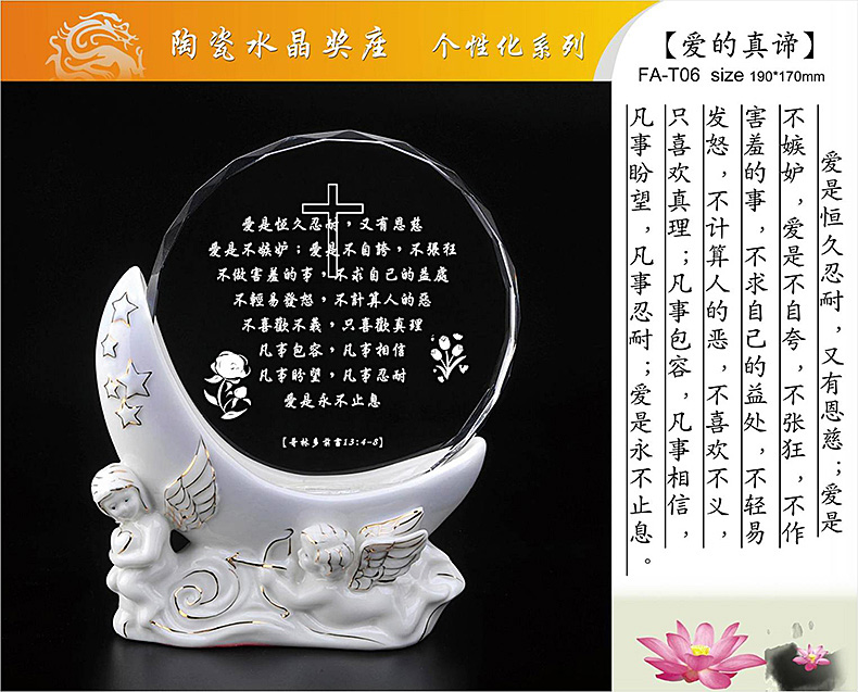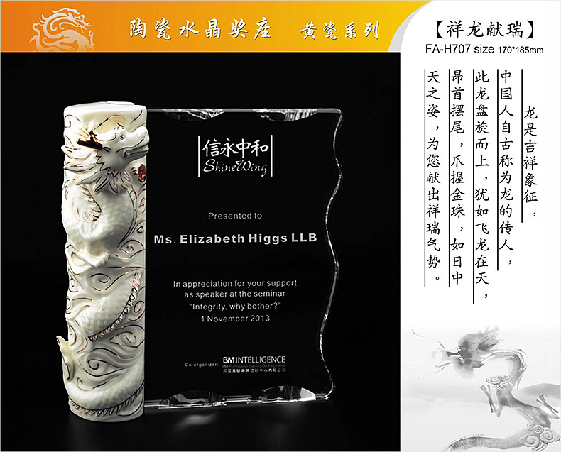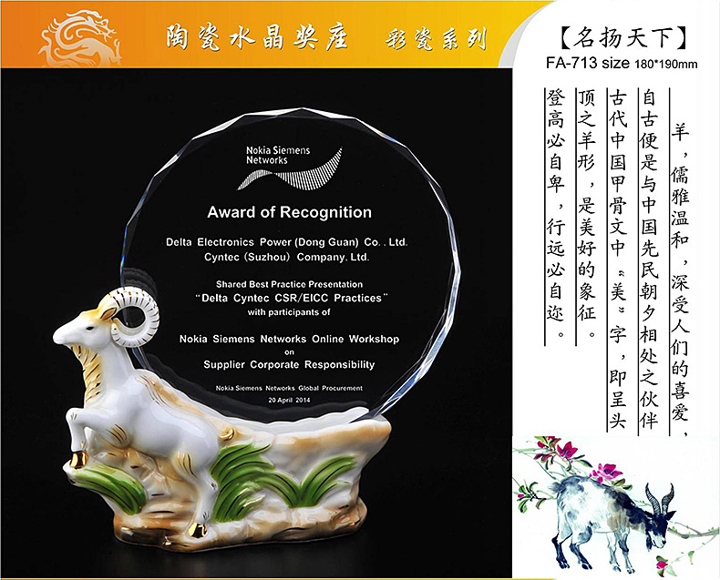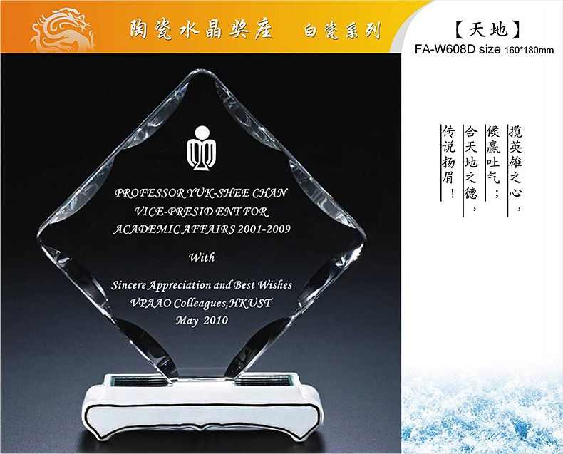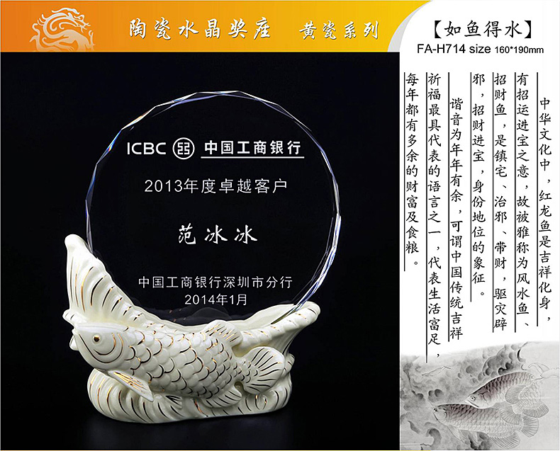 1001 / 水晶陶瓷奖杯定制创意奖牌周年庆古典孔雀感谢奖牌定做授权加盟牌