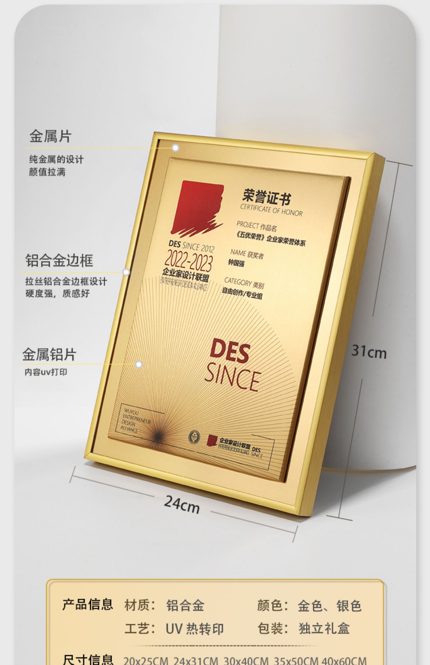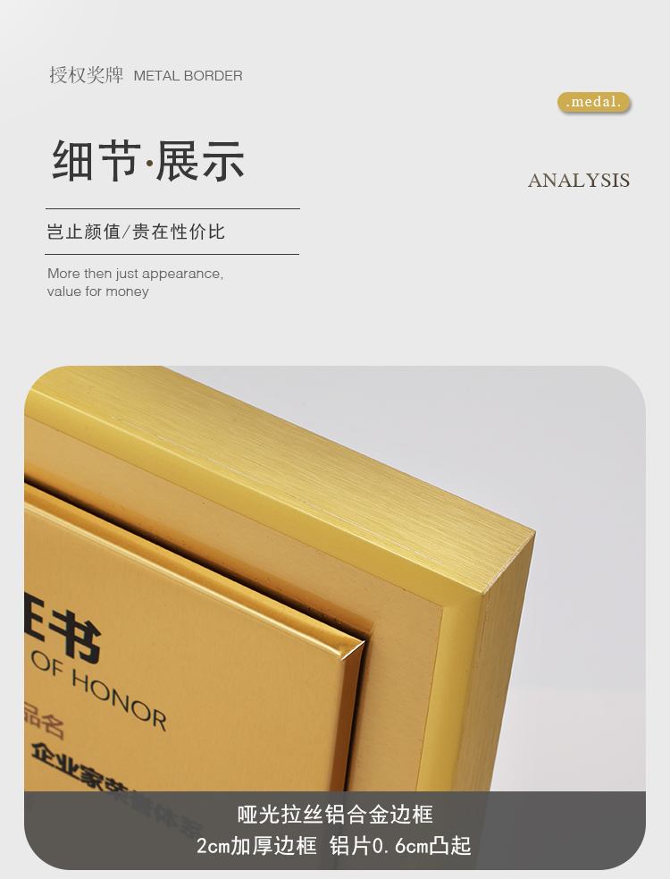 580 / 高档金属奖牌定制定做品牌授权经销商代理供应商证书定制牌匾奖牌