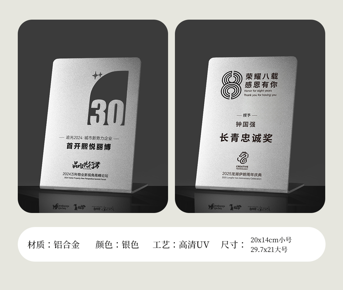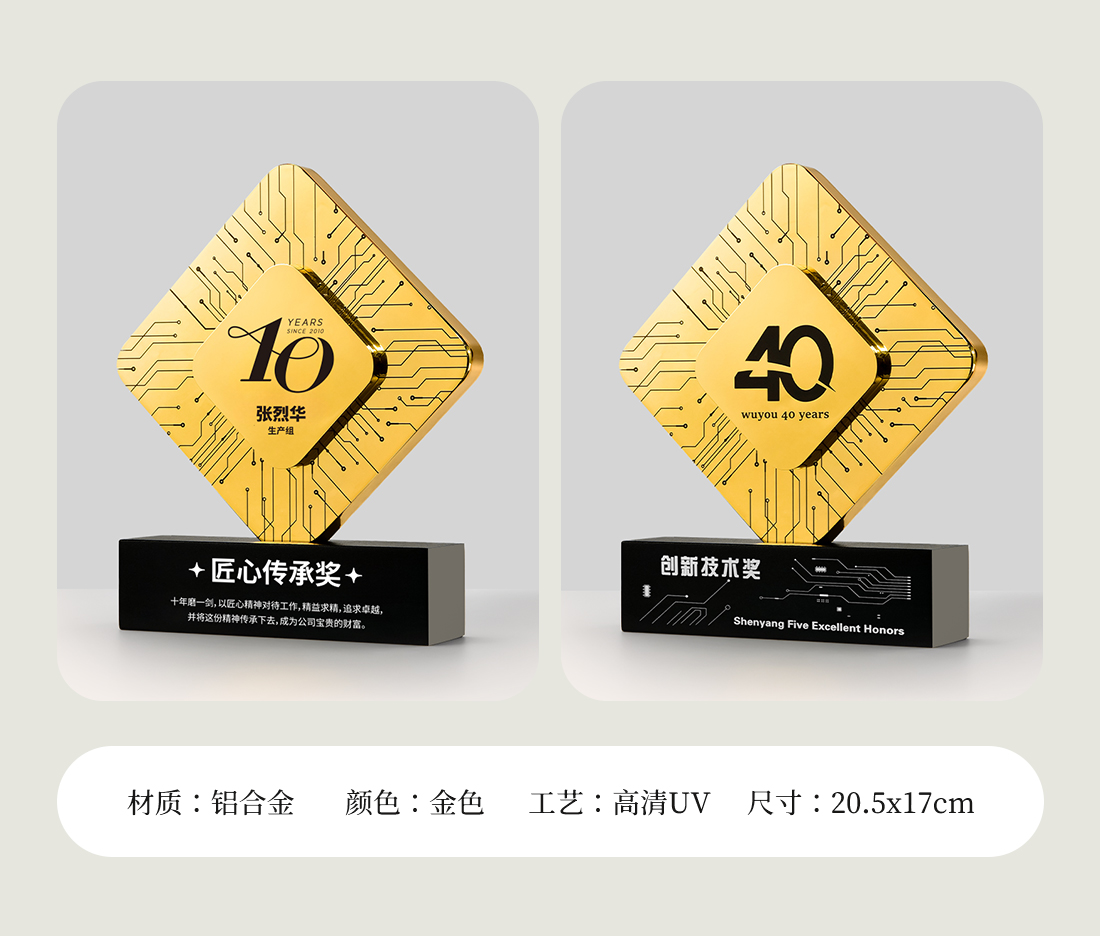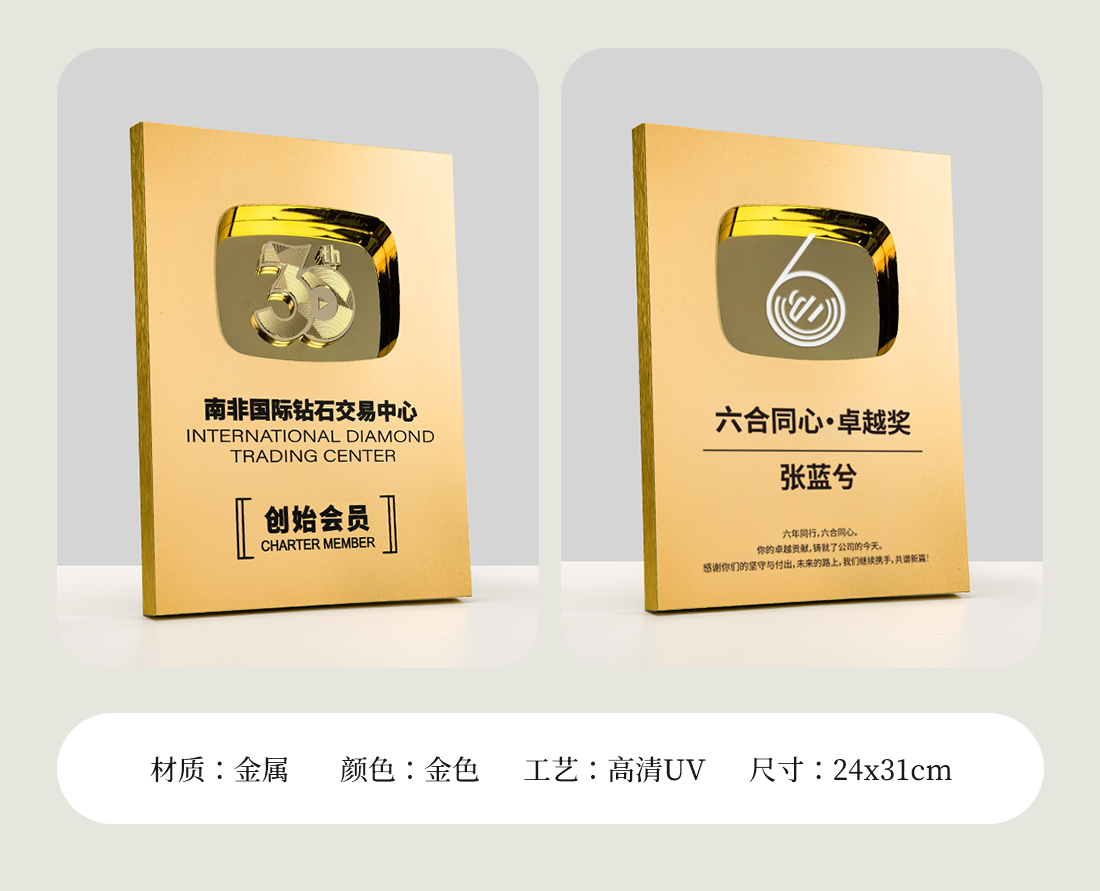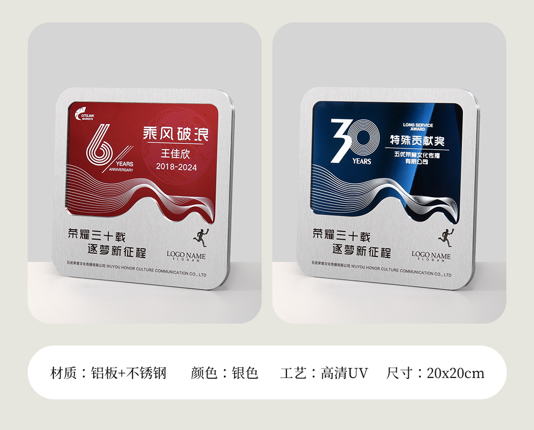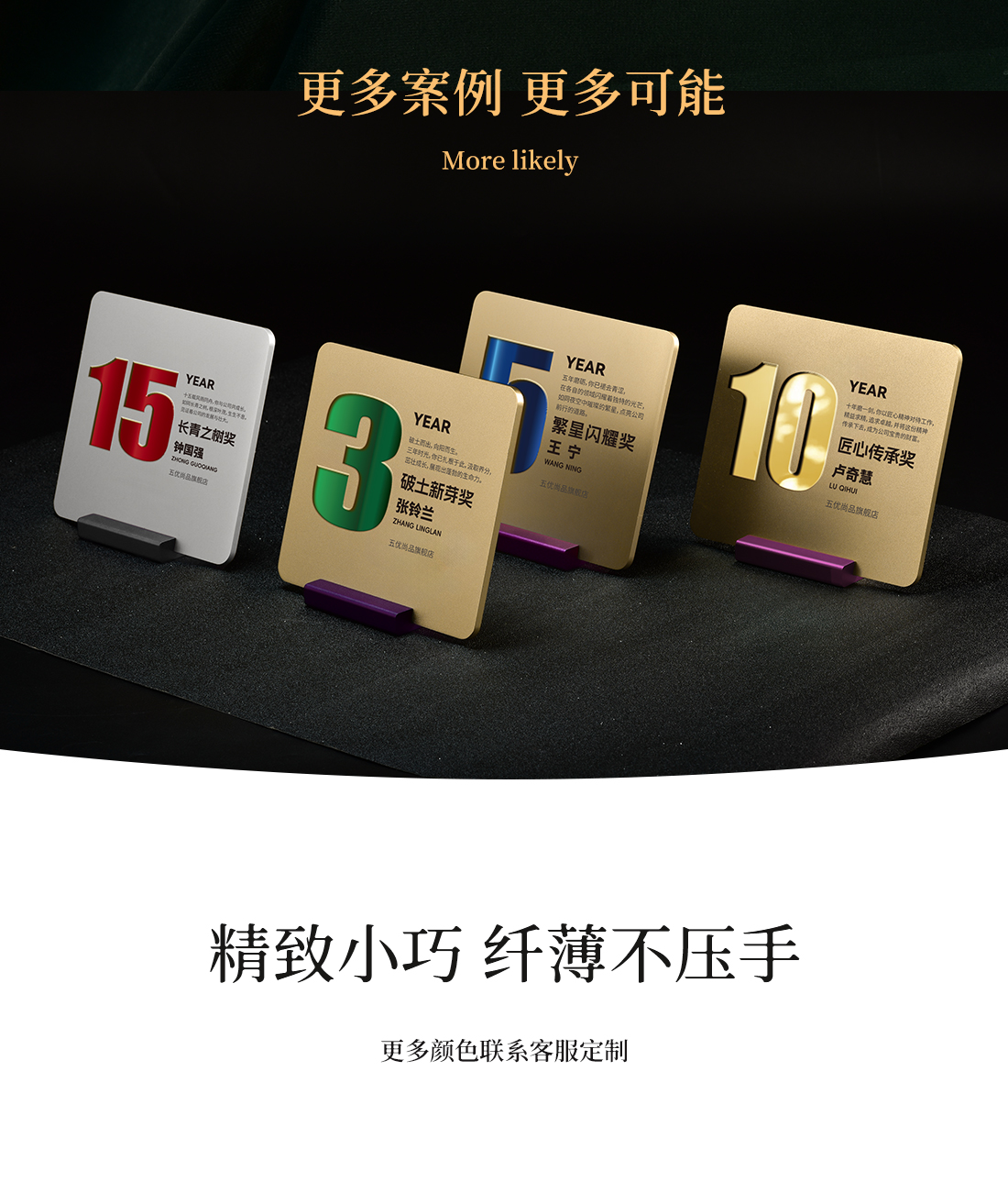 572 / 周年会纪念品方形金属奖牌奖杯定制创意数字团队代理商奖牌定做