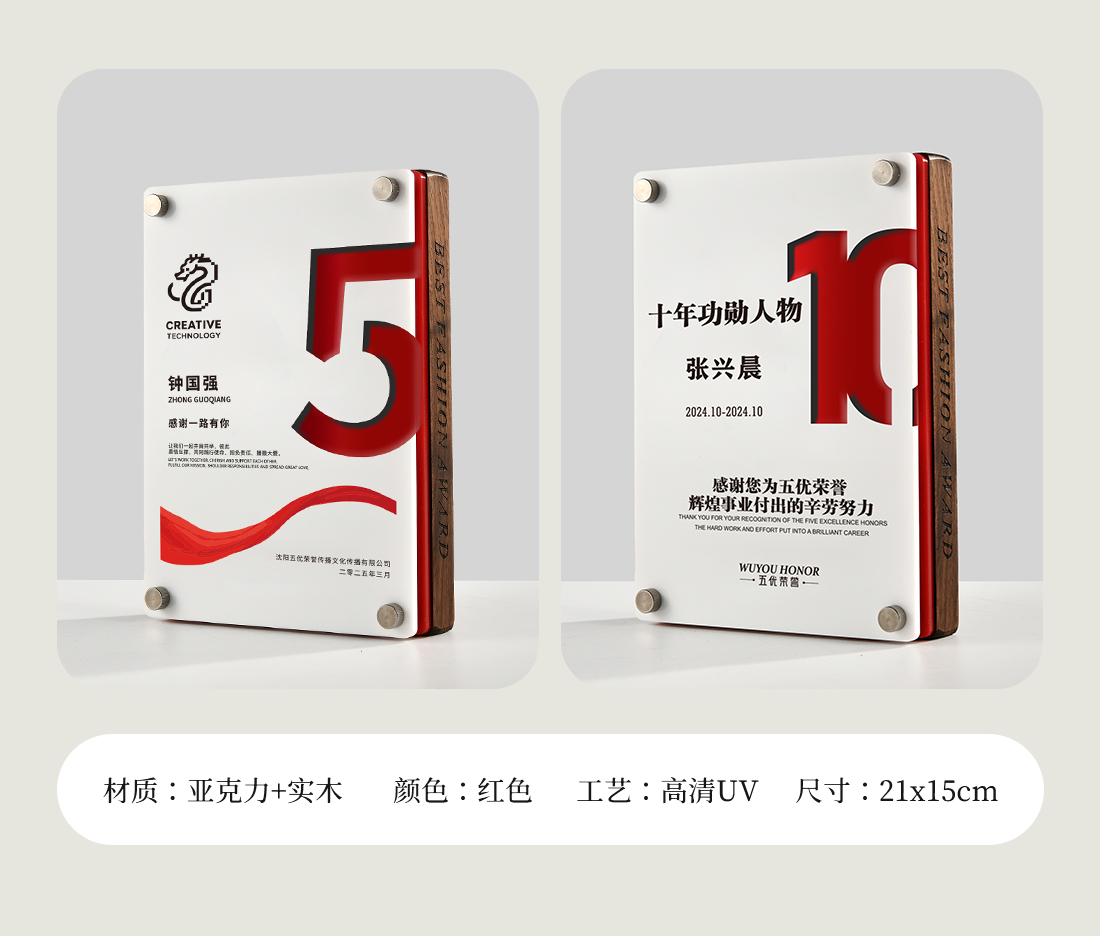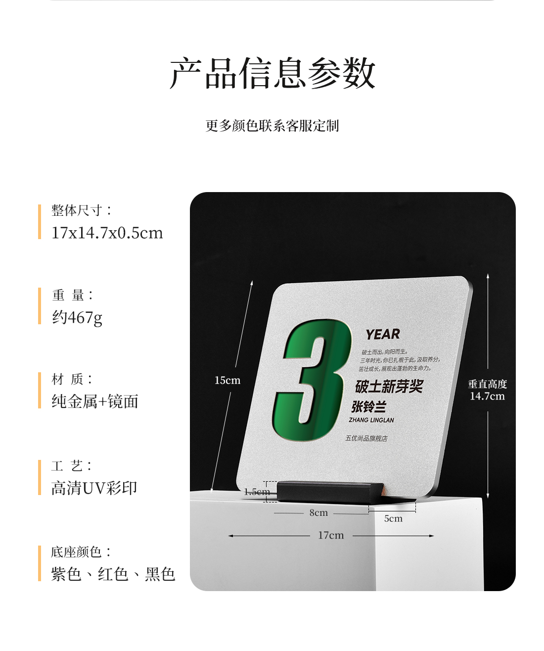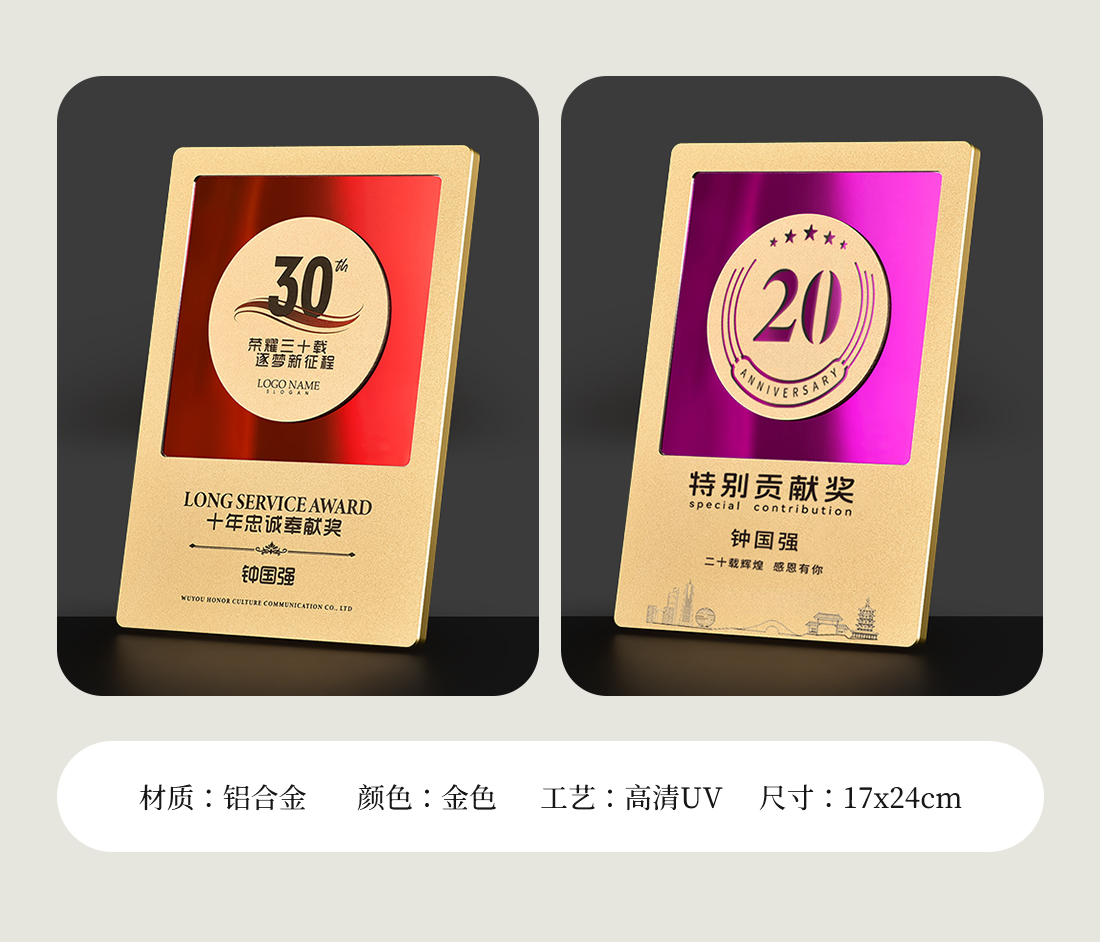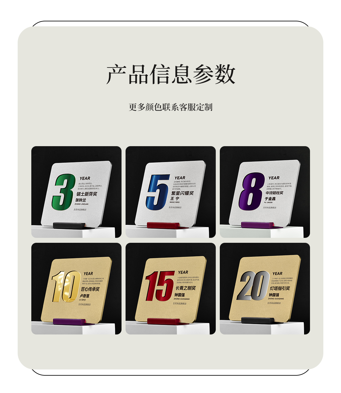572 / 周年会纪念品方形金属奖牌奖杯定制创意数字团队代理商奖牌定做