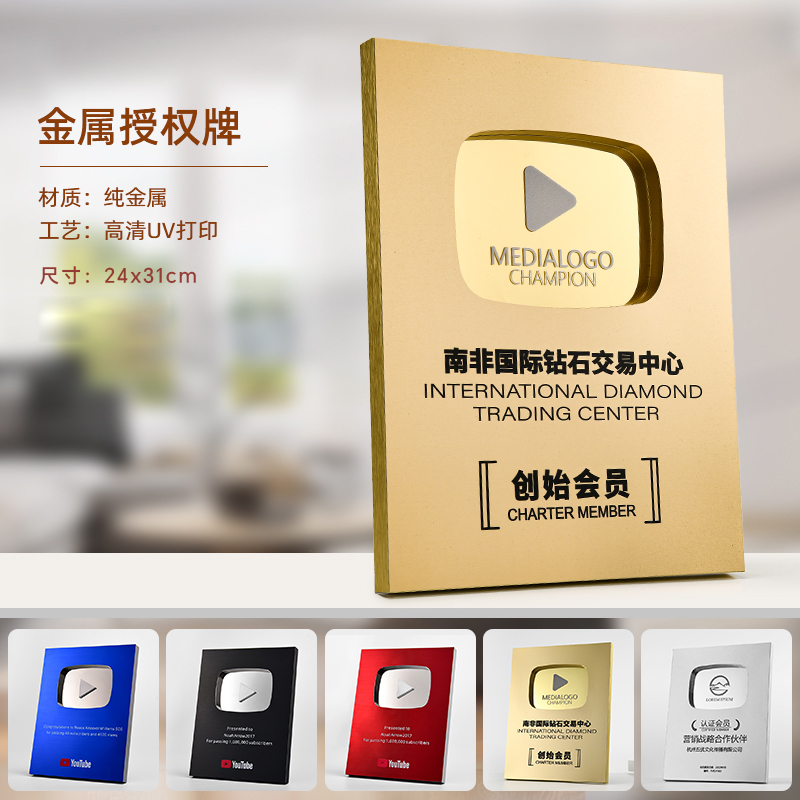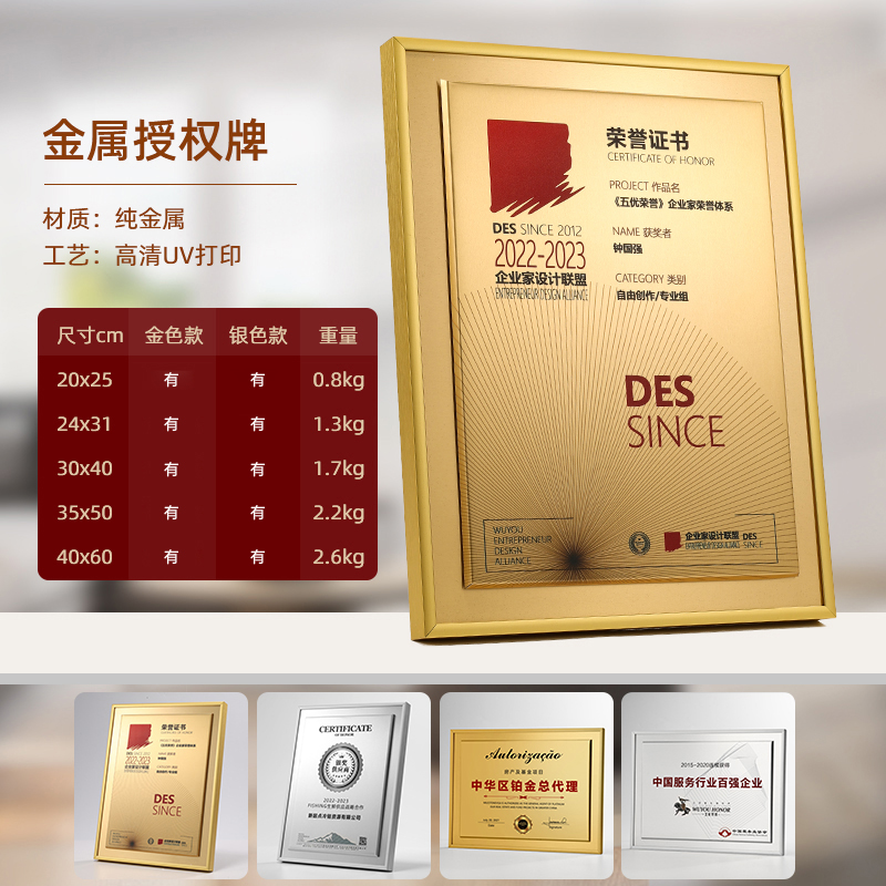 71 / 高档金属奖牌定制订做加盟代理授权牌荣誉牌聘书颁奖杯经销商纪念