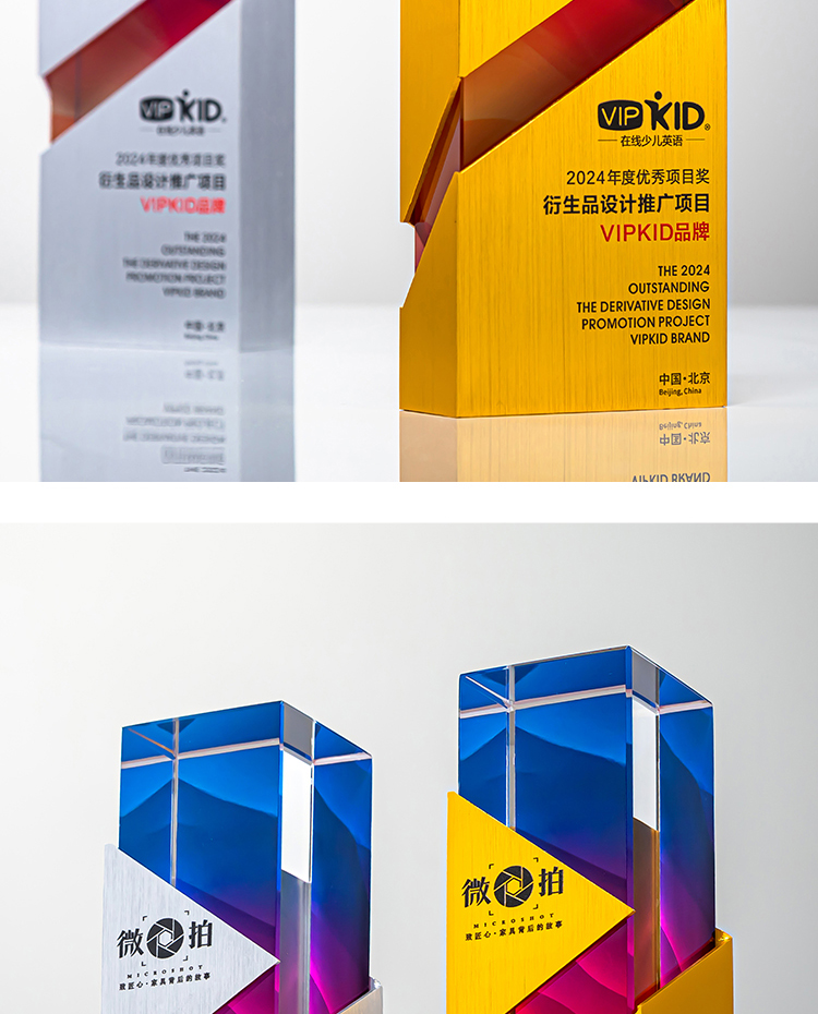 208 / 水晶奖杯定制彩印创意金属五角星优秀员工奖年会冠军团队奖牌刻字