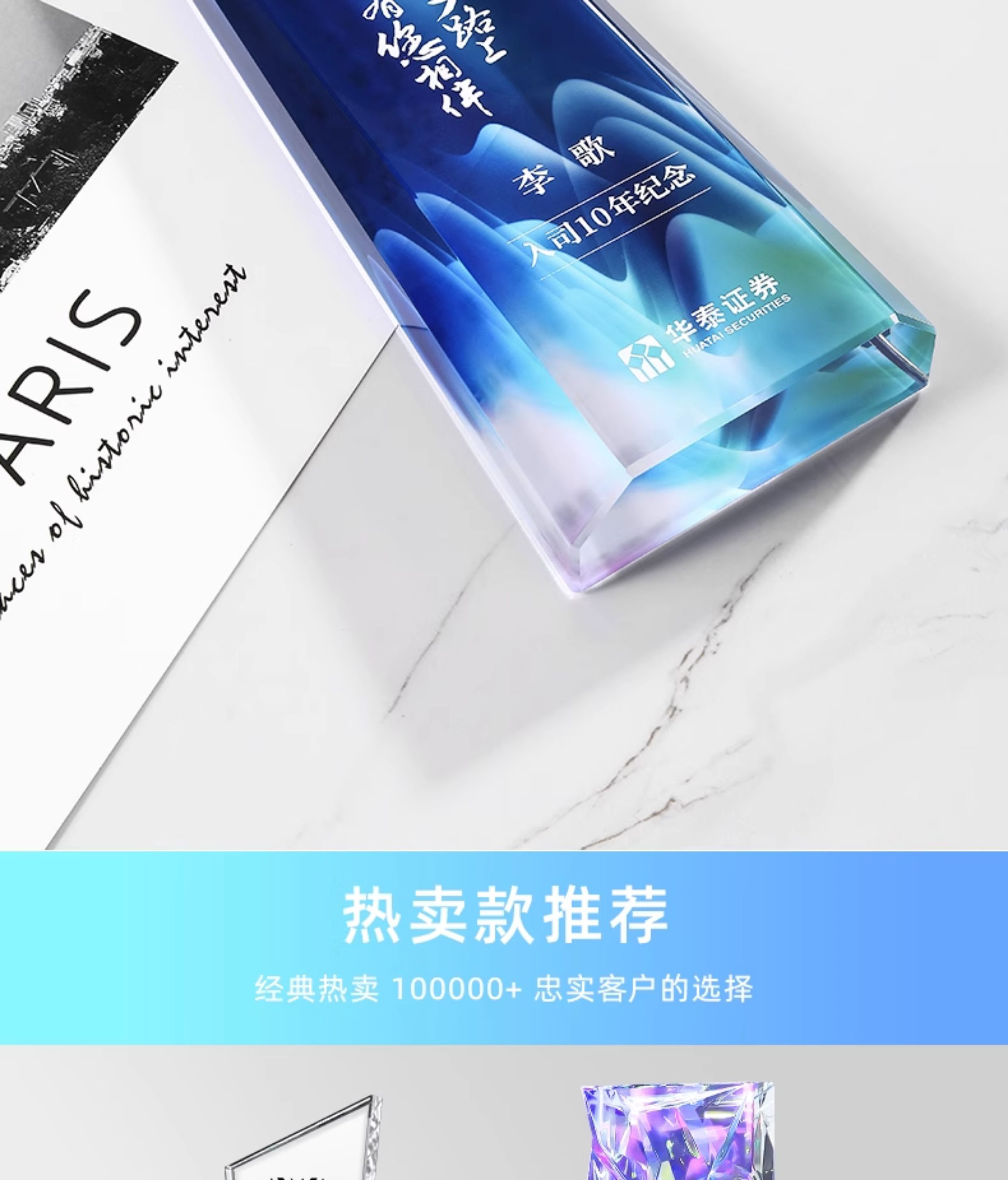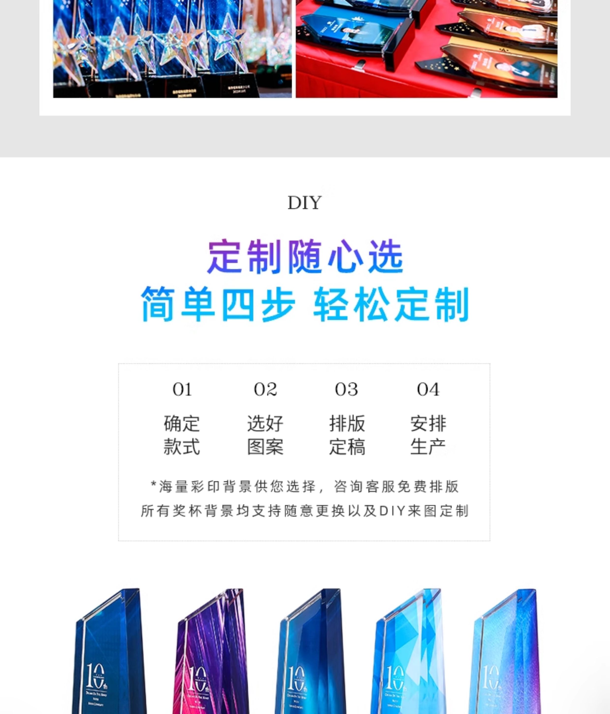 201 / 水晶奖杯定制定做优秀员工奖杯订制高档大气创意年会退休纪念摆件