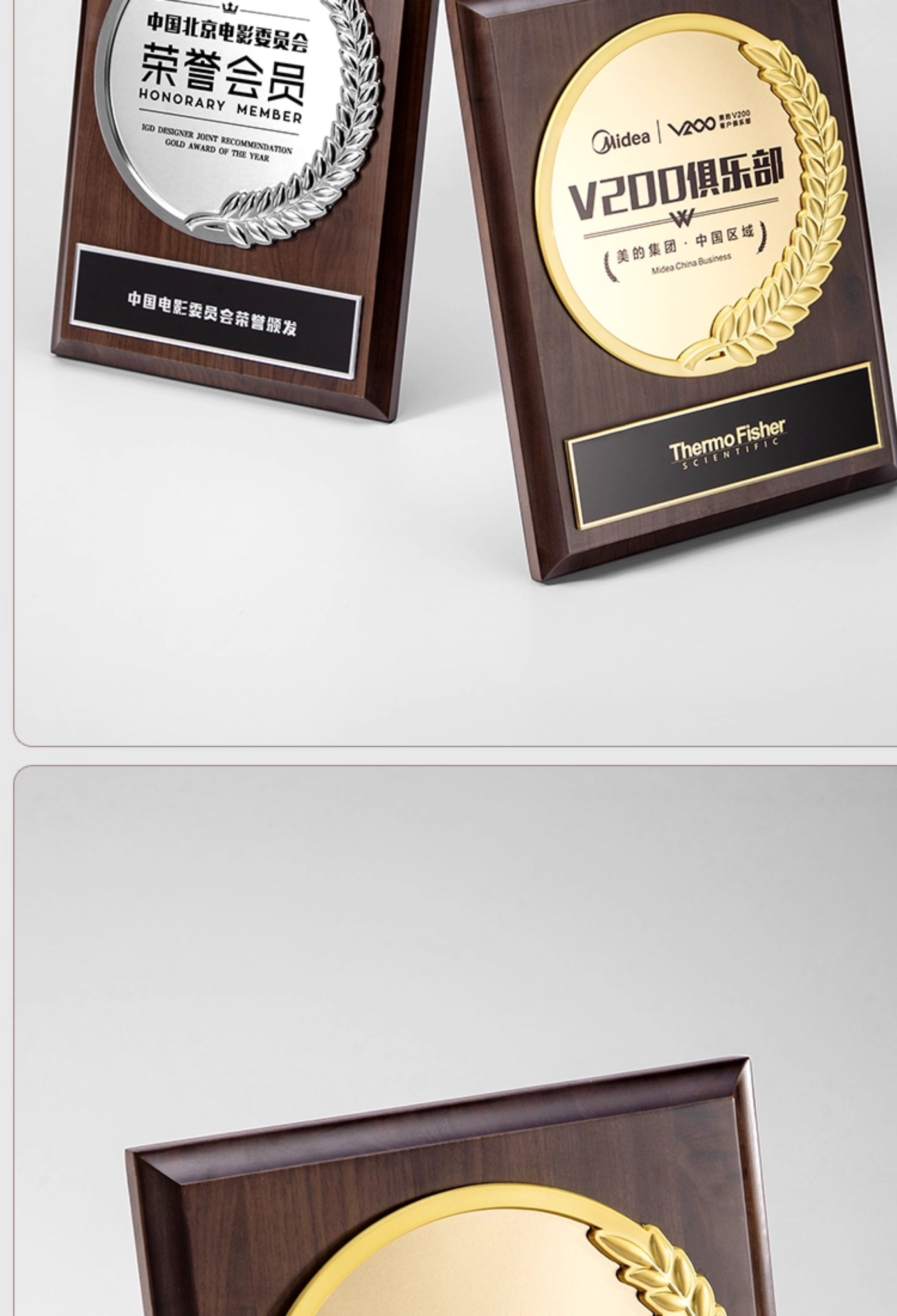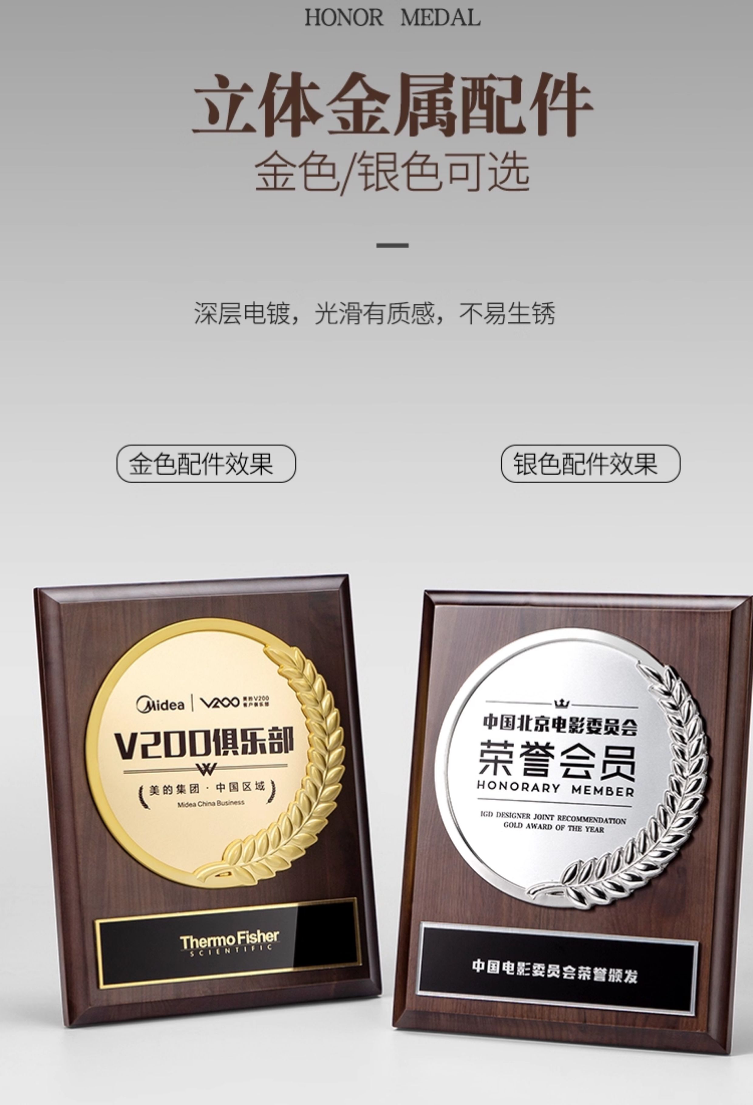 589 / 【实木奖牌】创意实木质奖牌定制定做水晶奖杯纪念品加盟商荣誉牌匾代理授权牌