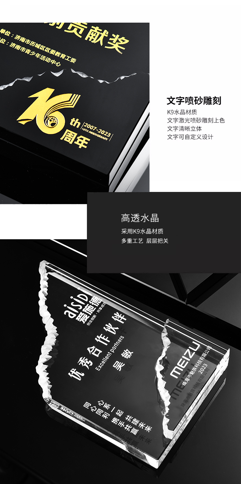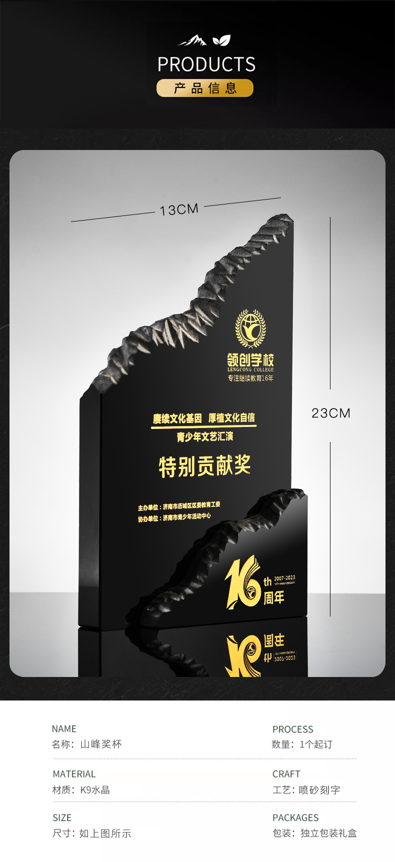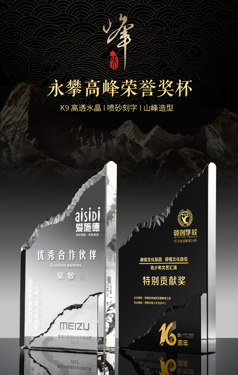 1021 / 勇攀高峰创意水晶奖杯定制攀岩山峰奖牌顶峰授权牌高端大气大号