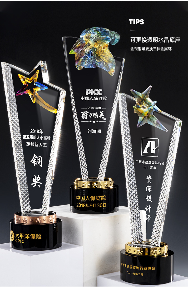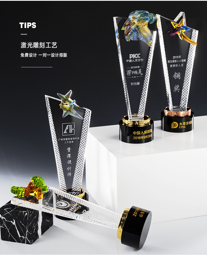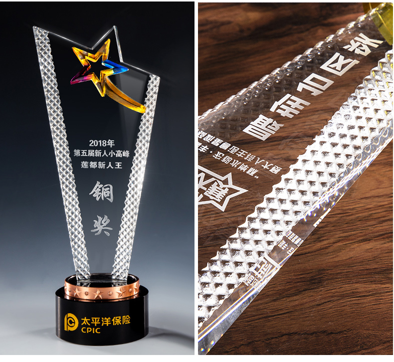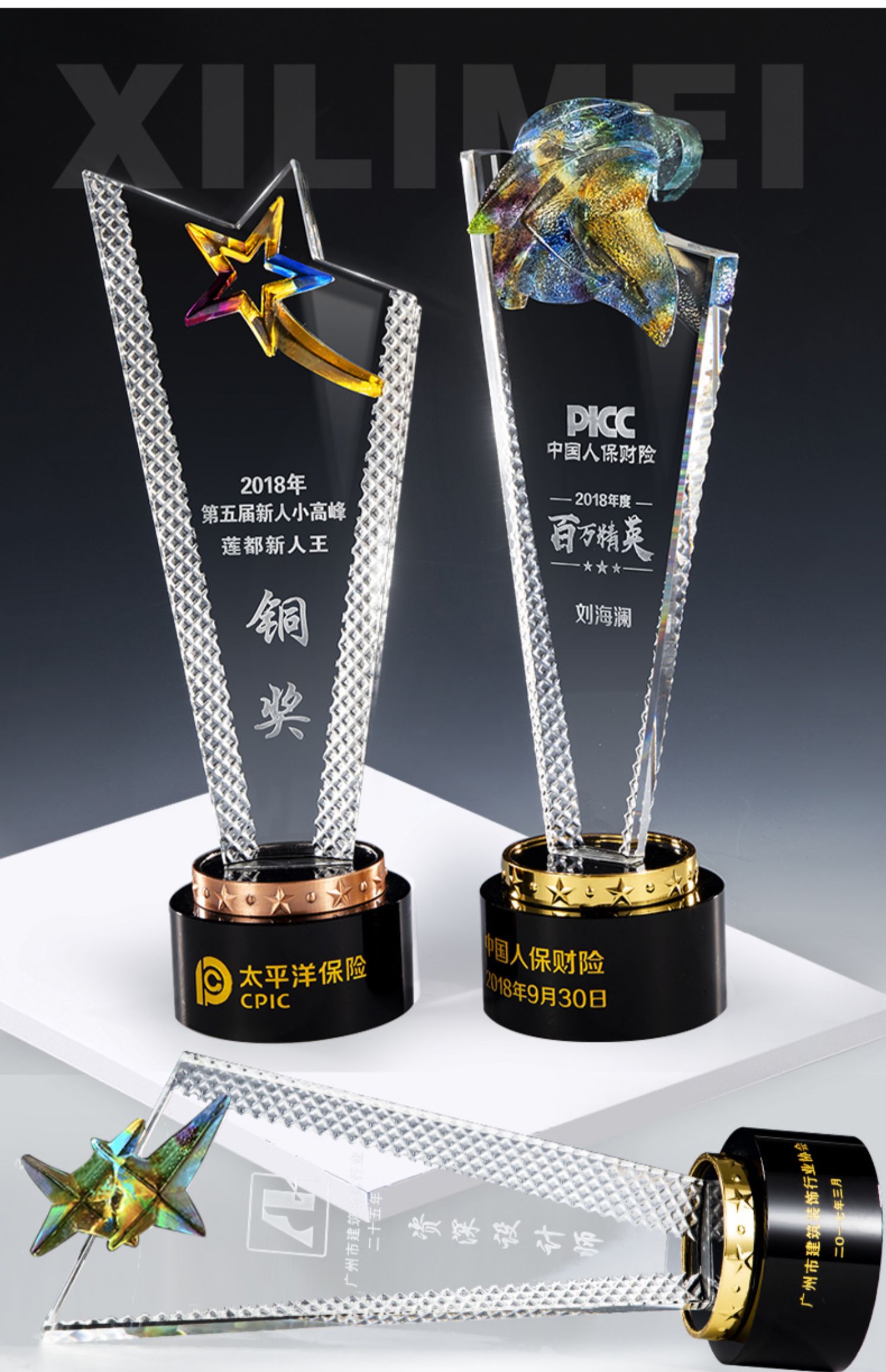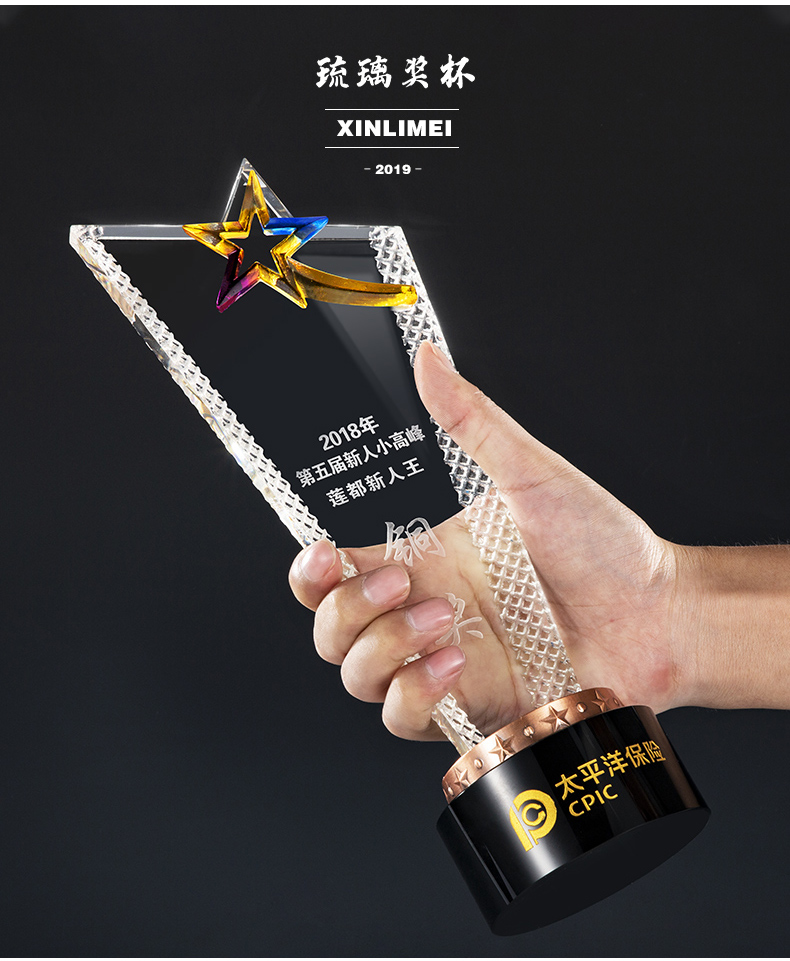 1019 / 高档创意琉璃五角星水晶奖杯奖座领导晋升优秀员工合作授权牌刻字