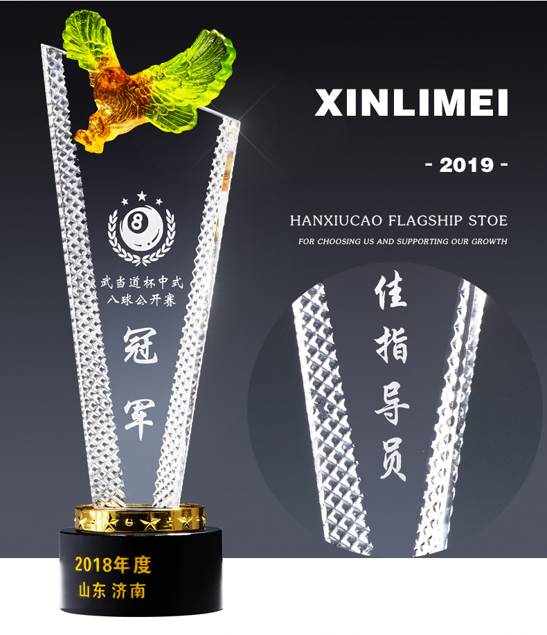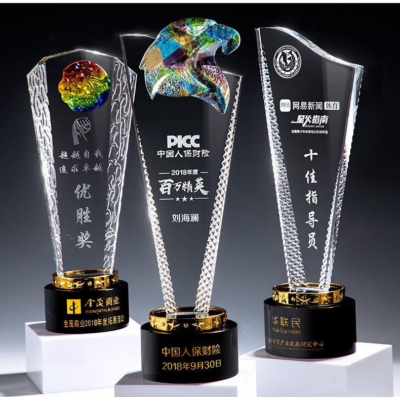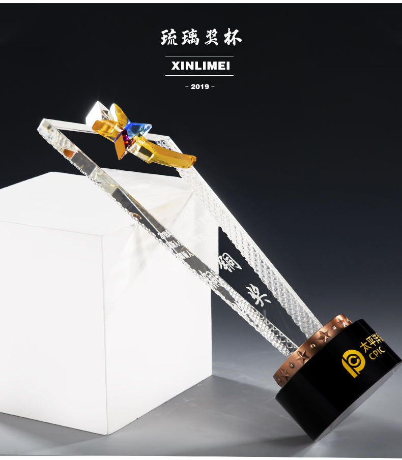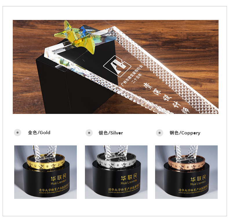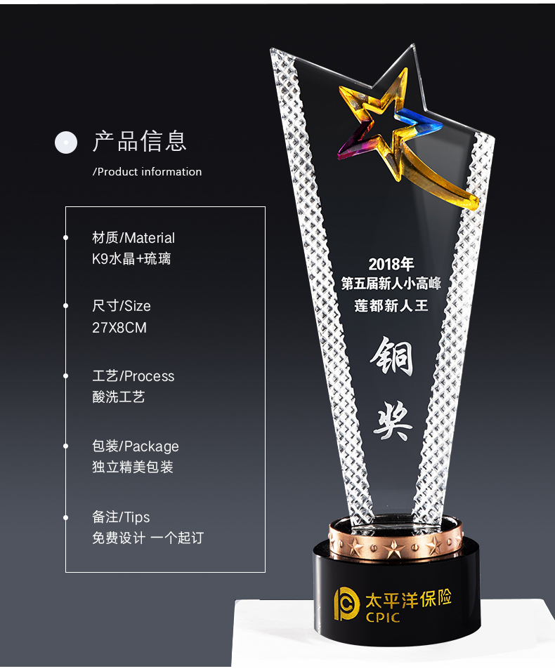 1019 / 高档创意琉璃五角星水晶奖杯奖座领导晋升优秀员工合作授权牌刻字