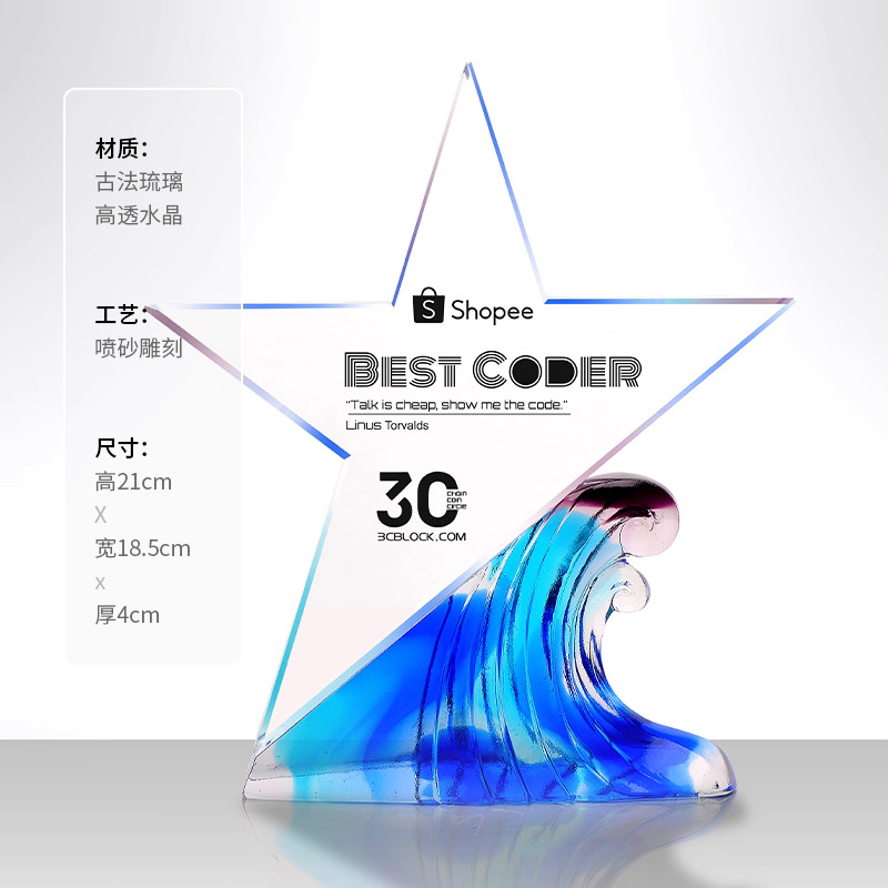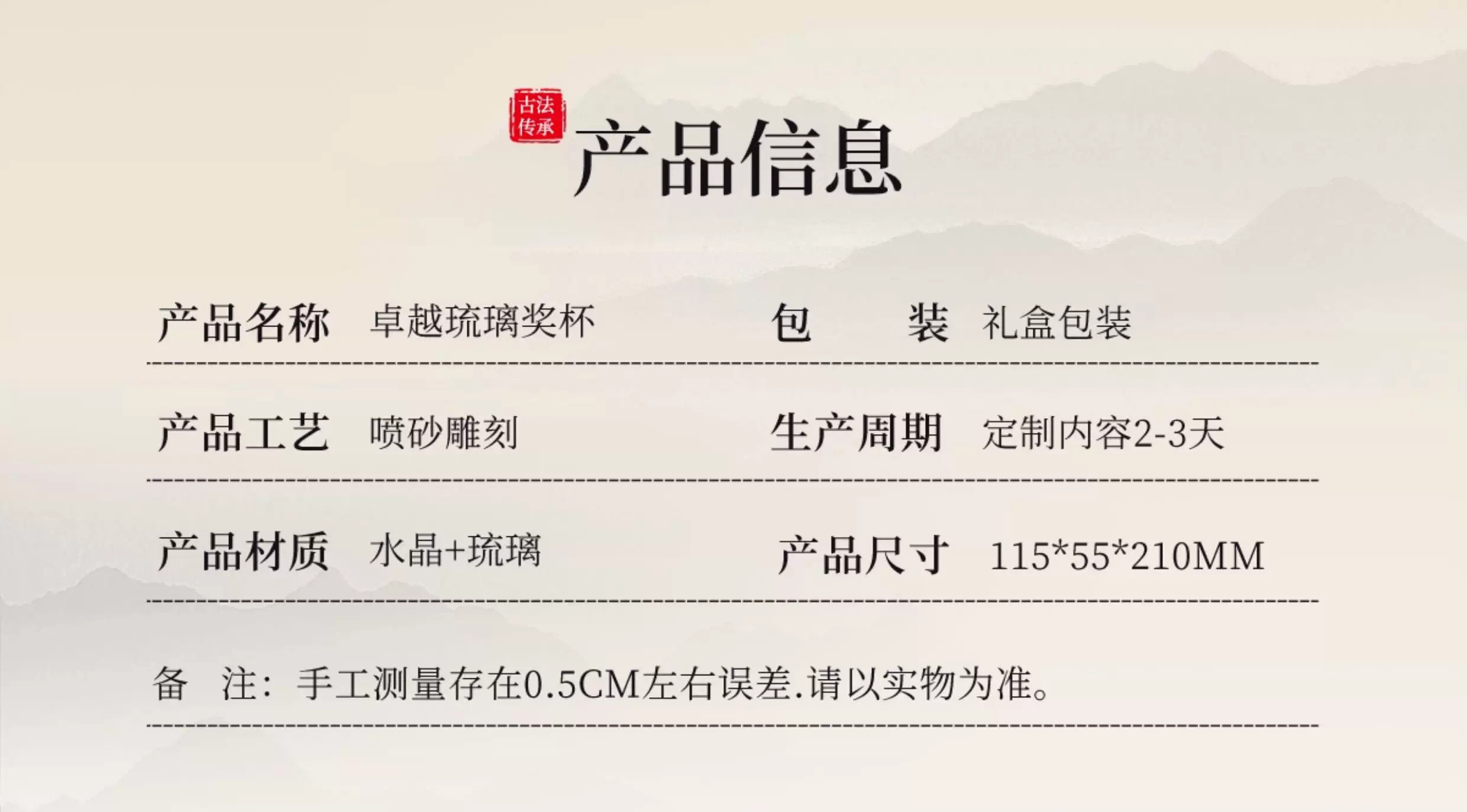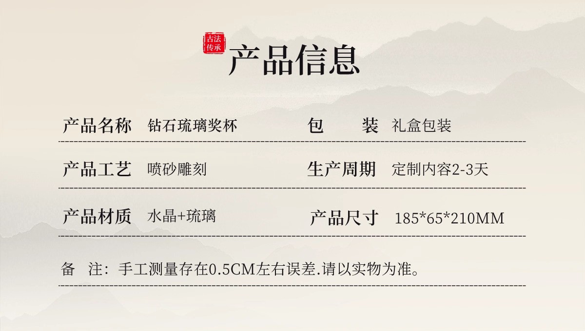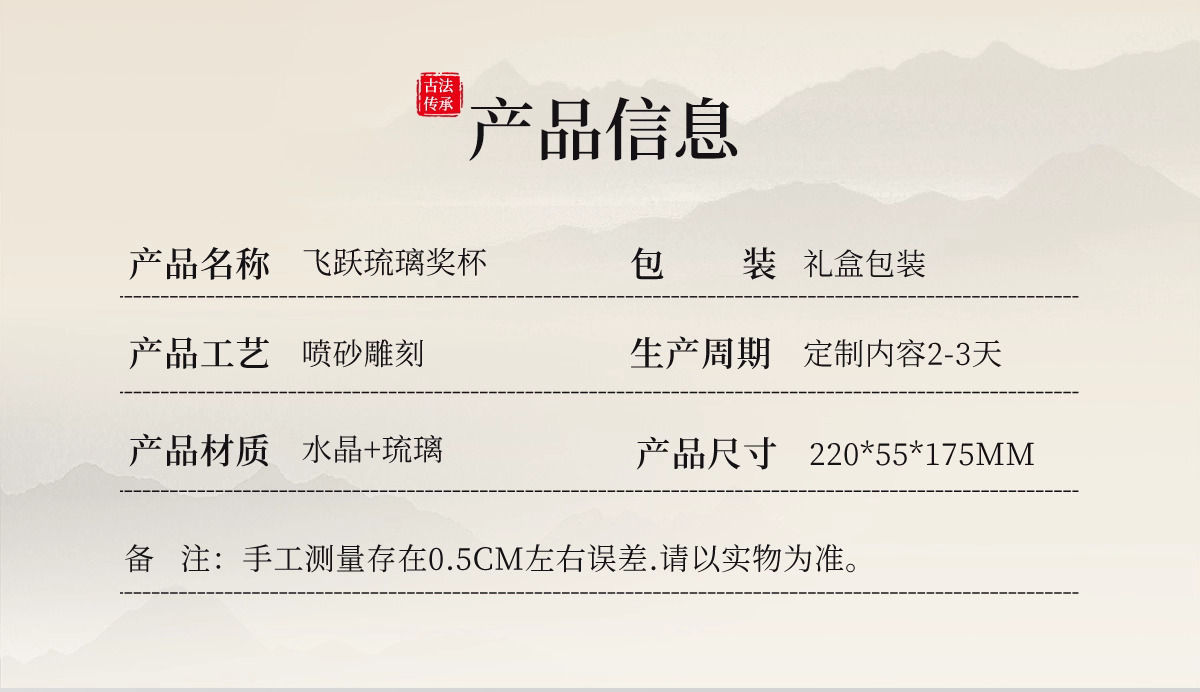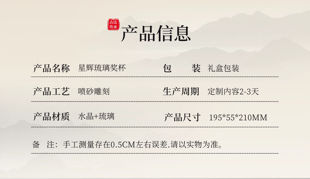 281 / 【琉璃水晶奖杯】新款高档创意琉璃水晶奖杯定制定做奖牌订做制作优秀员工年会颁奖