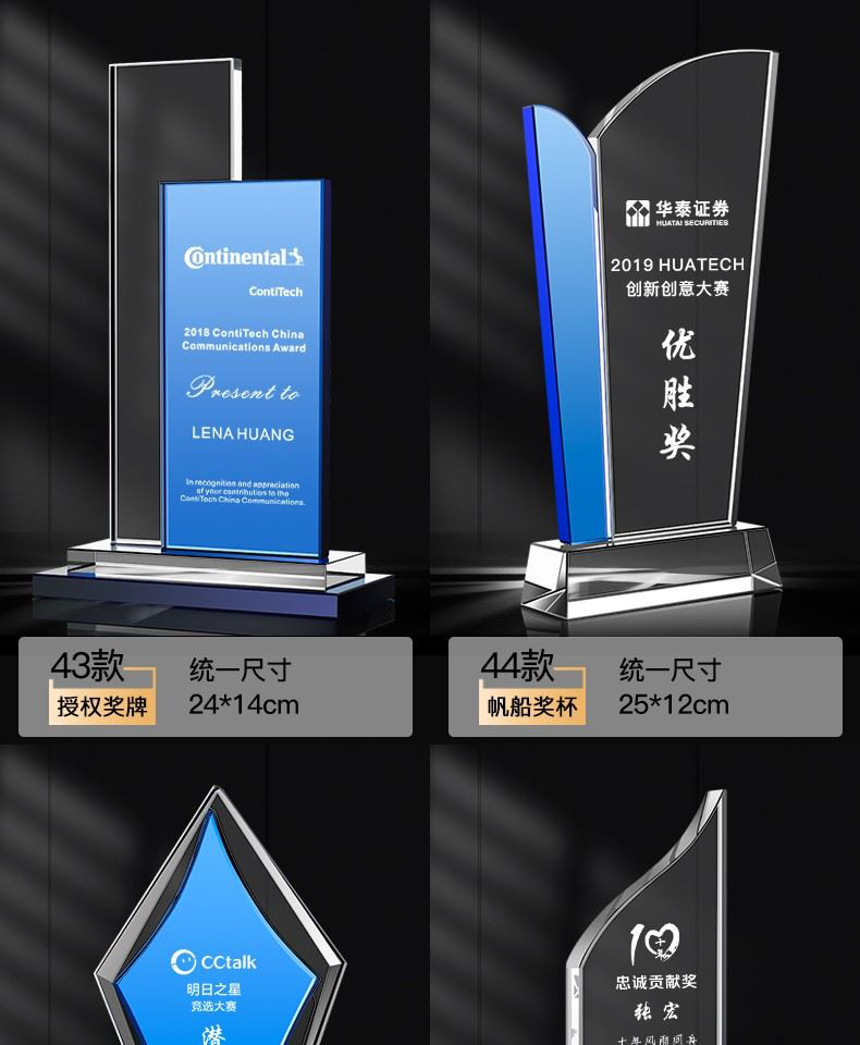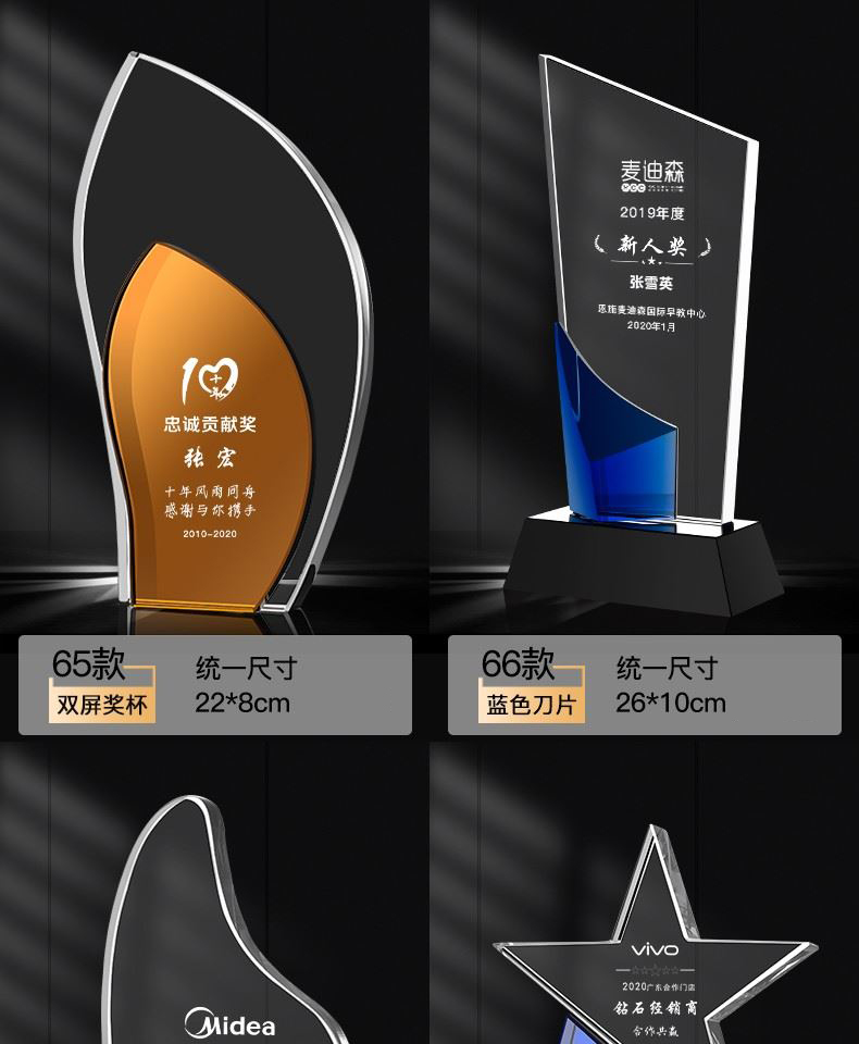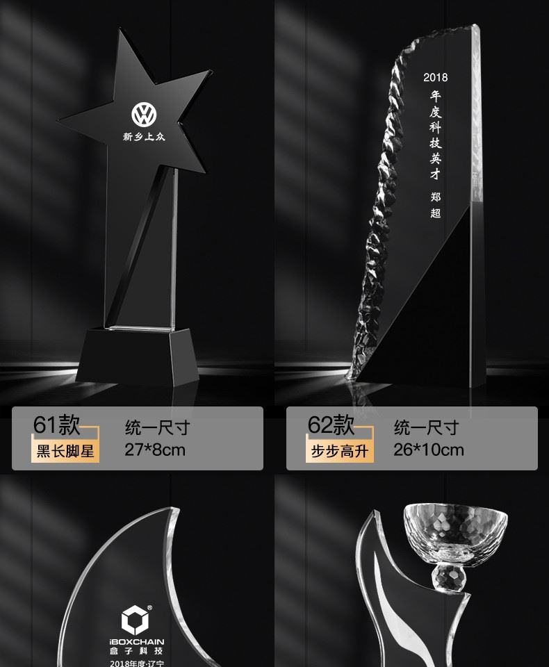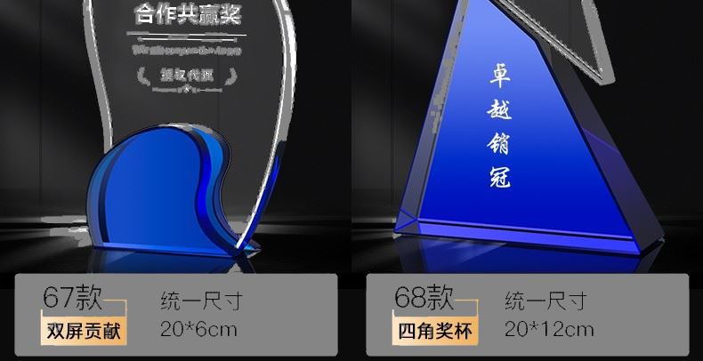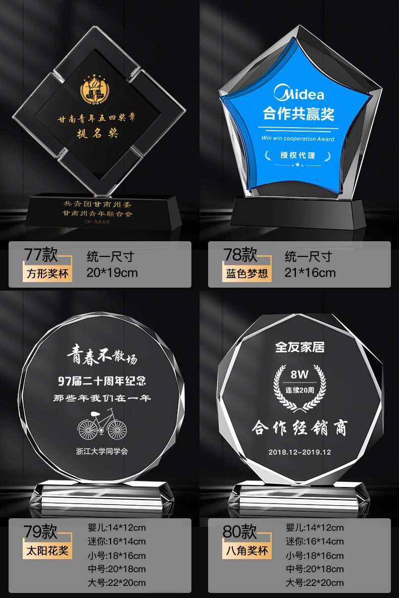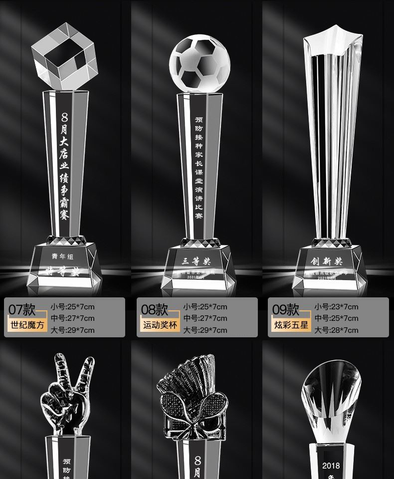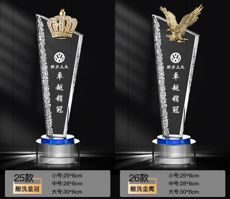 1009 / 成都发货水晶奖杯定制新款刻字创意定做年会爱心志愿者教师节奖杯