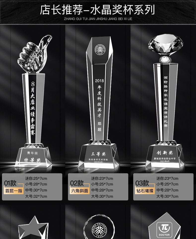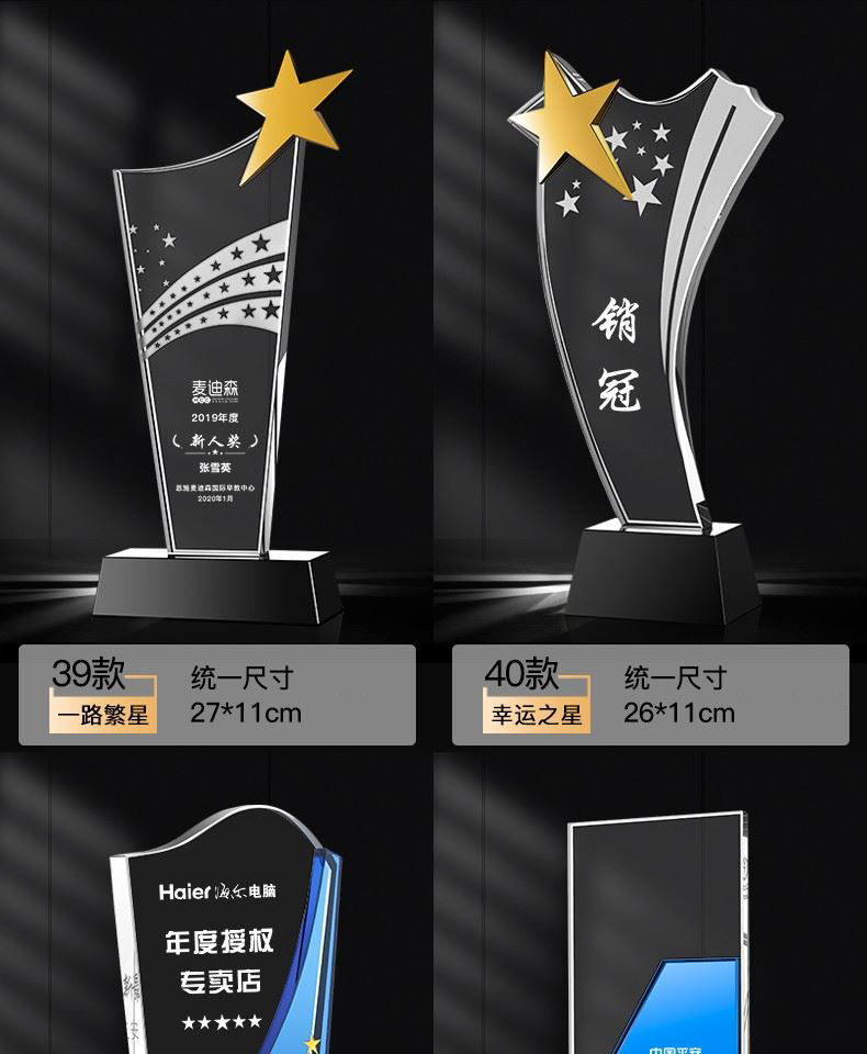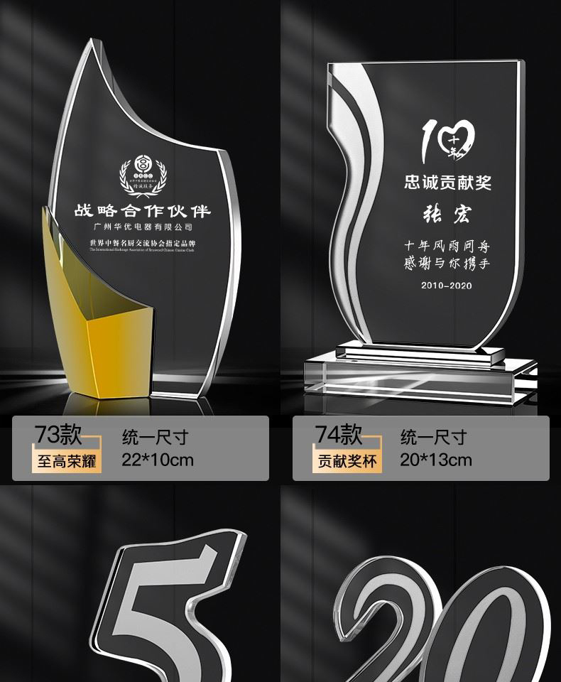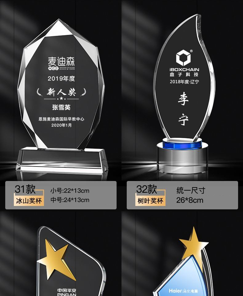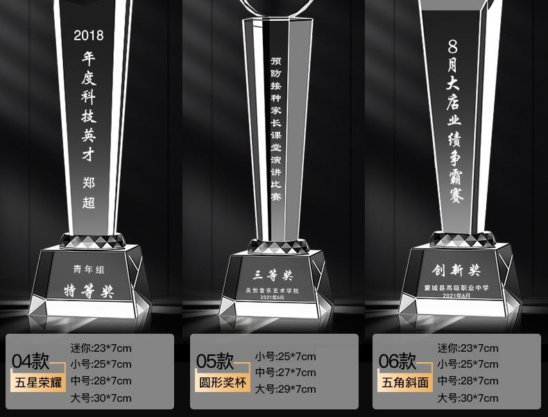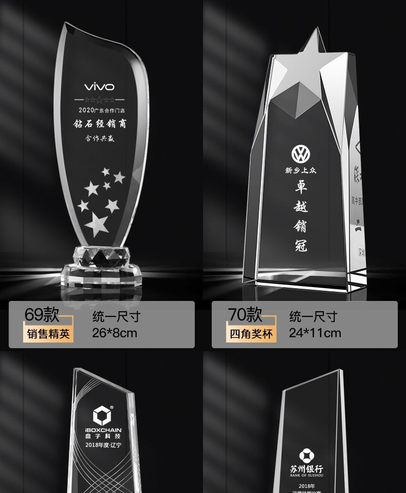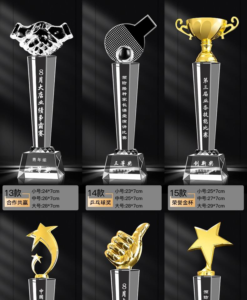 1009 / 成都发货水晶奖杯定制新款刻字创意定做年会爱心志愿者教师节奖杯