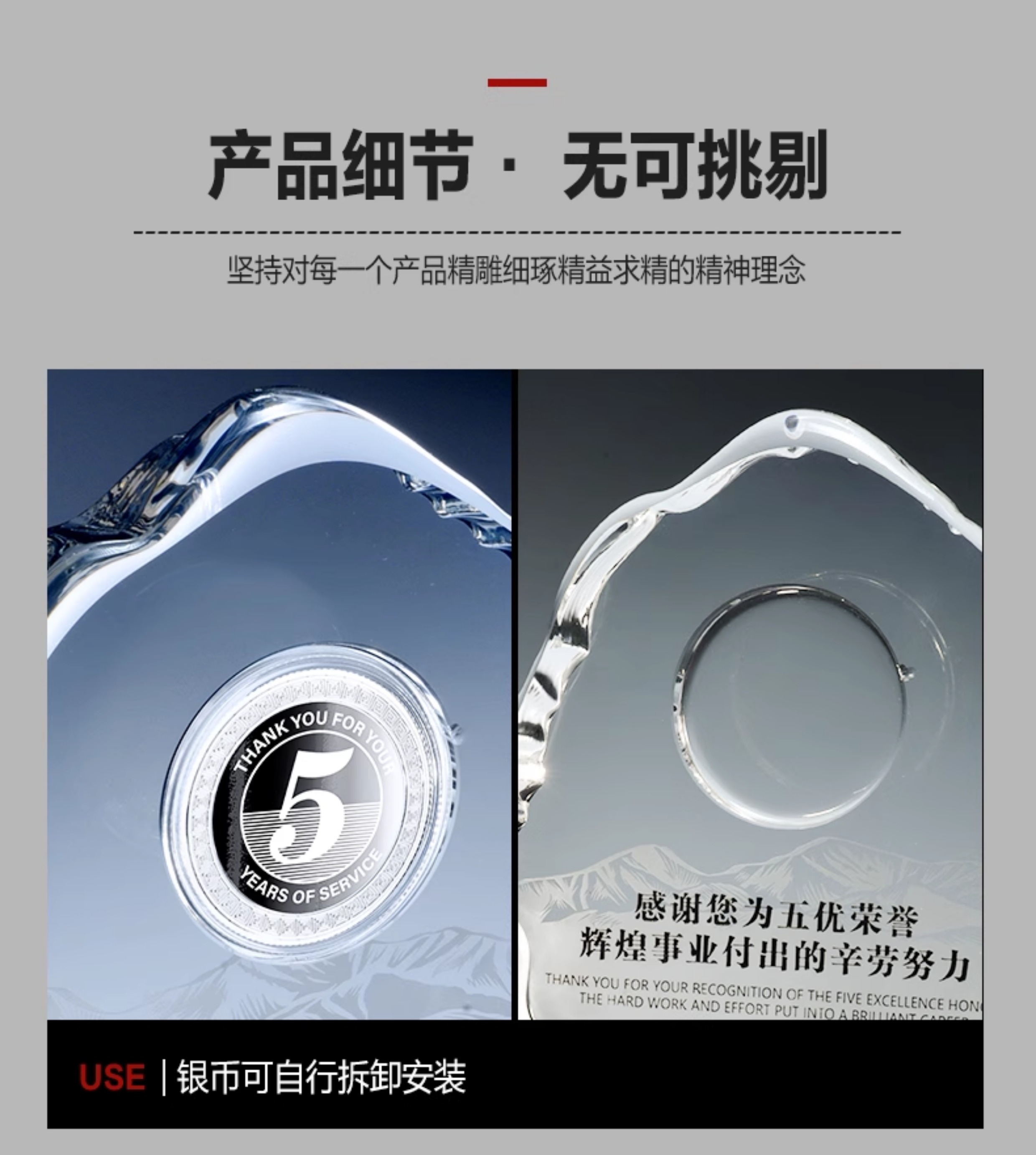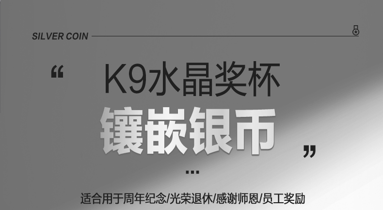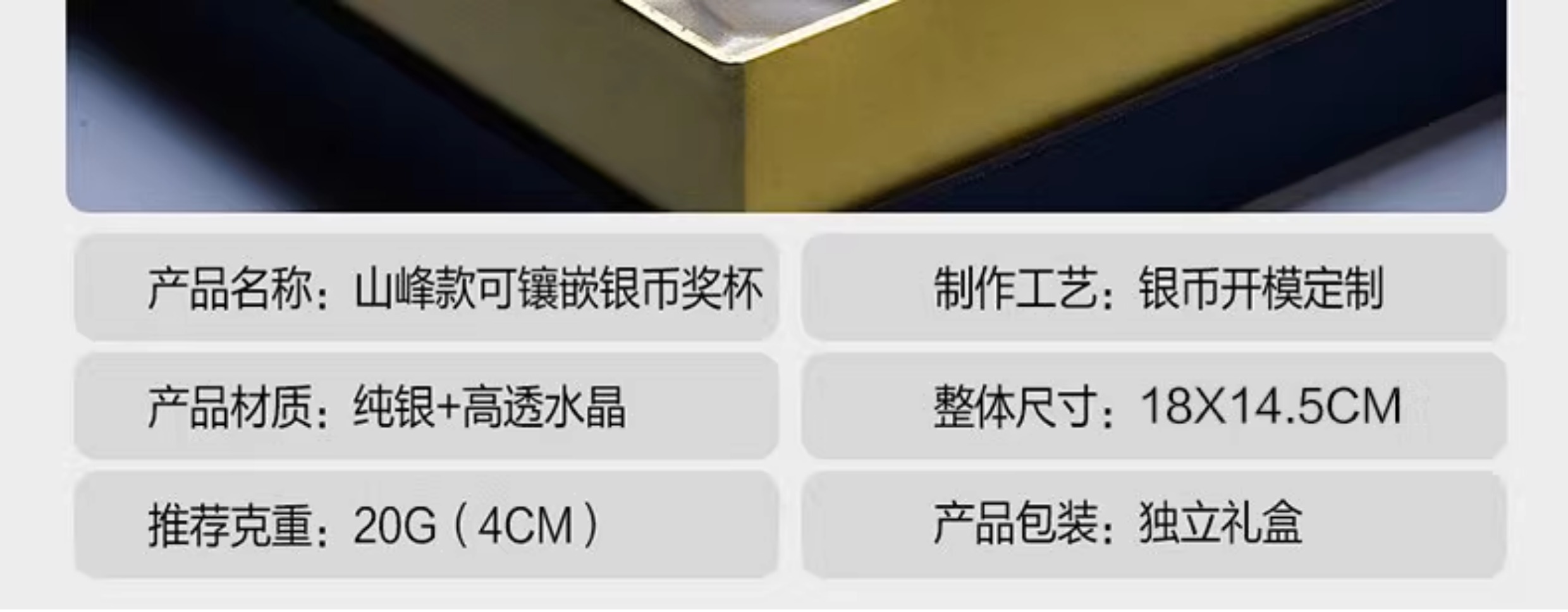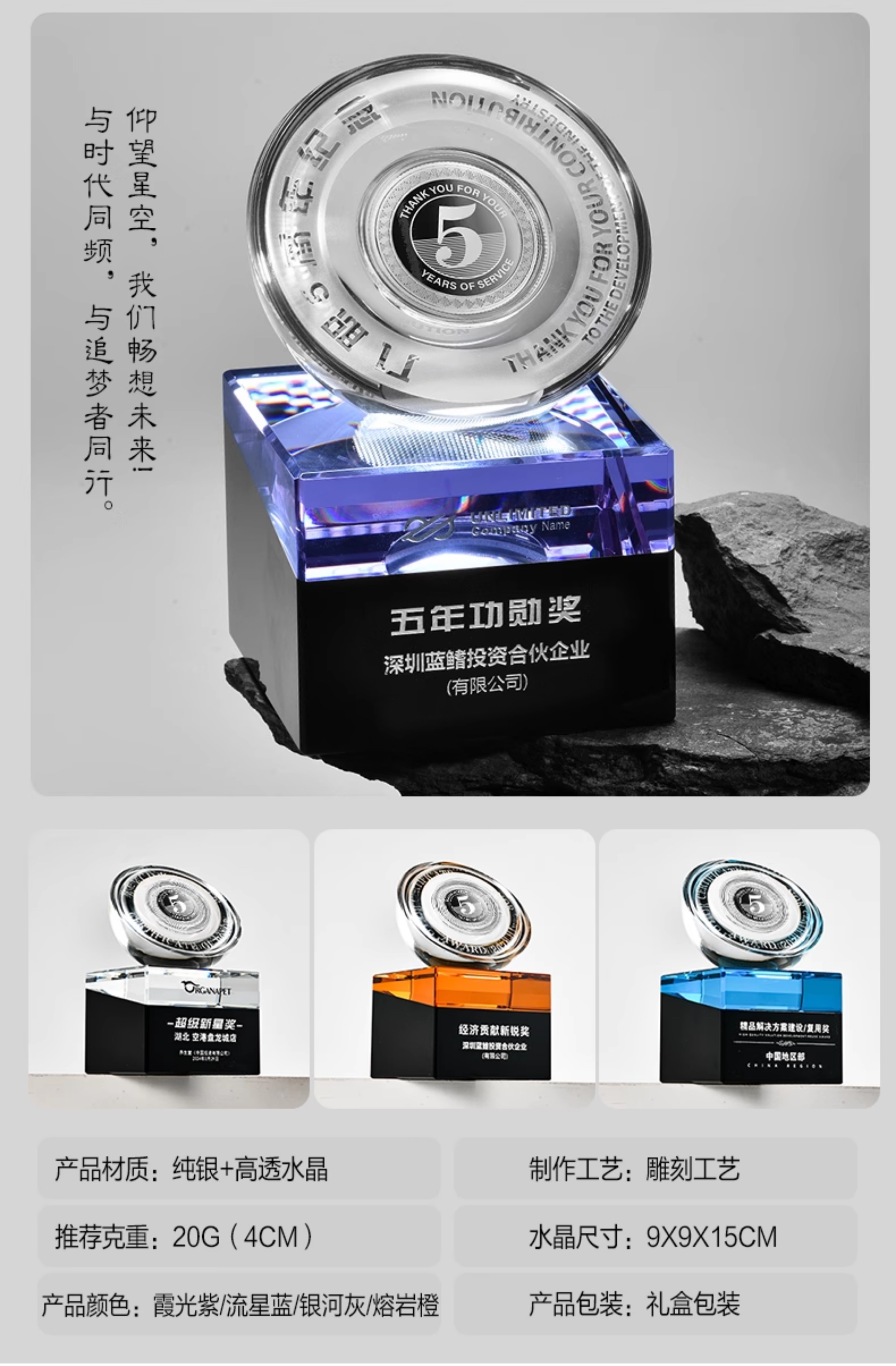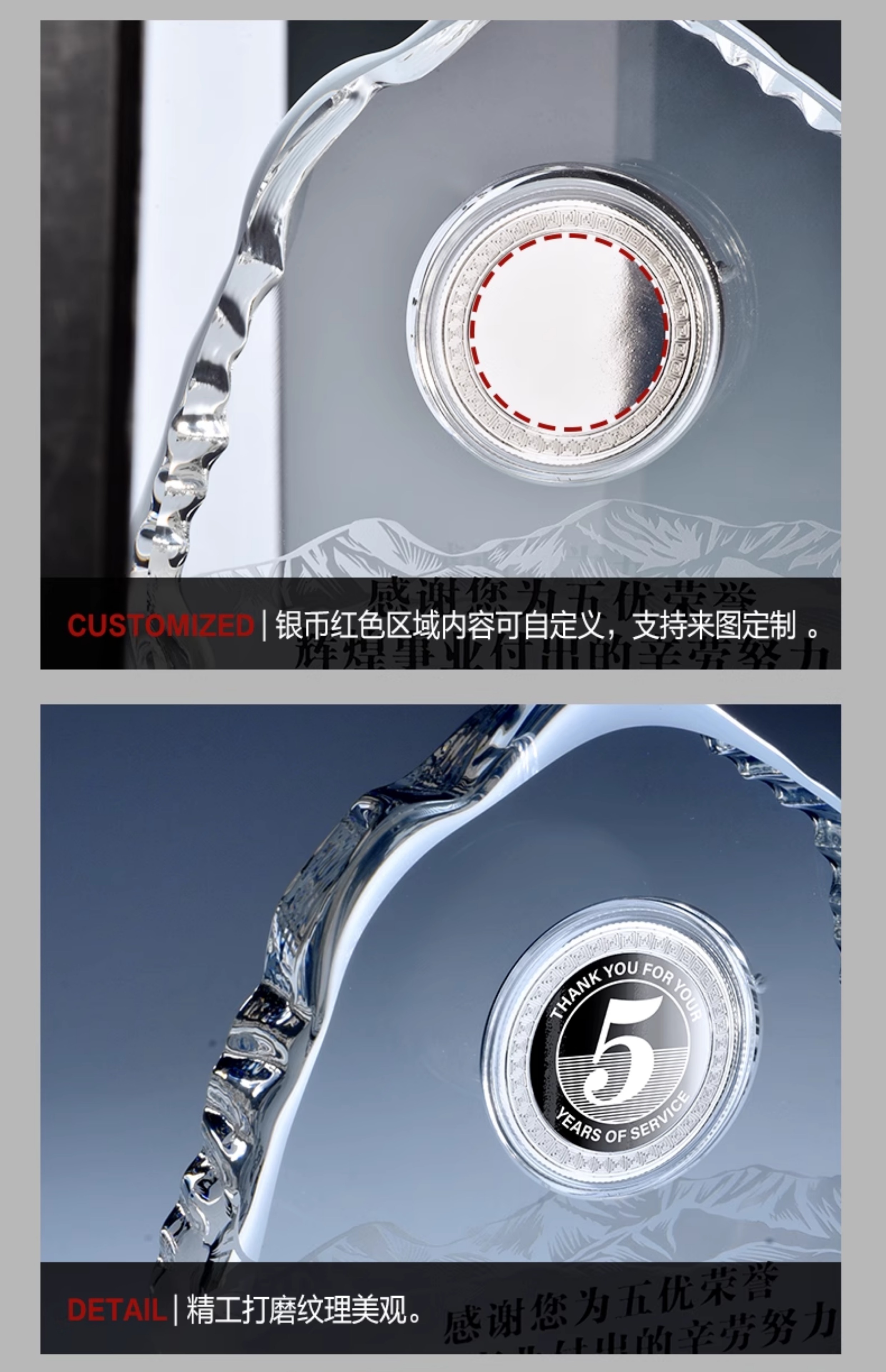 1049 / 纯银纪念金币银币镶嵌高端水晶奖杯奖牌定制荣誉周年庆达人冠军