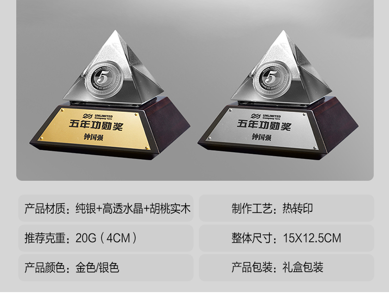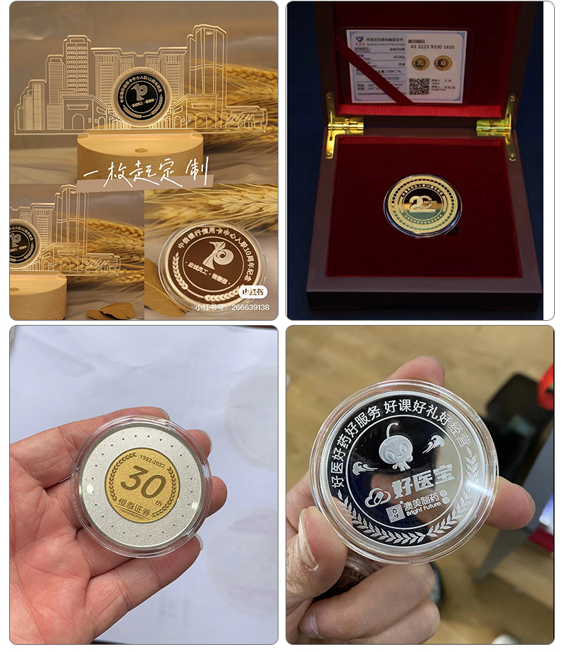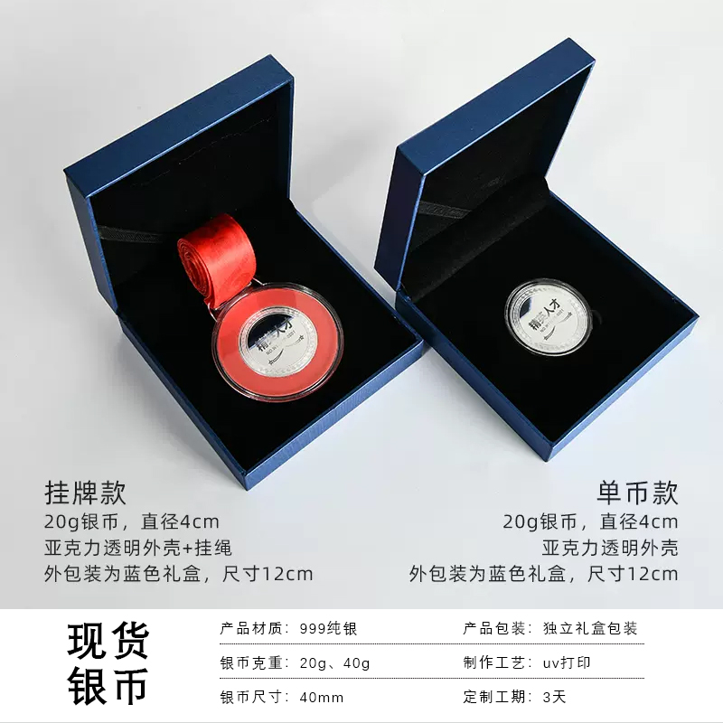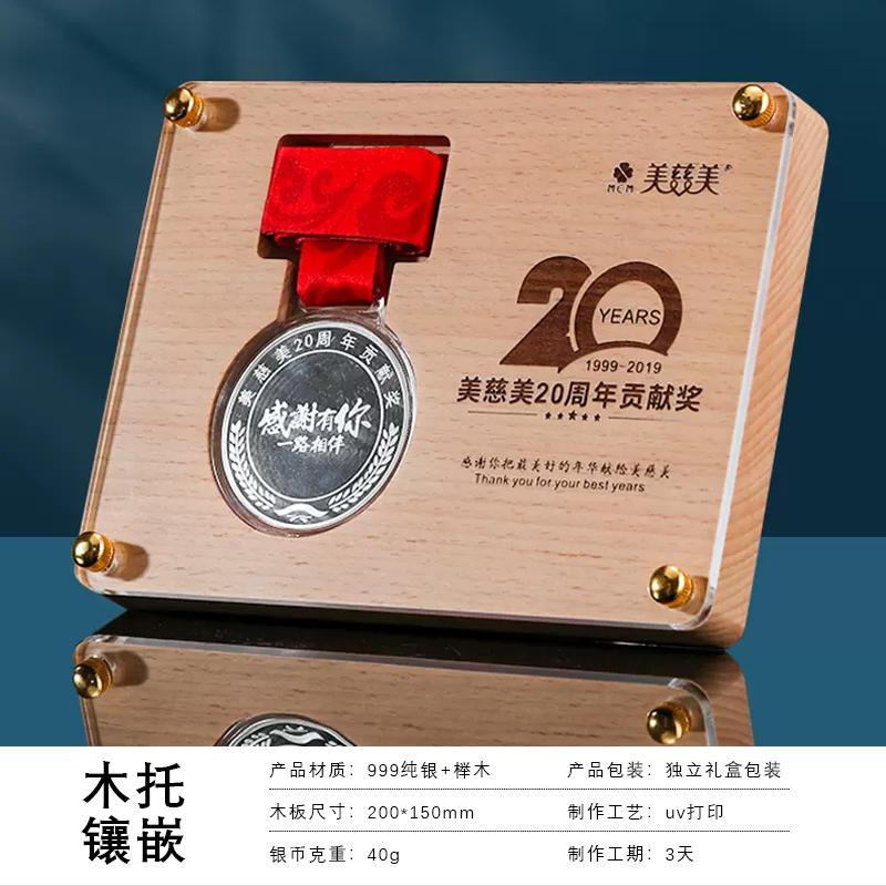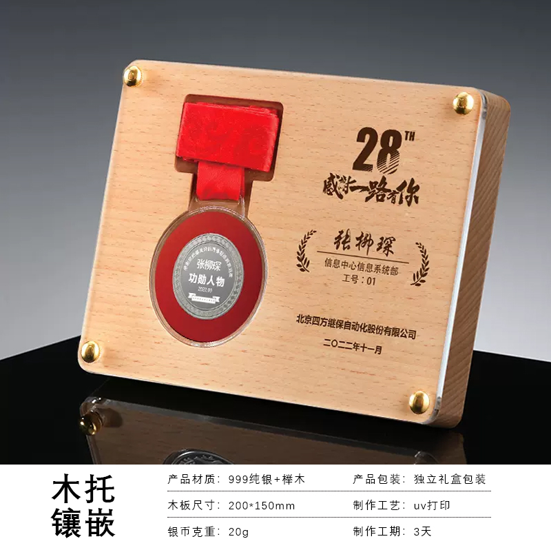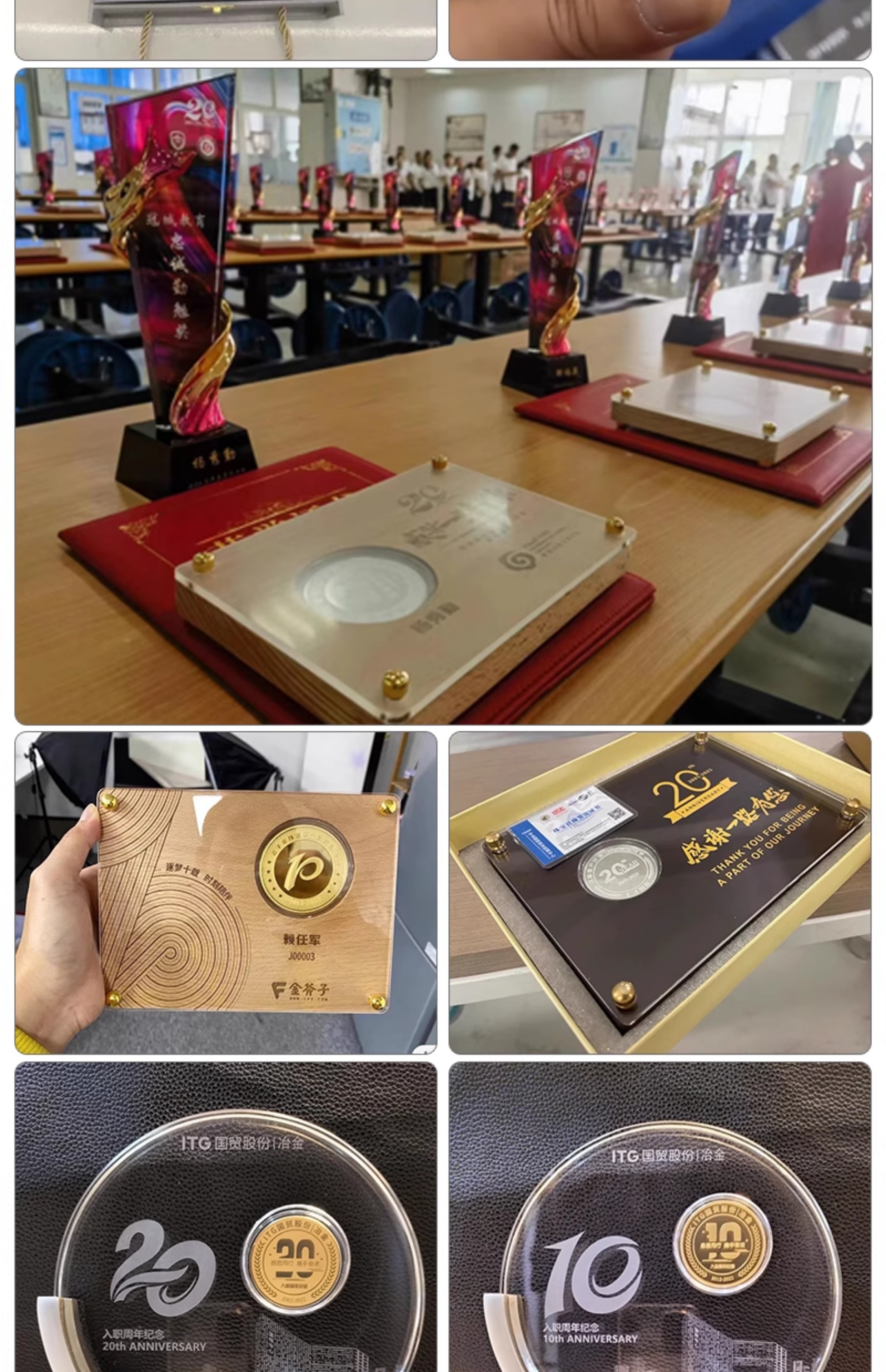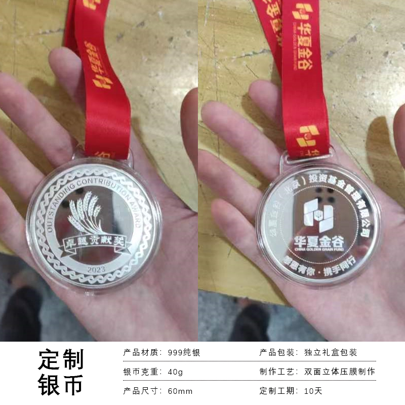 1049 / 纯银纪念金币银币镶嵌高端水晶奖杯奖牌定制荣誉周年庆达人冠军