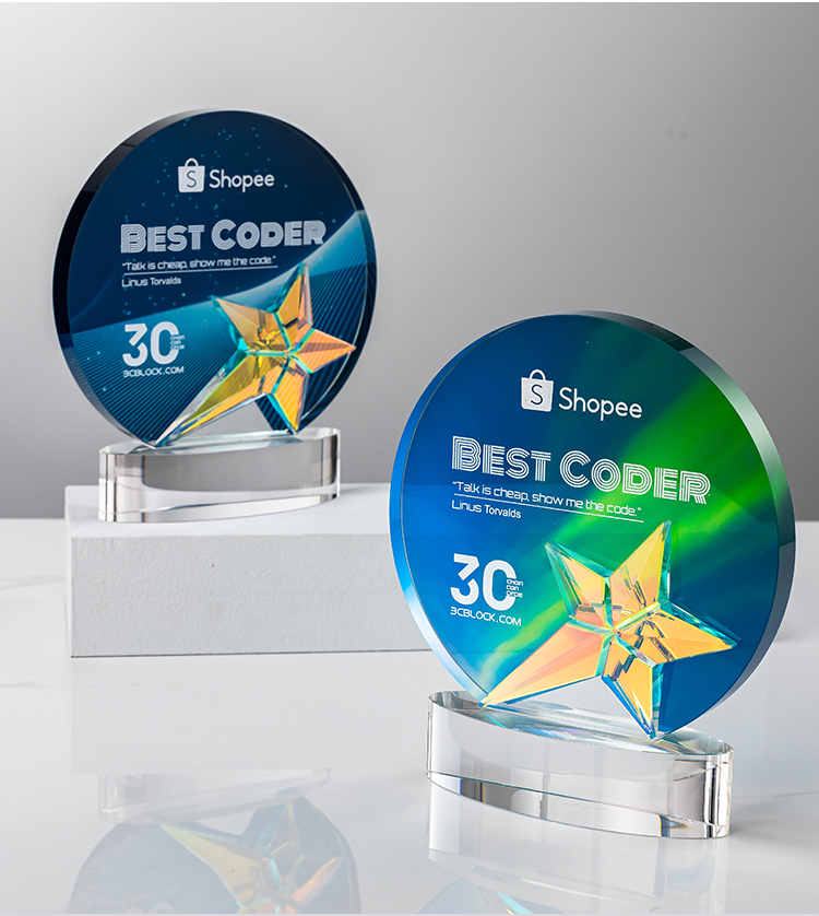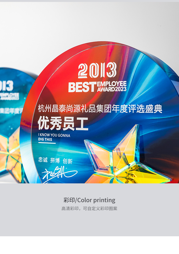 210 / 高档炫彩创意彩色水晶奖杯比赛冠军企业周年年会优秀员工荣誉纪念