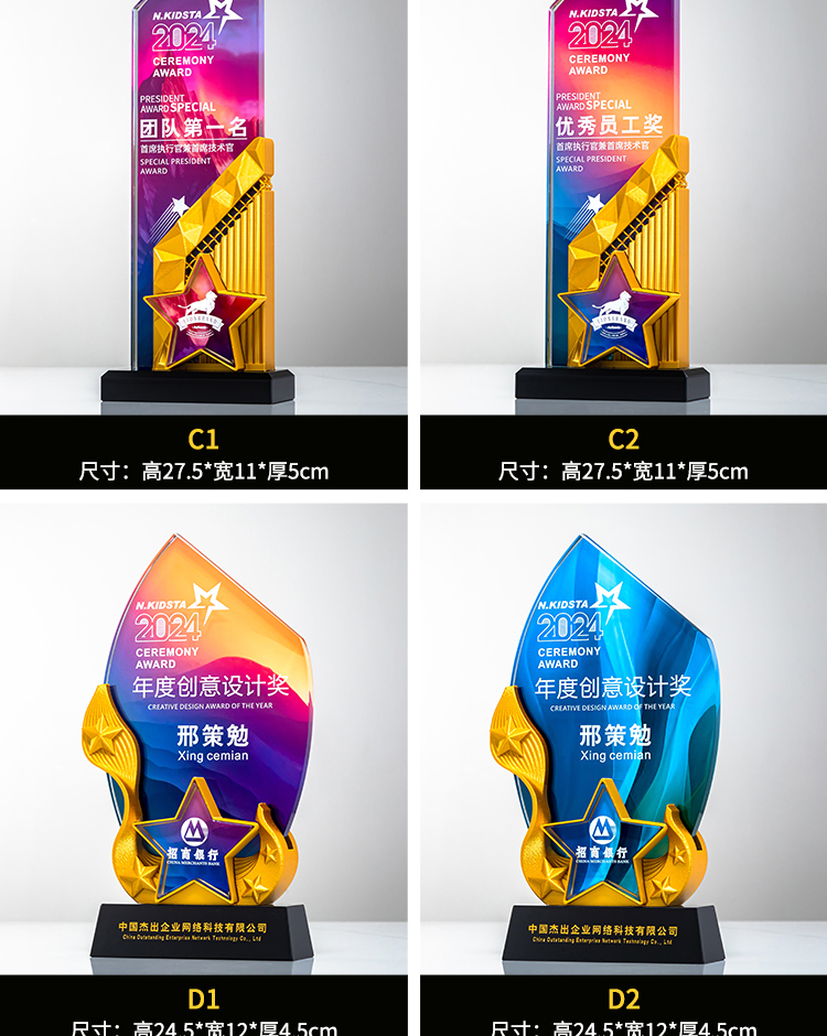 312 / 新款创意水晶奖杯定制奖牌优秀员工授权牌比赛颁奖高档大气纪念品