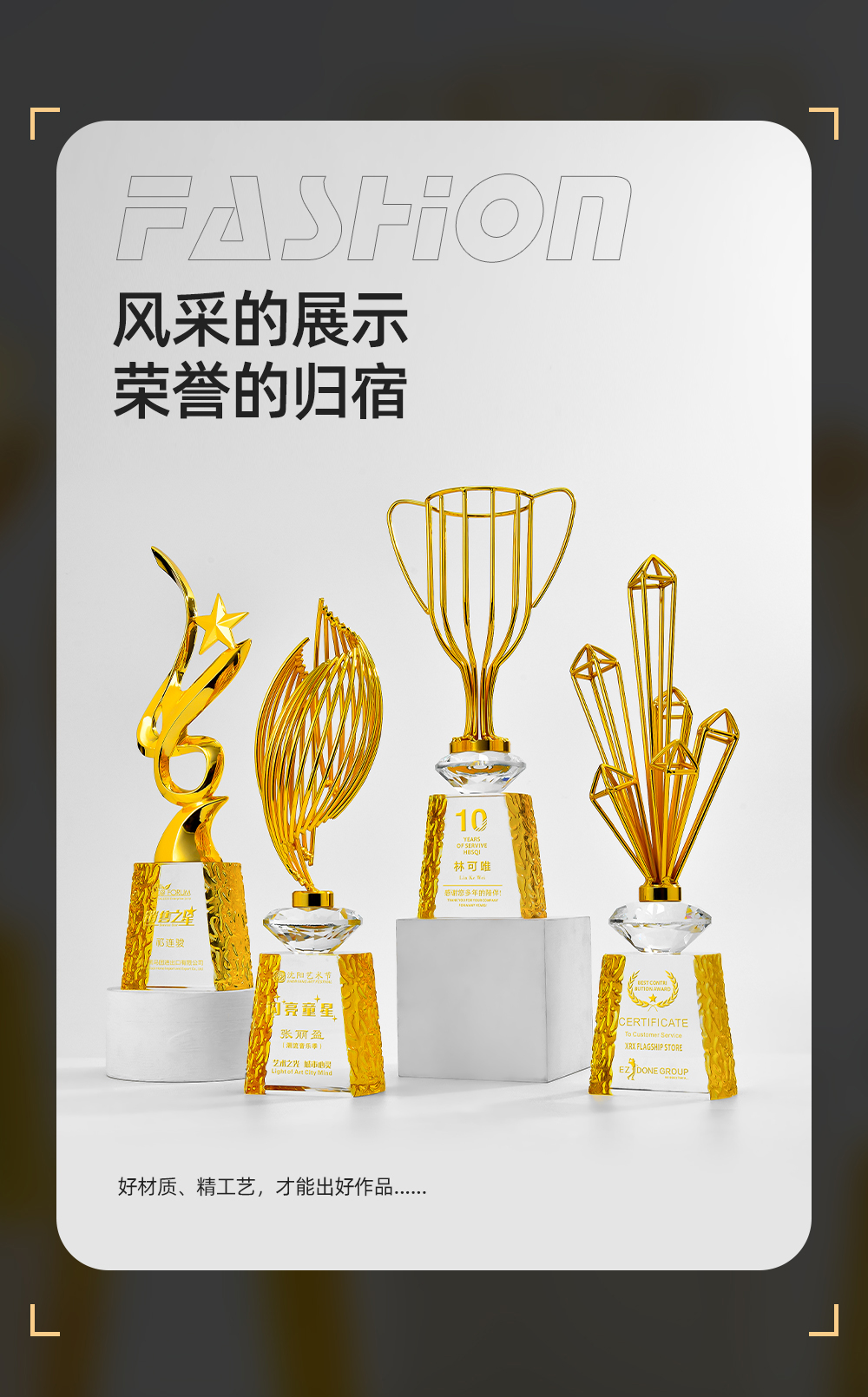 304 / 创意金属水晶奖杯定制高档大气企业优秀员工销冠活动颁奖荣誉订制