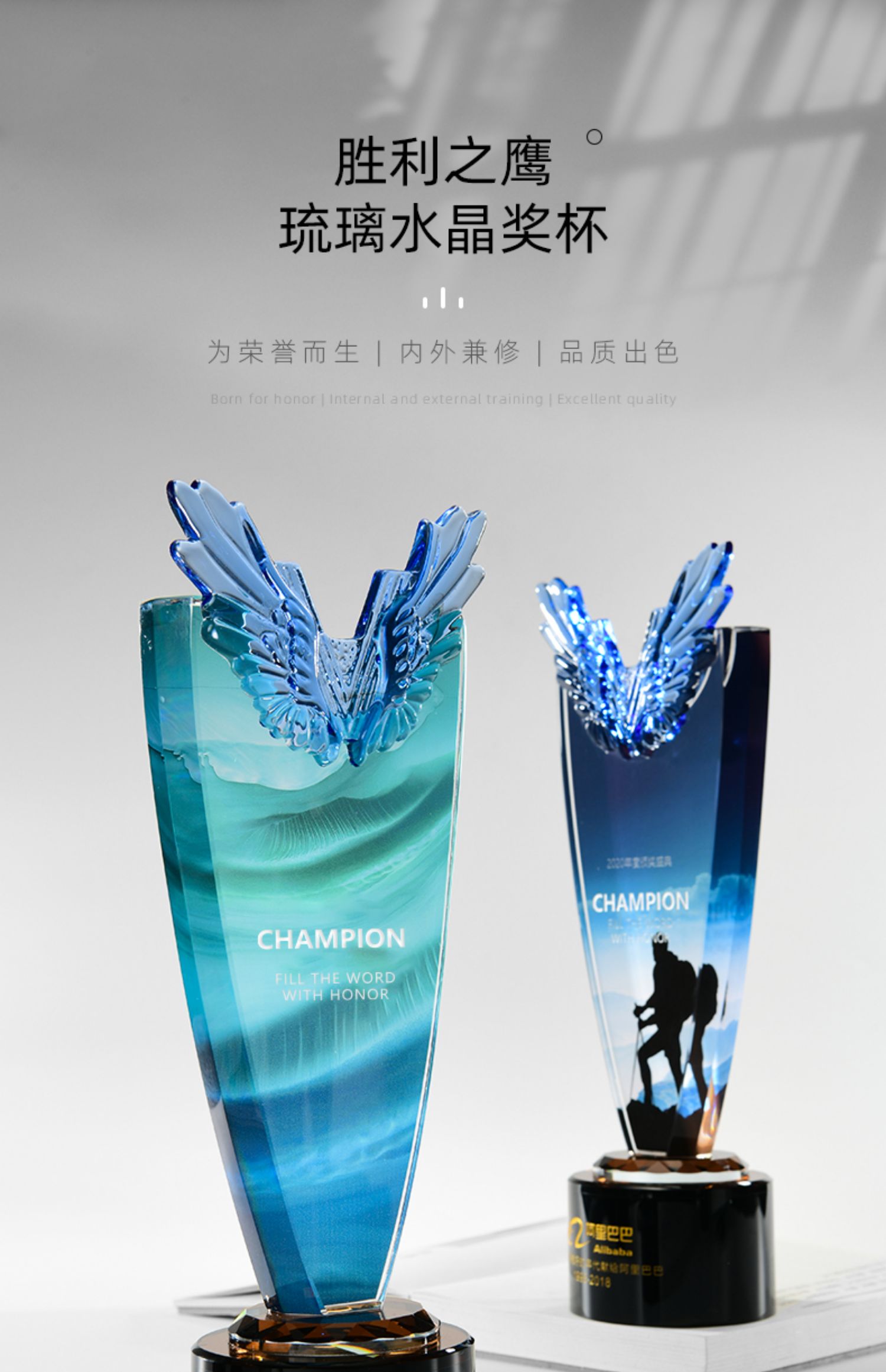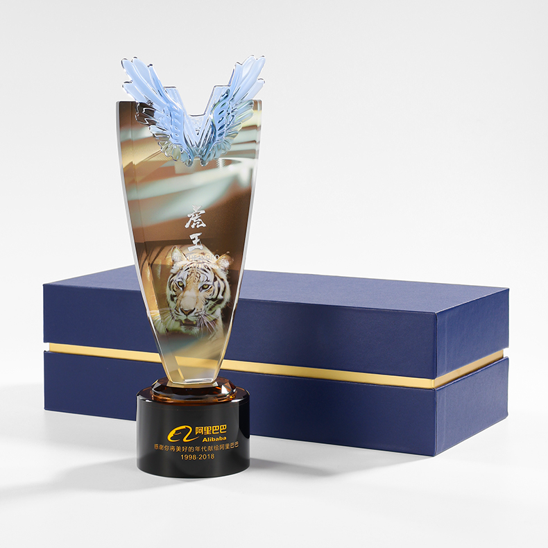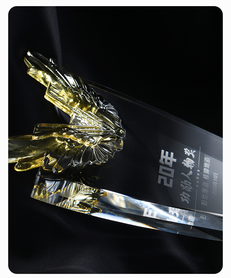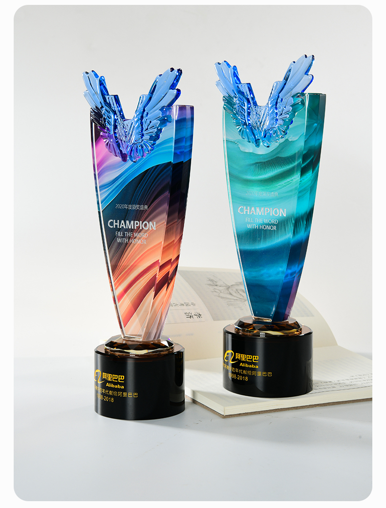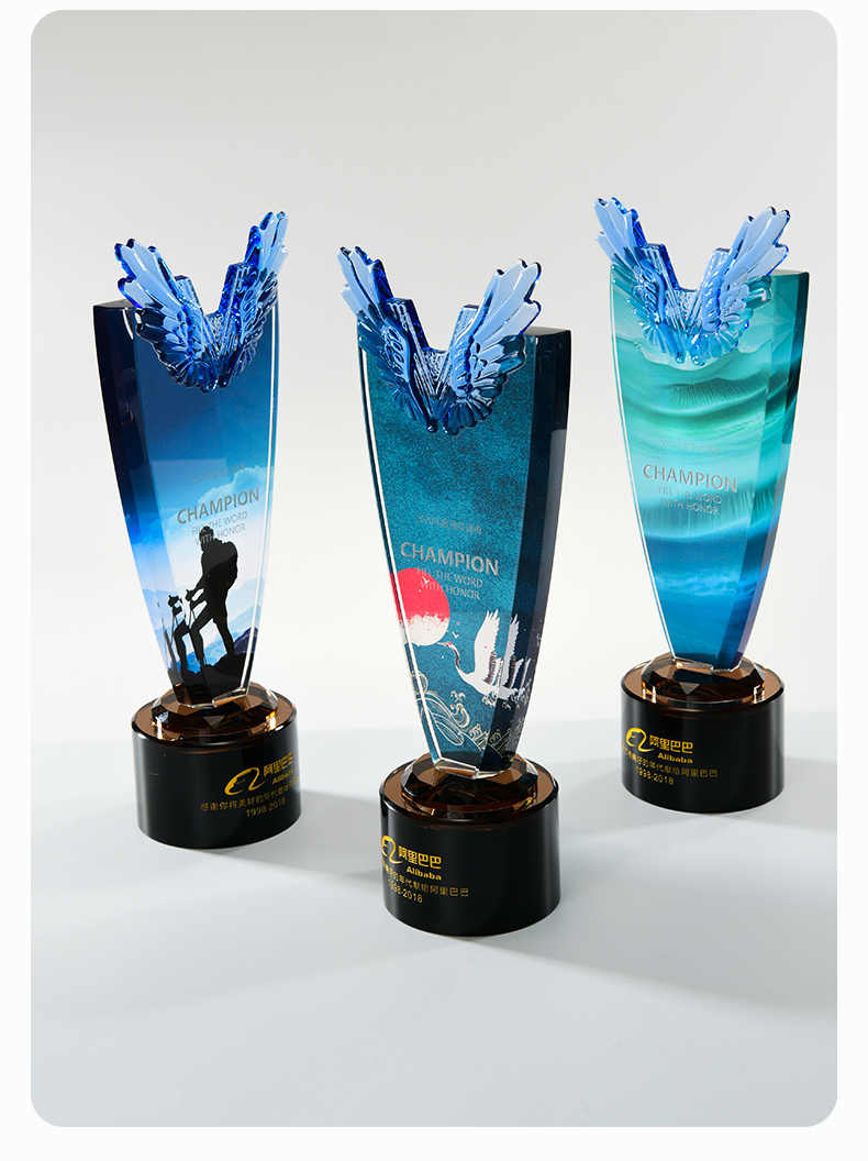 1022 / 新款翅膀高档大气水晶奖杯奖牌创意定做定制优秀员工周年庆纪念品