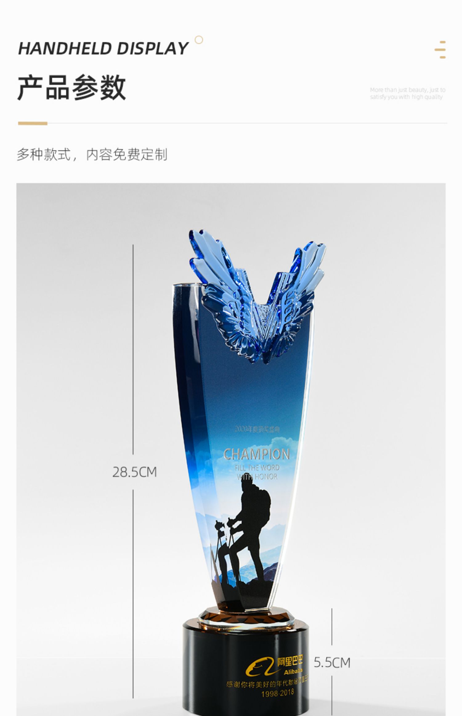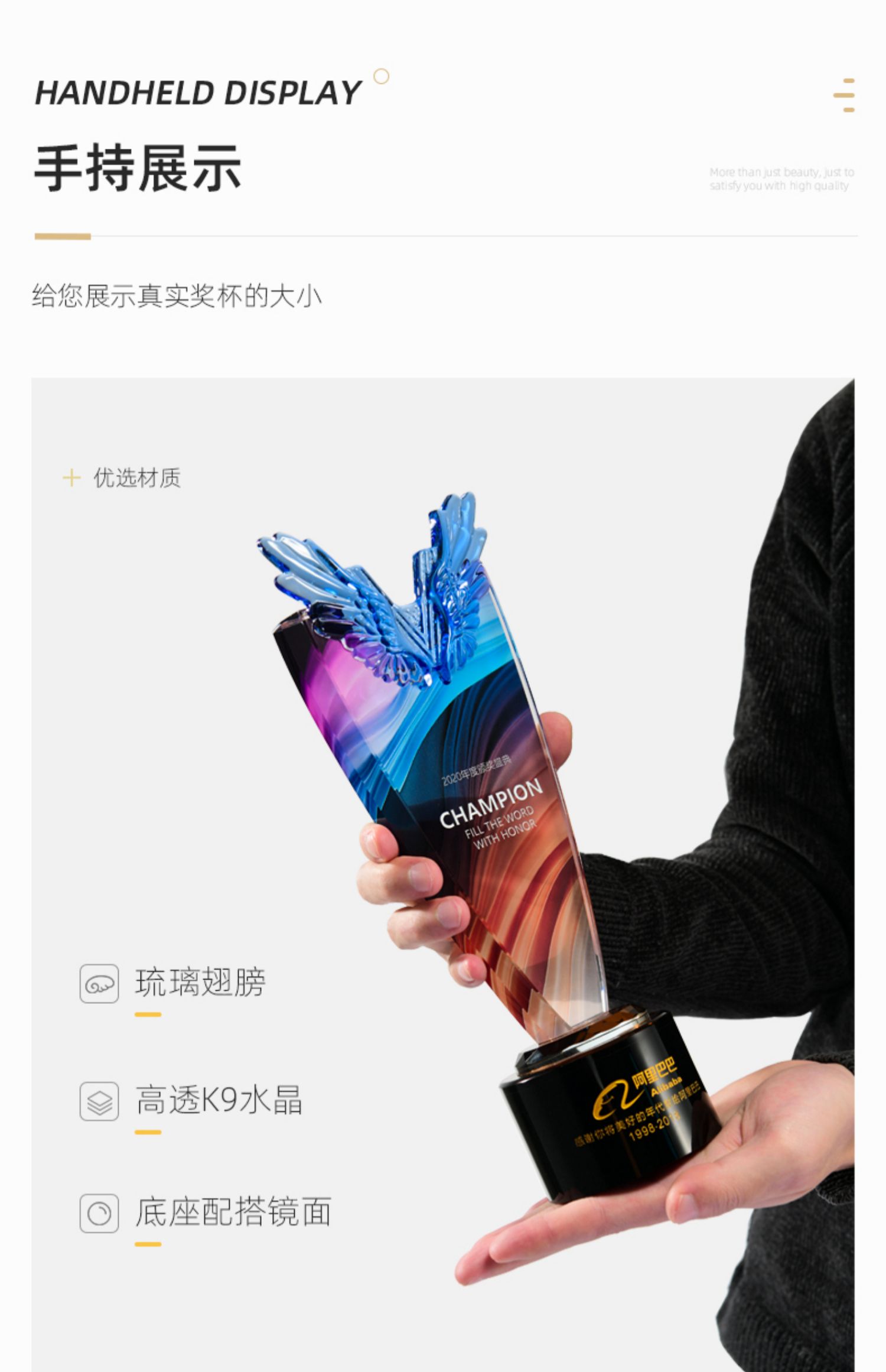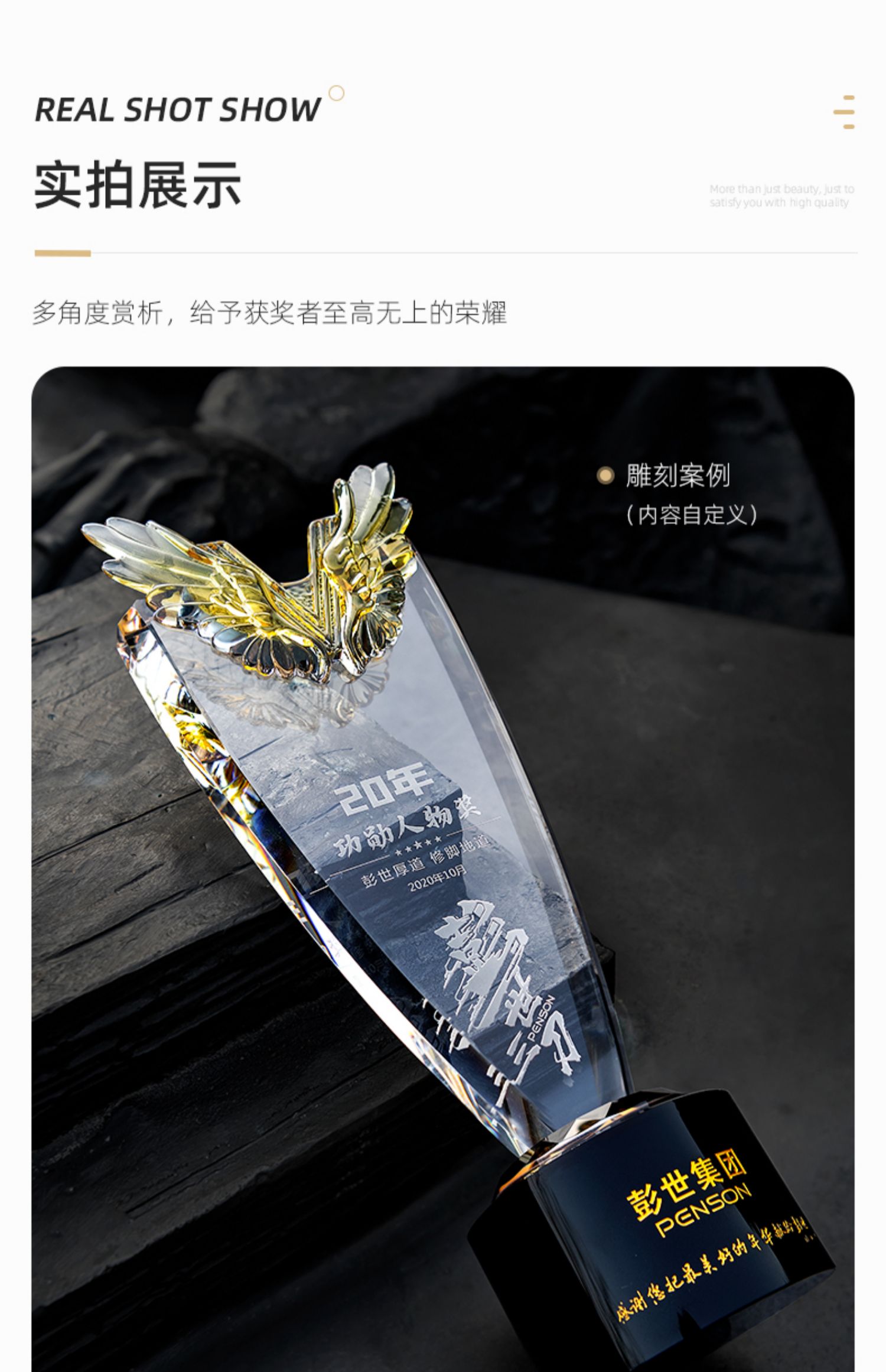 1022 / 新款翅膀高档大气水晶奖杯奖牌创意定做定制优秀员工周年庆纪念品
