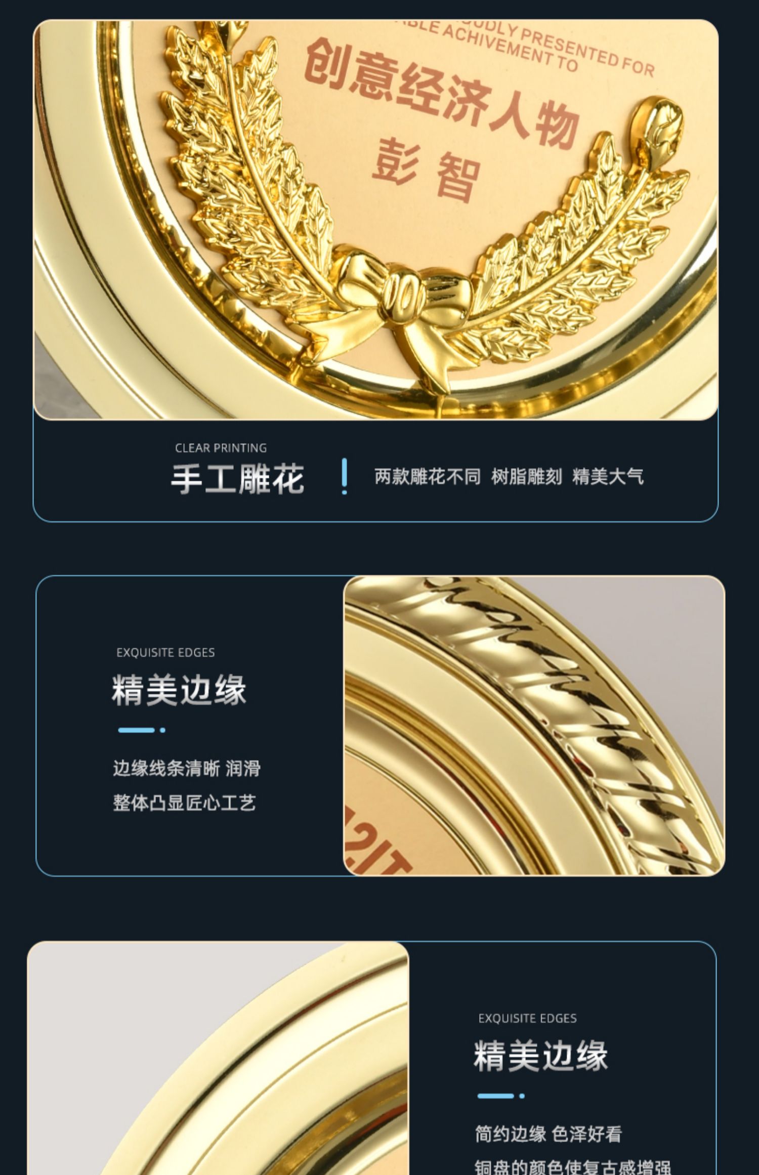 528 / 【铜盘奖盘】奖盘定制定做金属奖杯圆盘奖牌授权牌荣誉牌景泰蓝铜盘摆盘纪念品