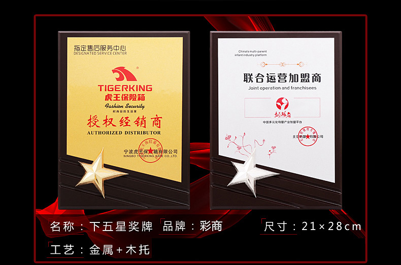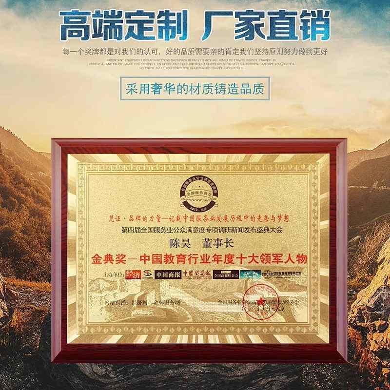 508 / 金箔奖牌定制定做实木授权牌荣誉牌牌匾制作木托铜牌木质代理证书