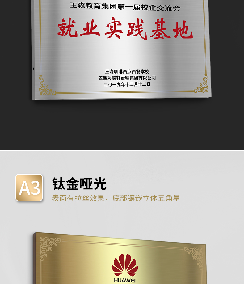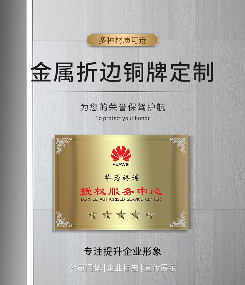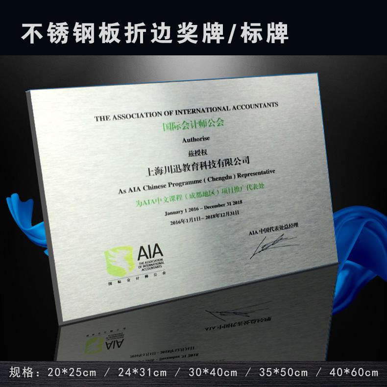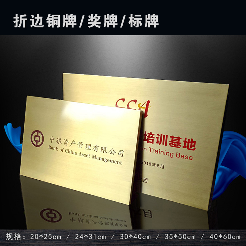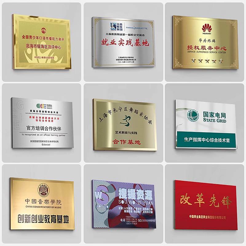508 / 奖牌定做40*60铜牌不锈钢钛金牌荣誉证书企业合作牌匾办公室牌匾