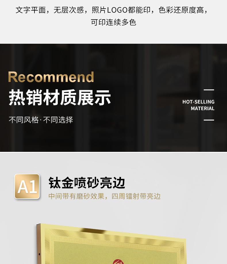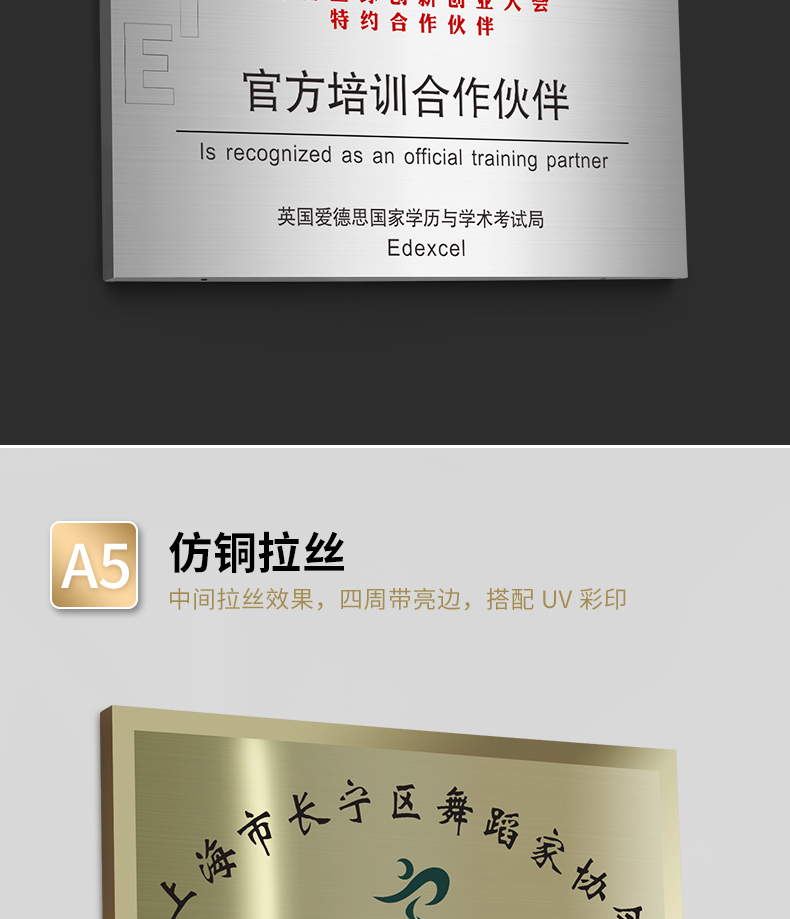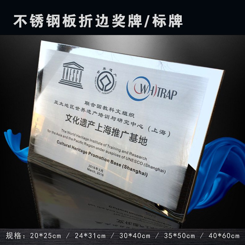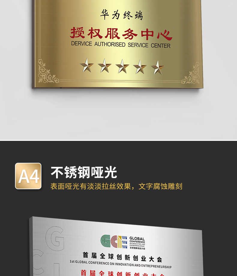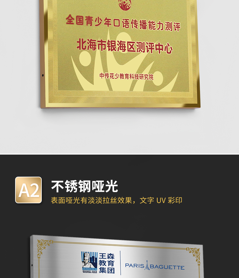 508 / 奖牌定做40*60铜牌不锈钢钛金牌荣誉证书企业合作牌匾办公室牌匾