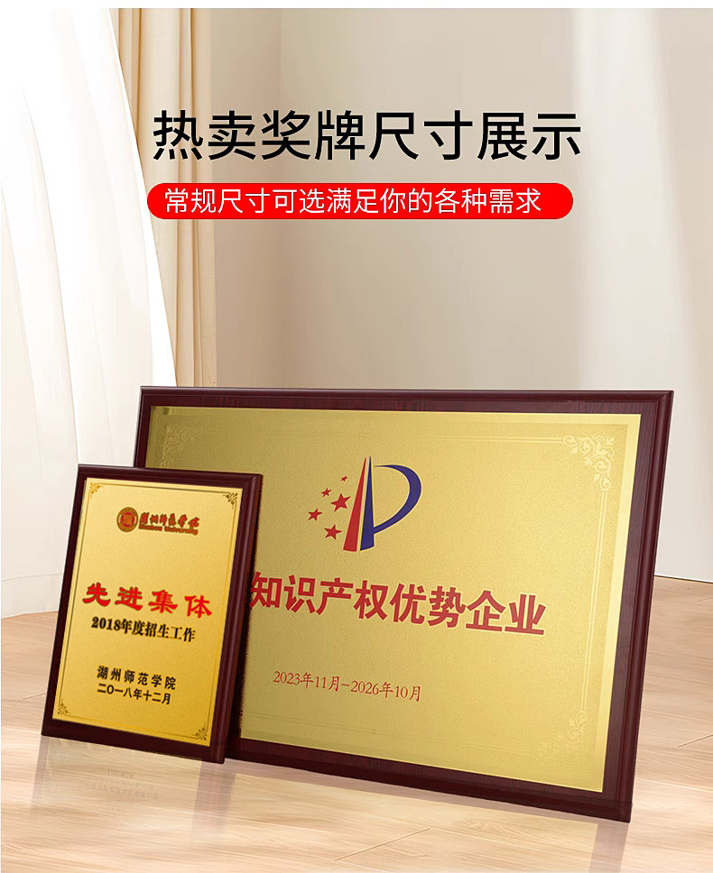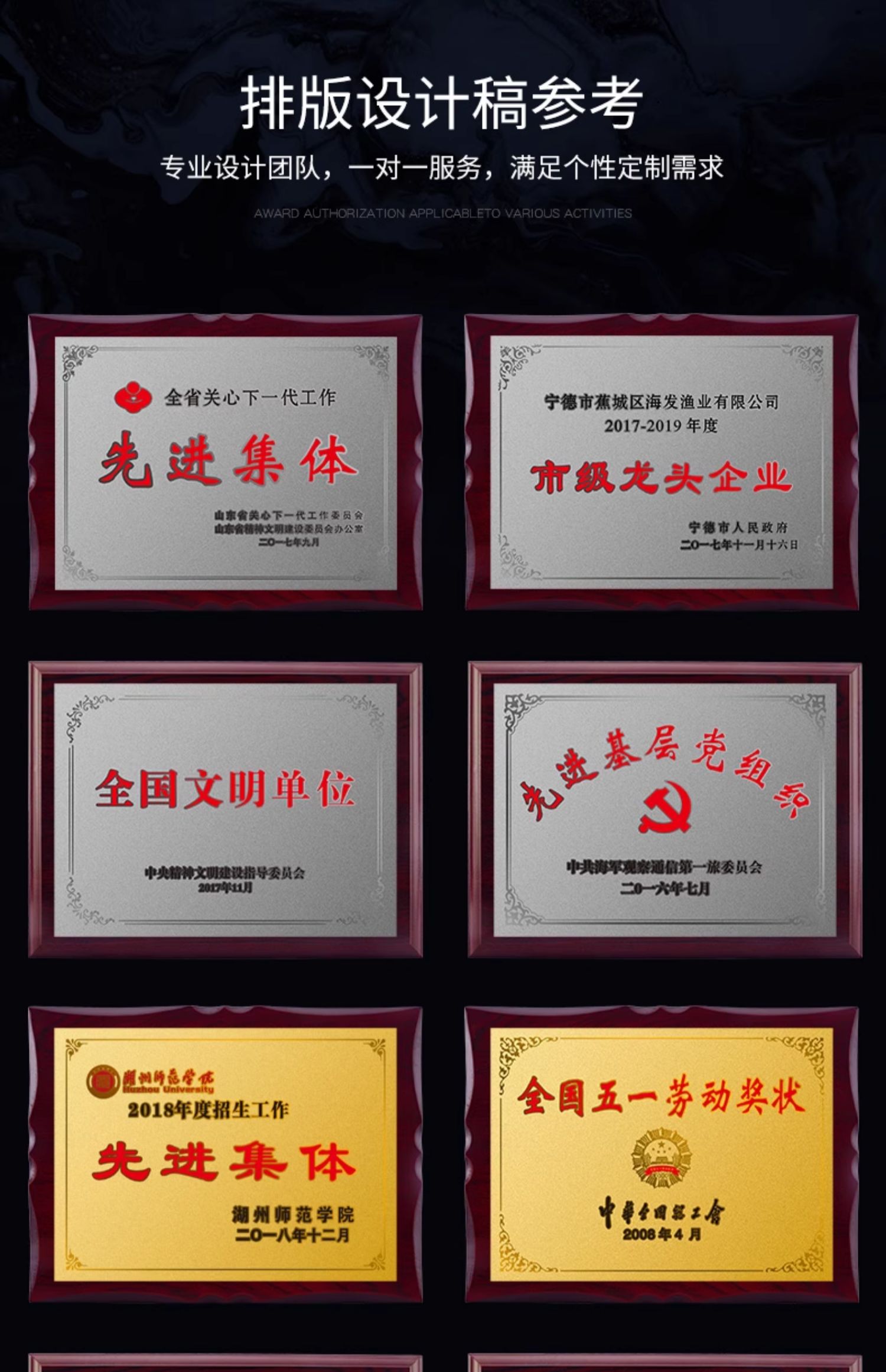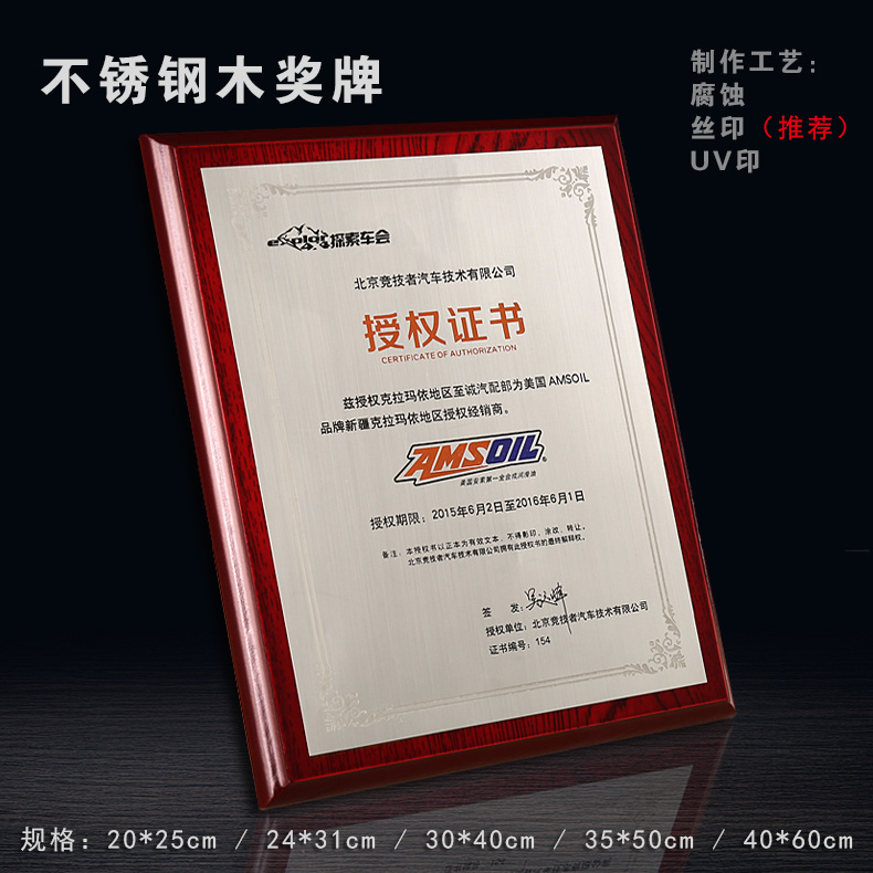 508 / 沙金钛金不锈钢堆金奖牌定做腐蚀铜牌木托授权牌金箔沙金木质奖牌木托牌匾标牌