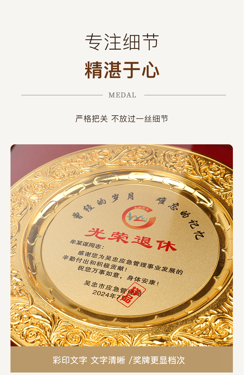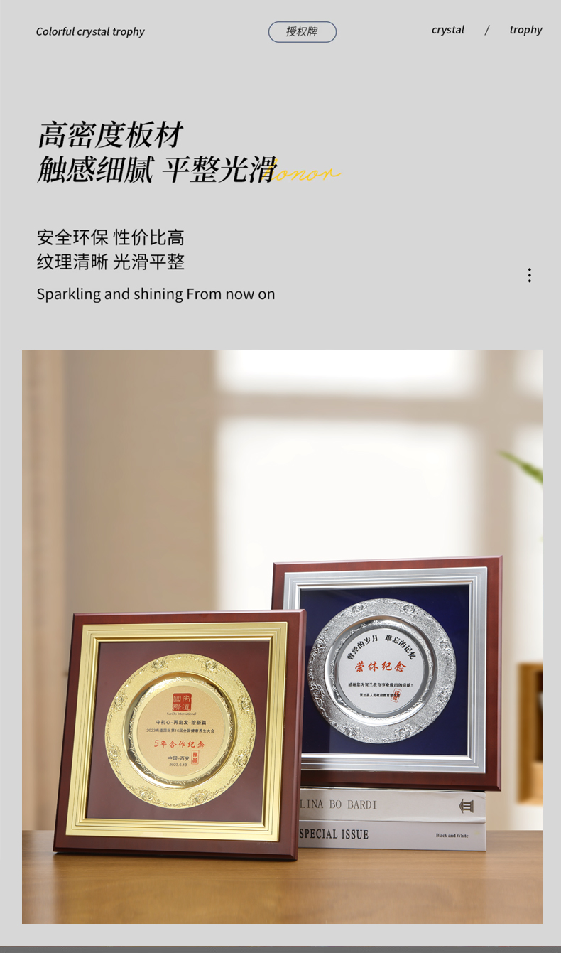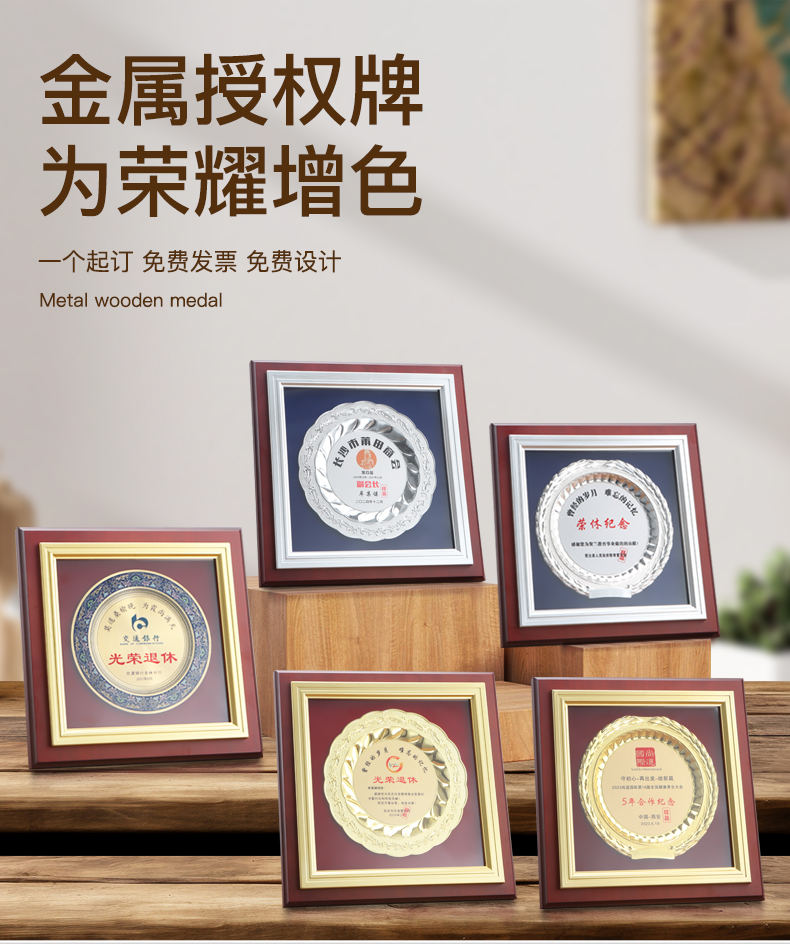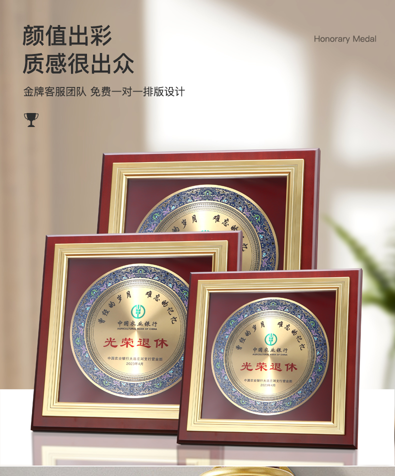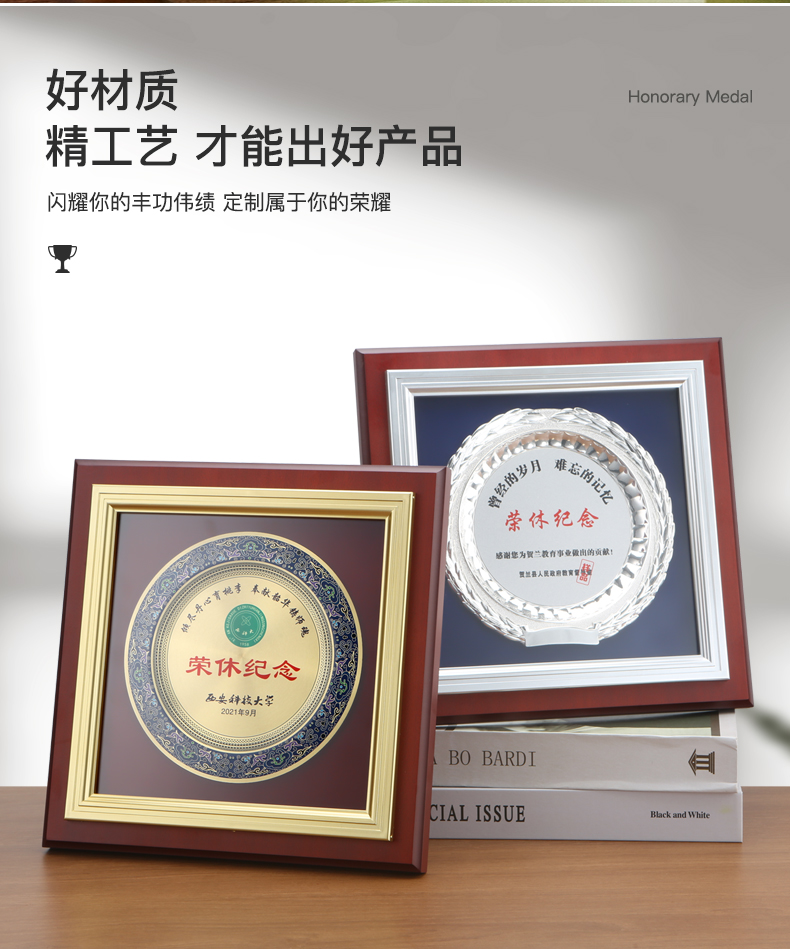 603 / 制高端金属奖盘奖牌授权牌定制定做纪念牌匾订制作退休荣誉颁奖