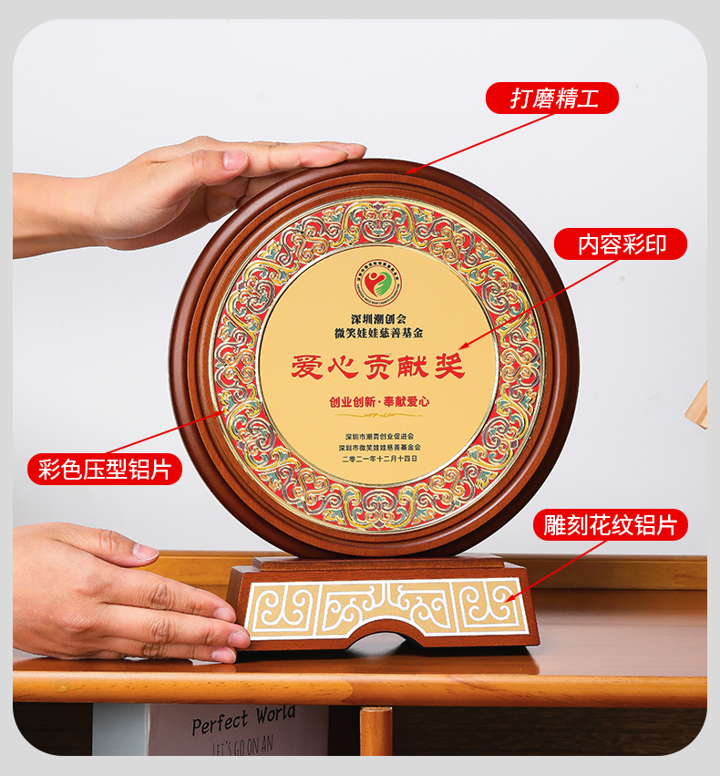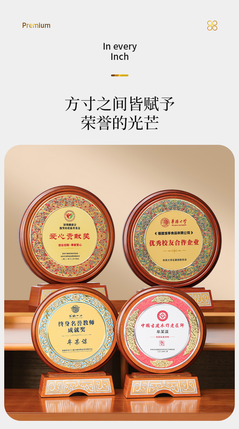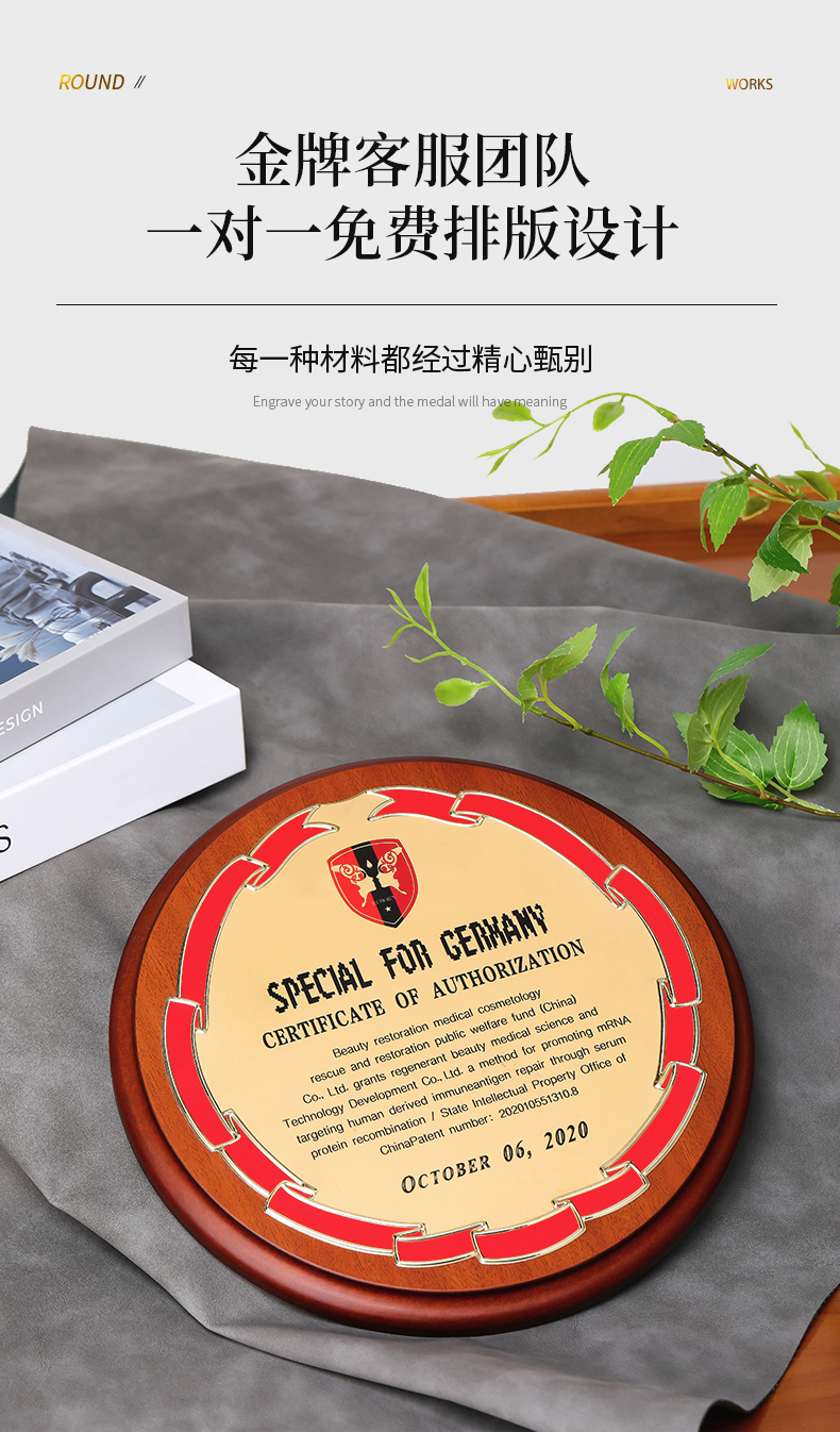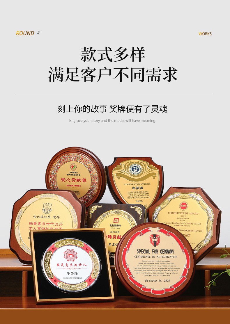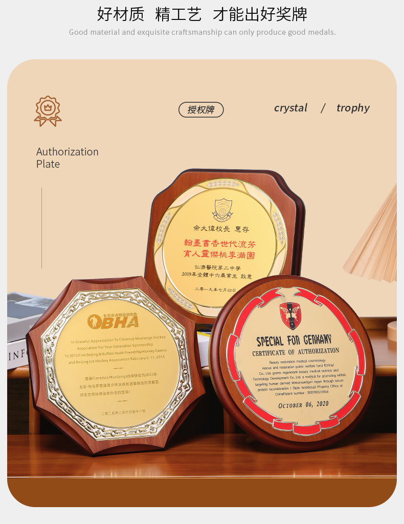 606 / 圆形盾牌奖牌定制定做授权牌荣誉牌匾定做铜牌实木质代理商授权牌定制