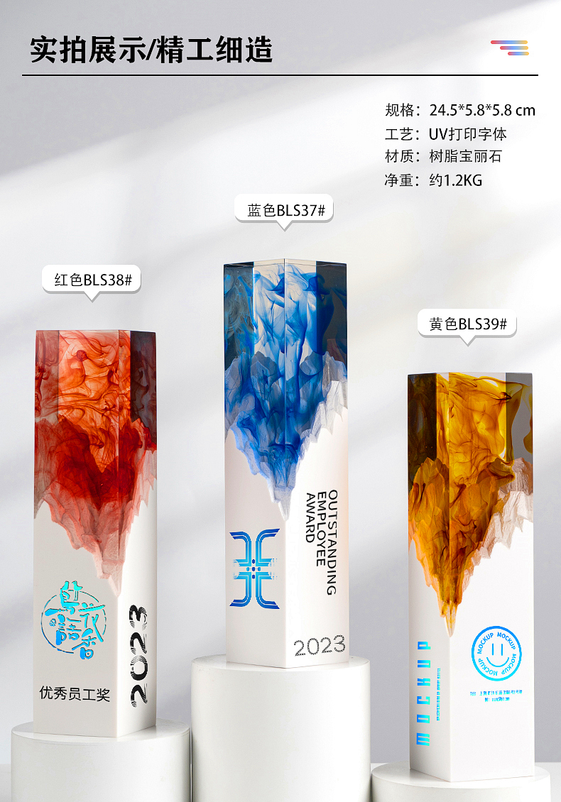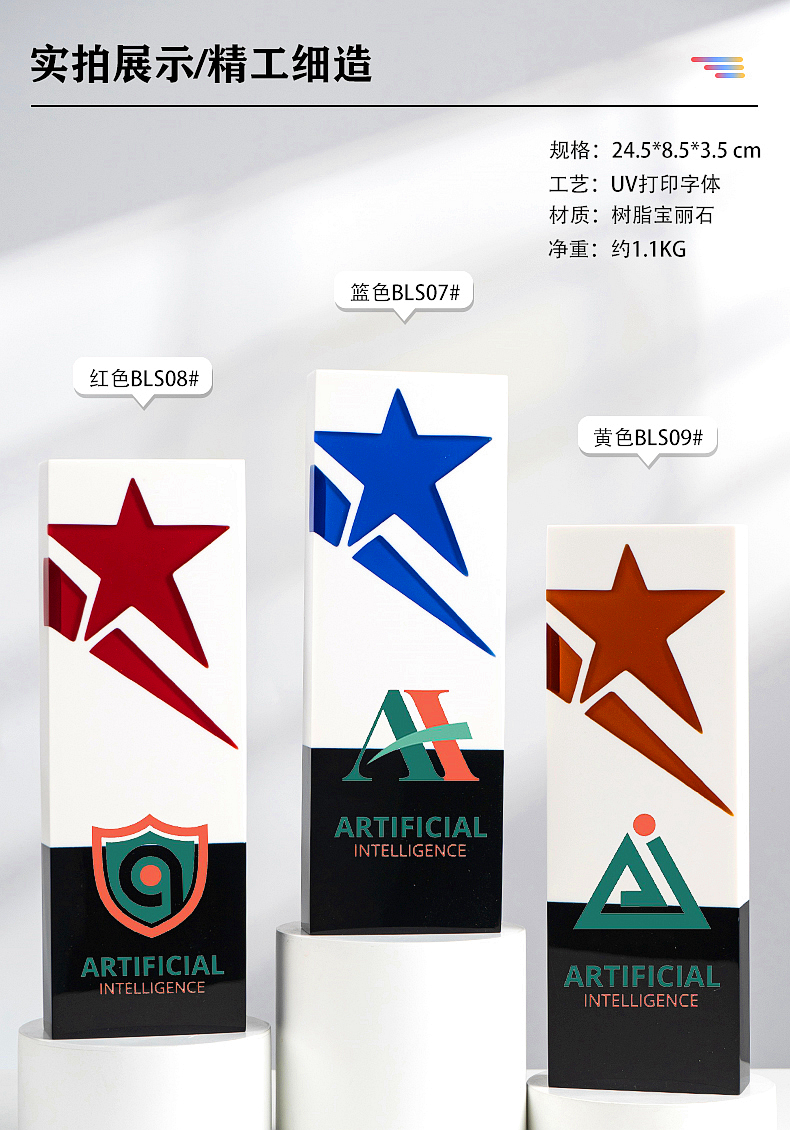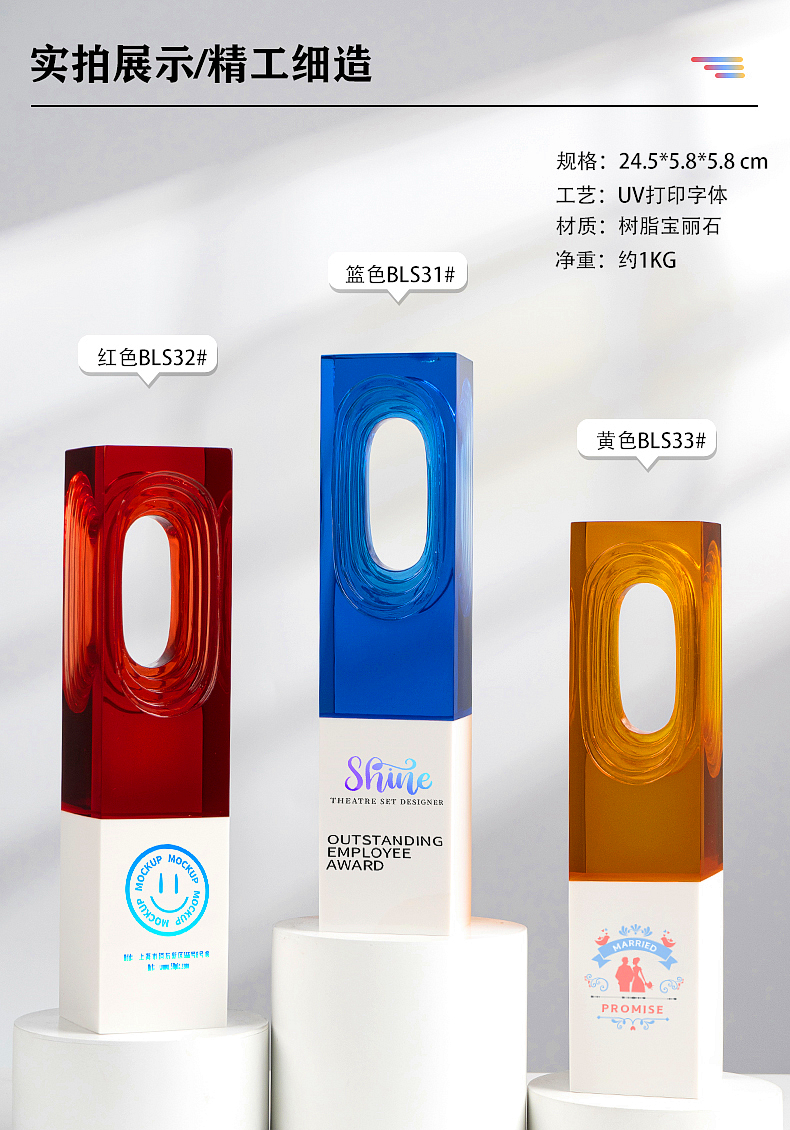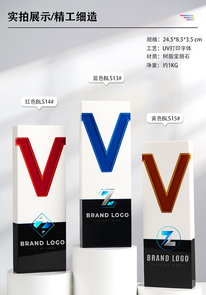 433 / 高档新款树脂宝丽石奖杯定制销售冠军比赛年会订制荣誉牌奖牌创意