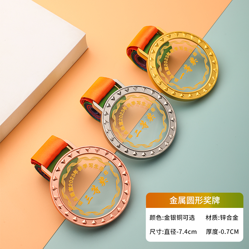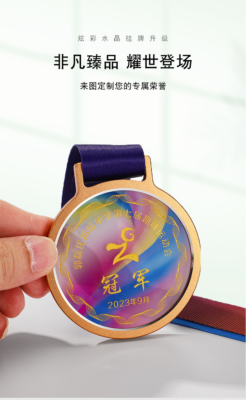 643 / 金属水晶奖牌挂牌定制定做学校职工运动会登山马拉松比赛冠军金牌