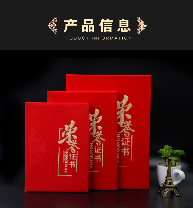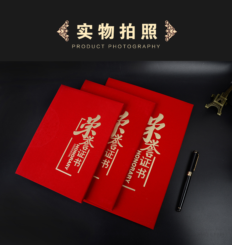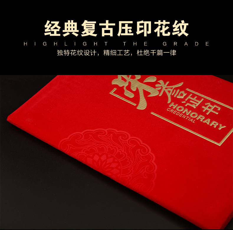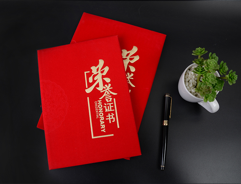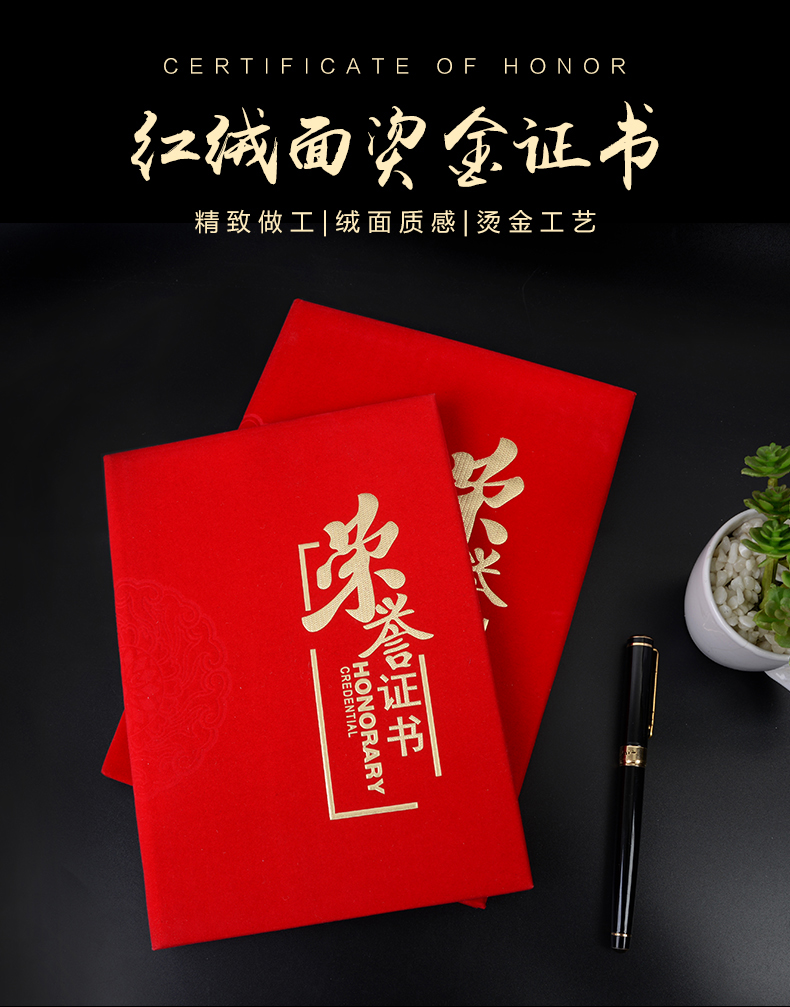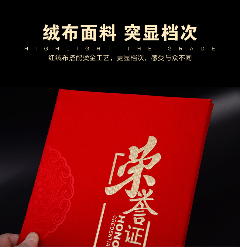 红绒面荣誉证书外
