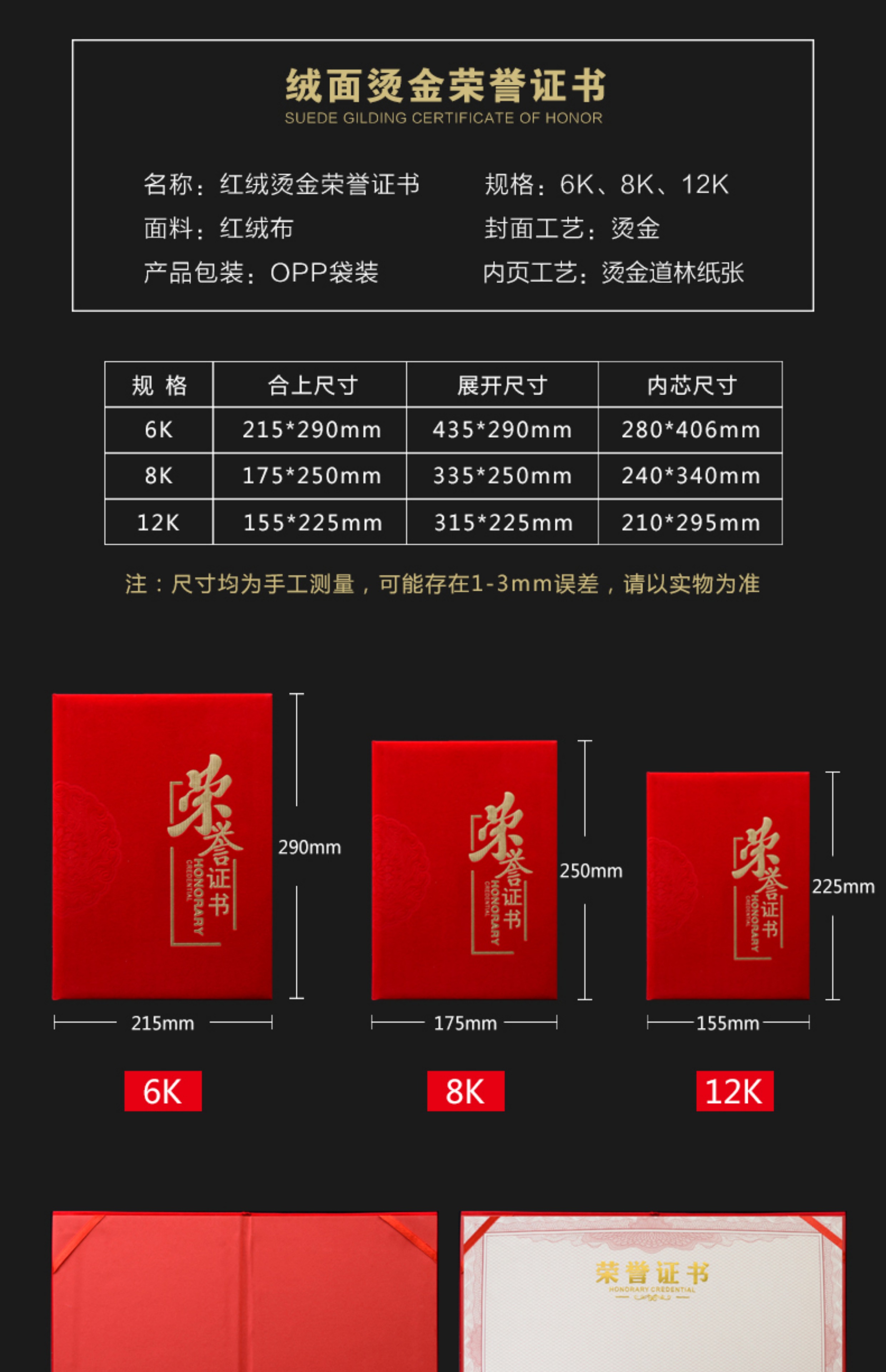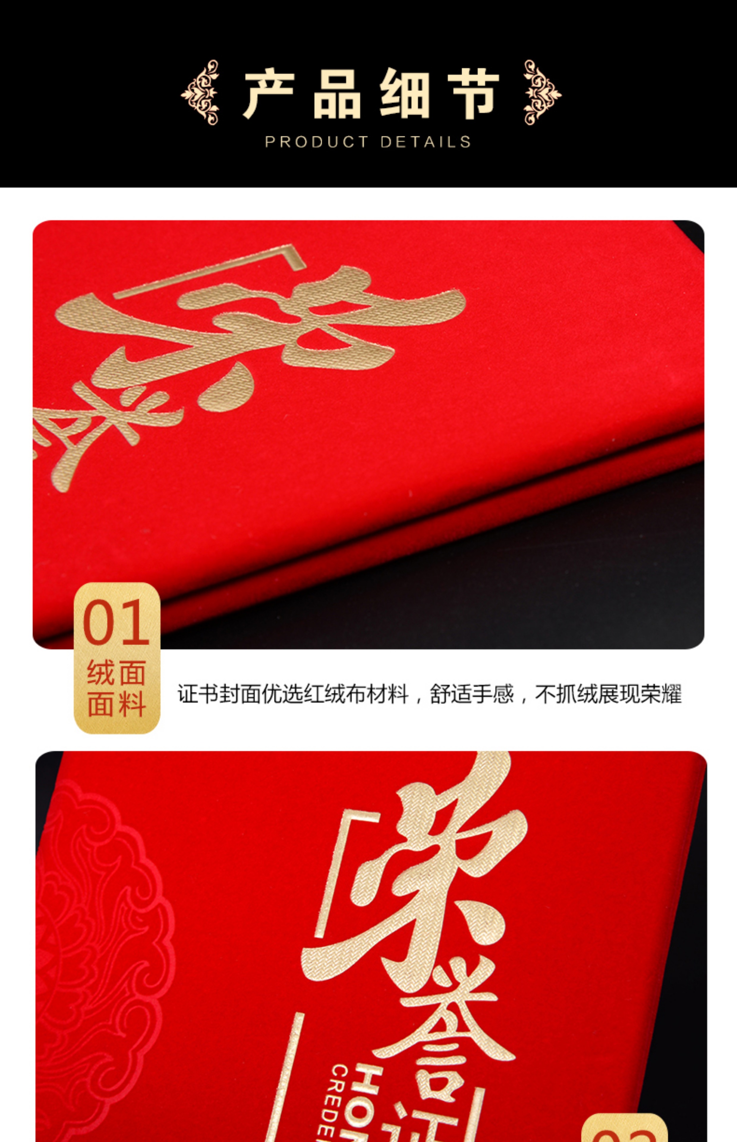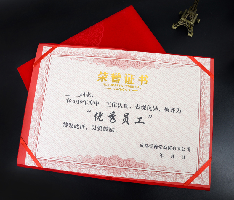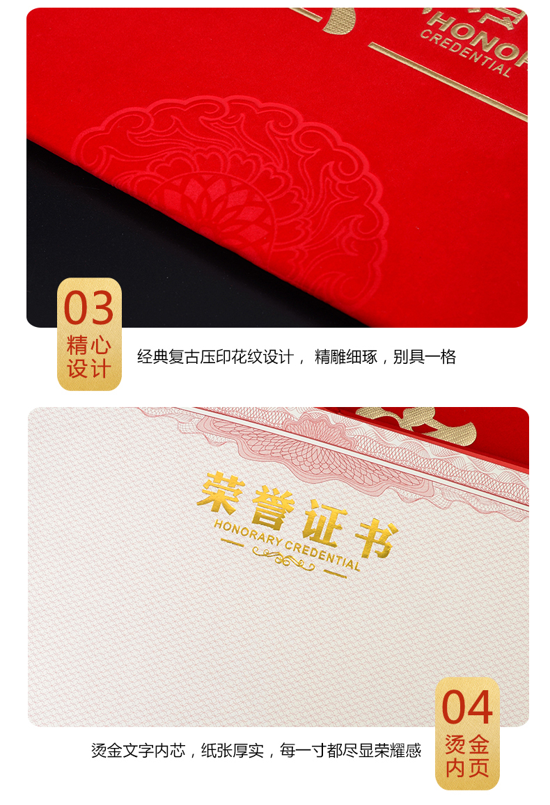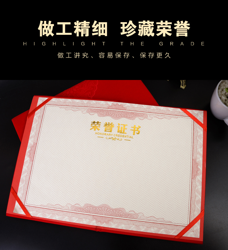红绒面荣誉证书外