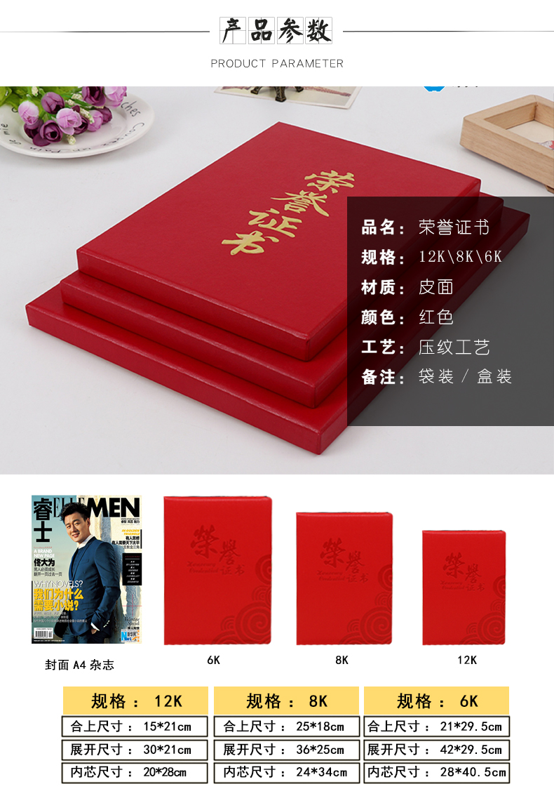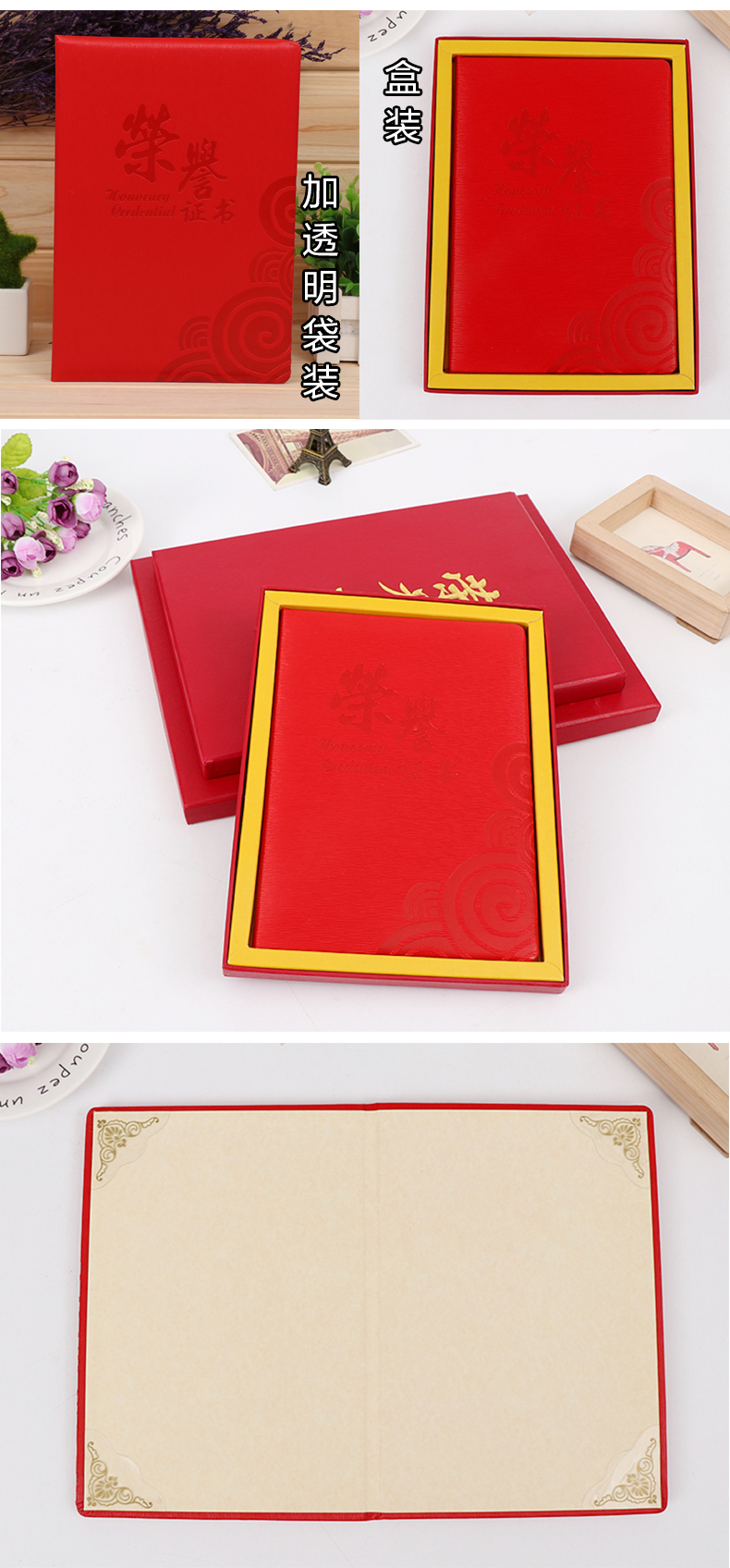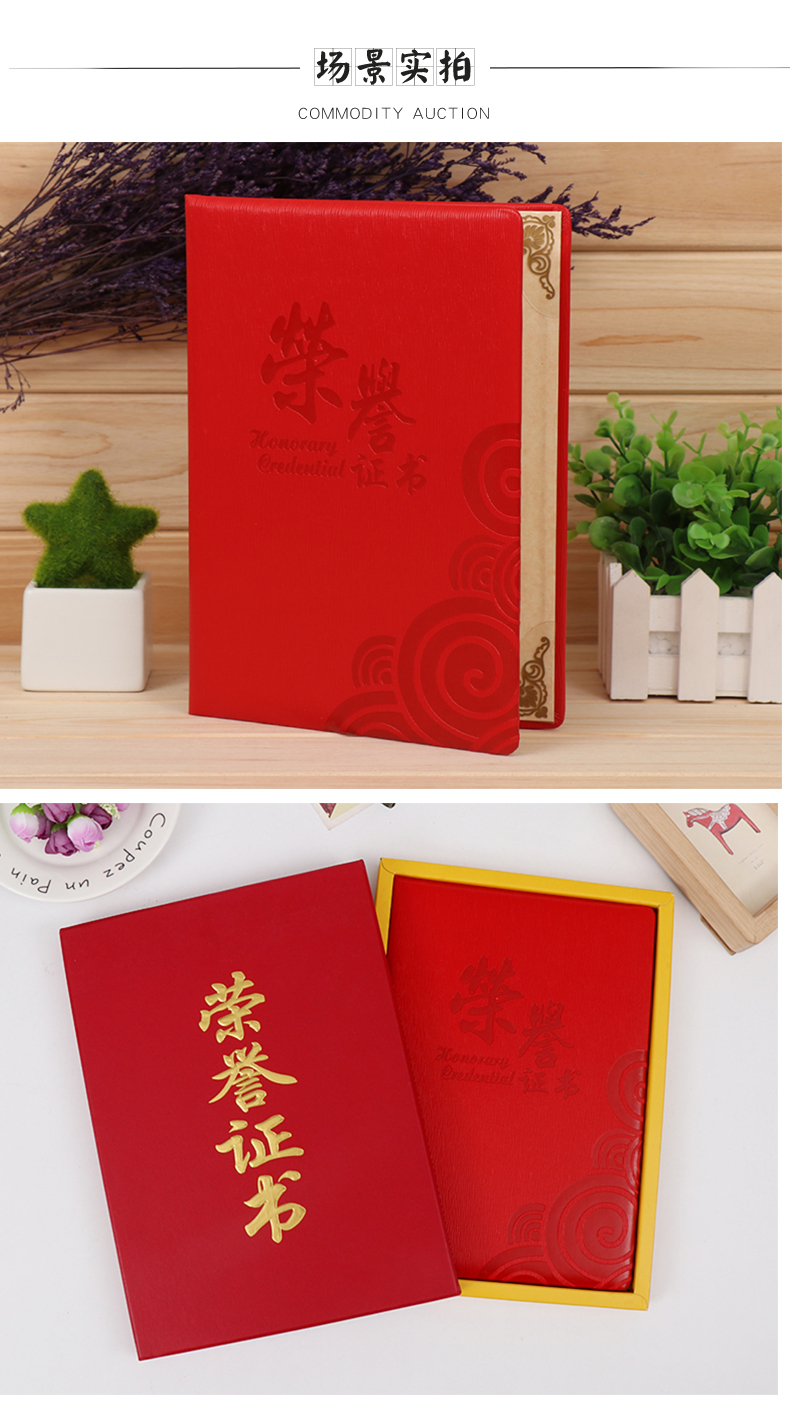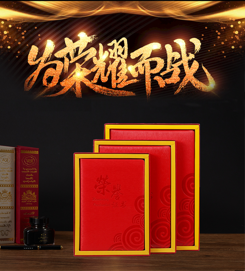 红绒面荣誉证书外