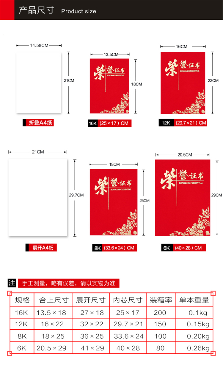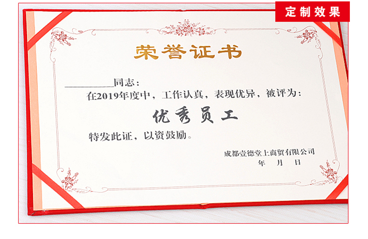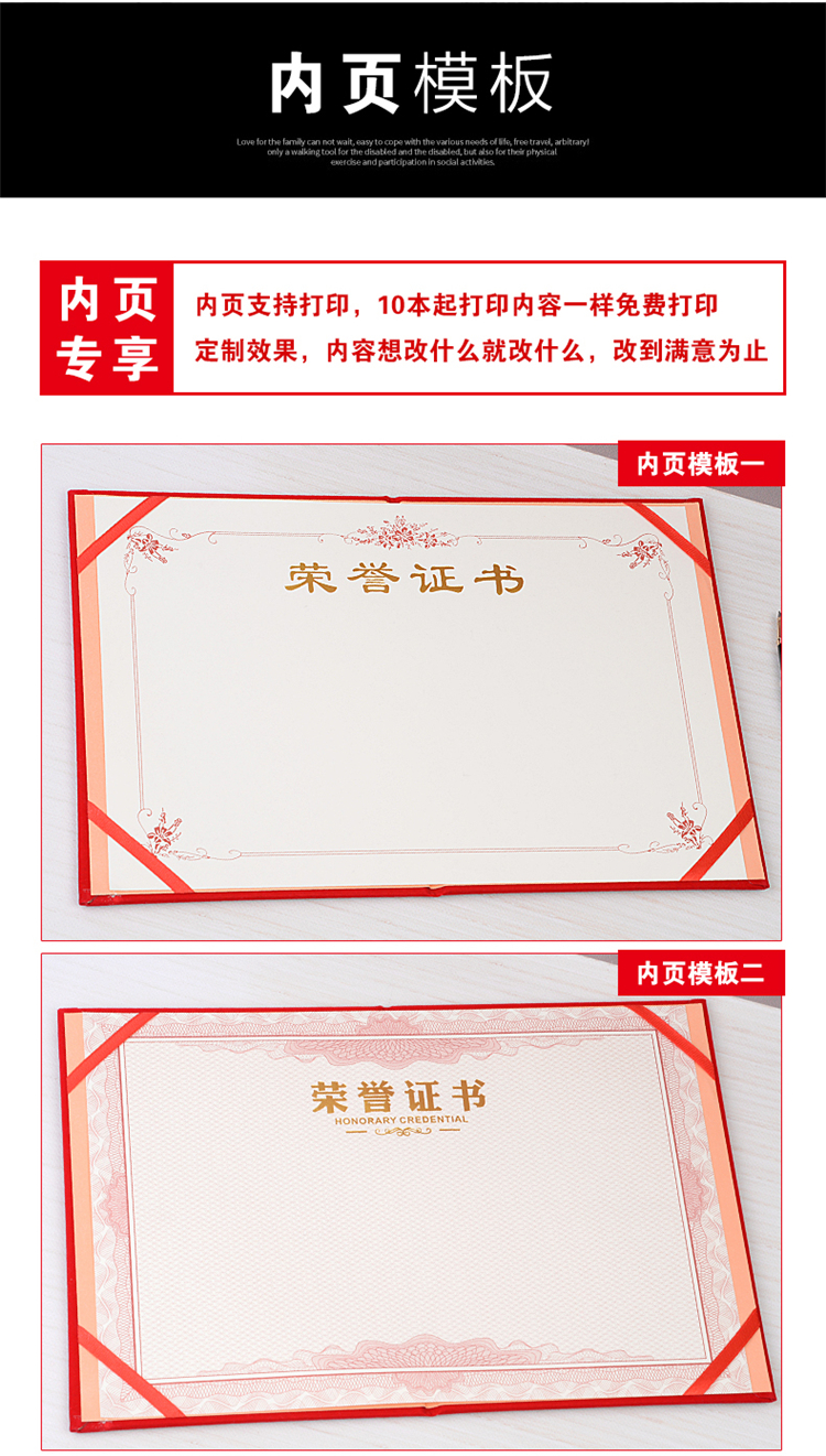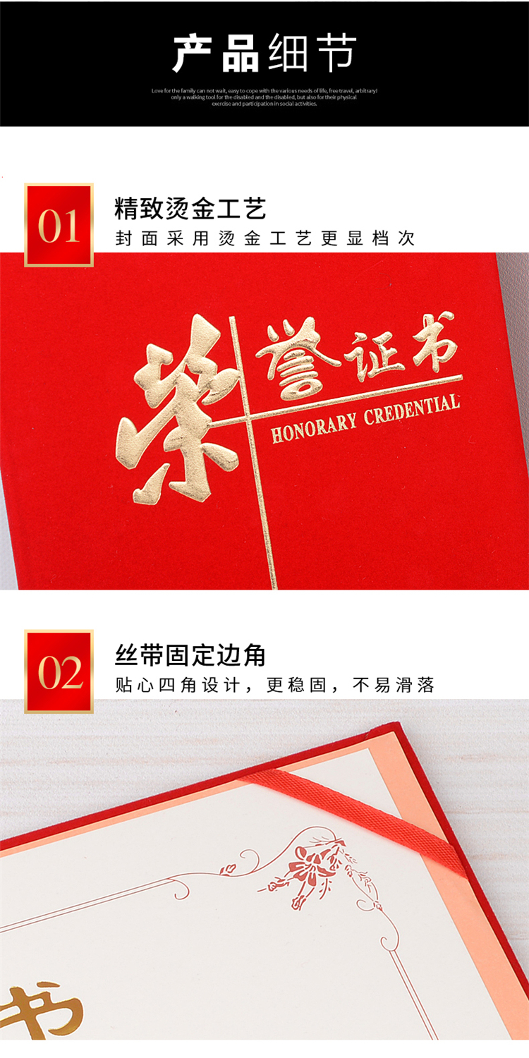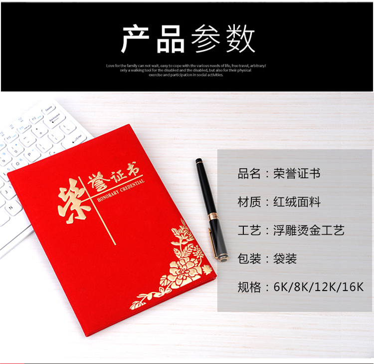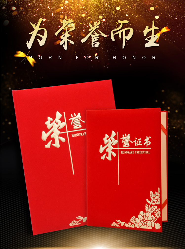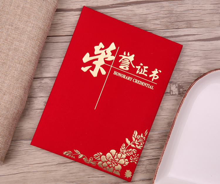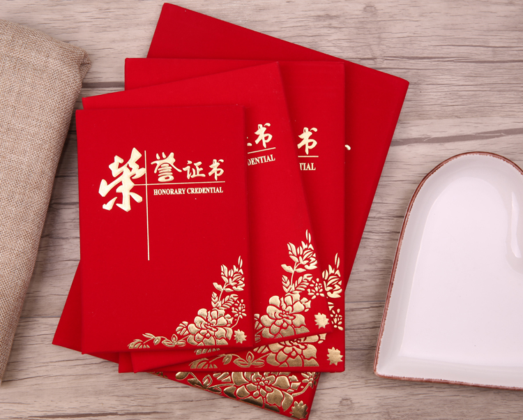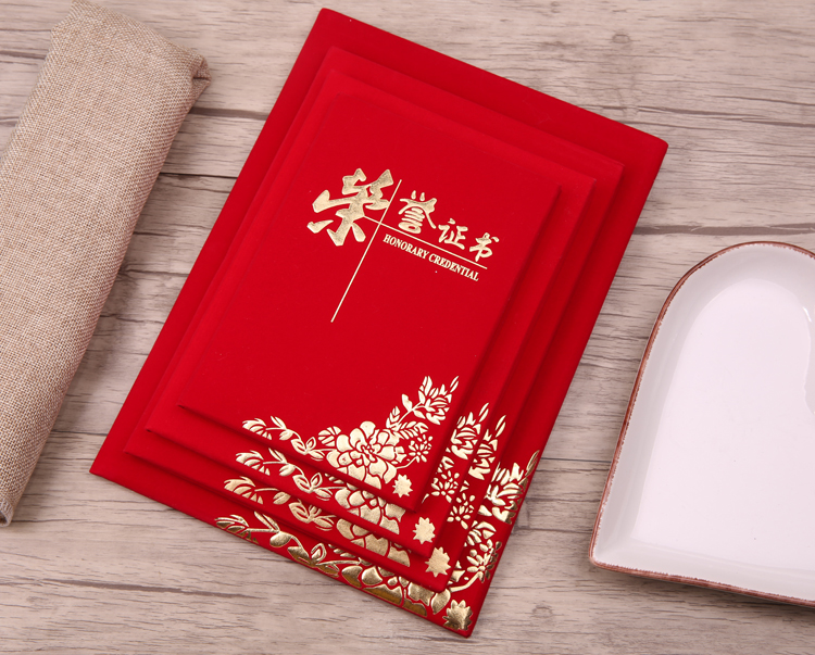 红绒面荣誉证书外