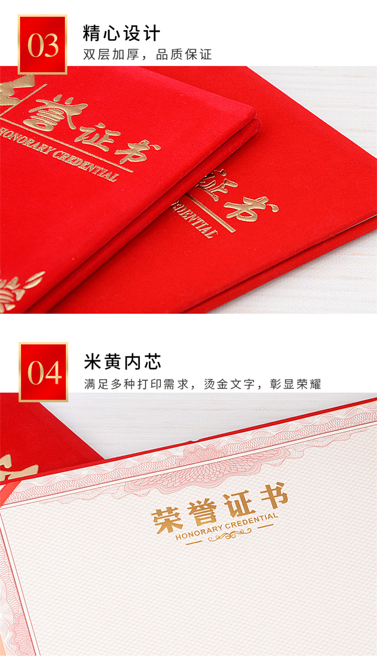 1055 / 高档绒面荣誉证书外壳封皮定做制作内页芯奖状结业a4获得奖定制
