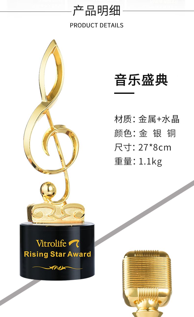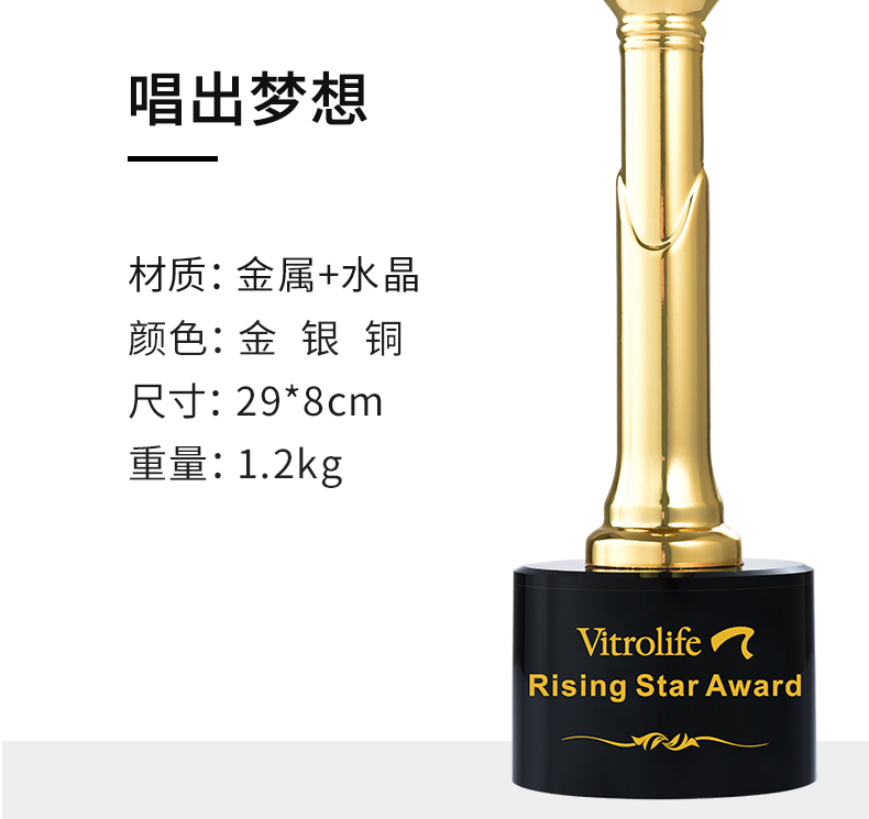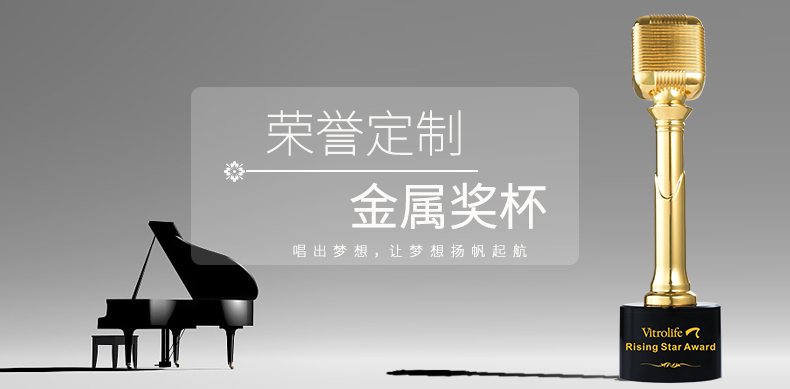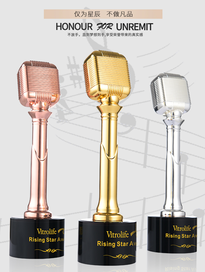 1096 / 好声音创意音乐歌咏比赛奖杯冠亚季军奖杯定做金属麦克风奖杯定制