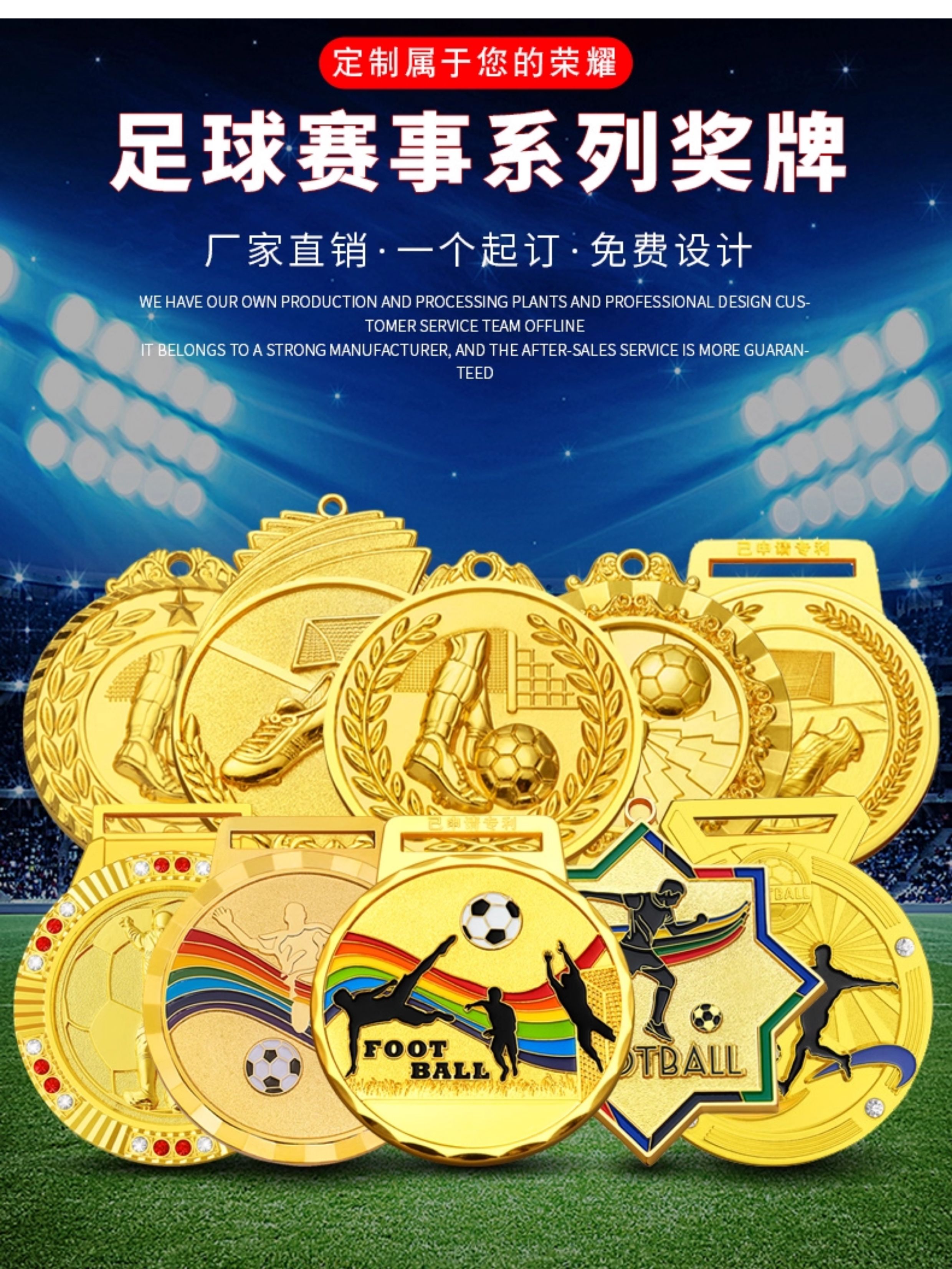 875 / 足球奖杯奖牌定制金属运动比赛挂牌定做创意儿童奖章金银铜纪念牌