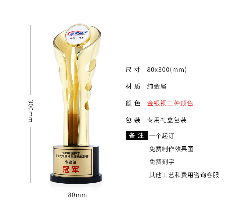 382 / 树脂纯金属奖杯金银铜定制定做冠军创意公司优秀员工年会颁奖奖牌