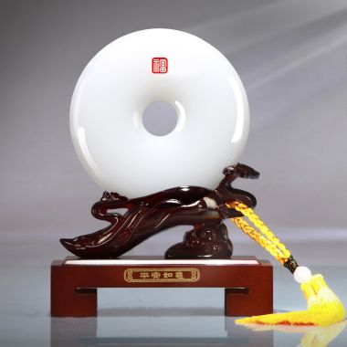 83 / 成都天然玉石平安扣珐琅彩泰山迎客松家居礼品装饰摆件桌…