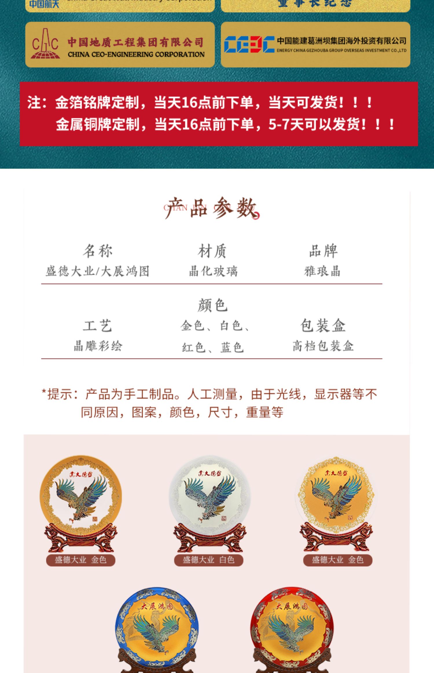 7 / 雅琅晶大展宏图摆件客厅老板办公室家居装饰老鹰工艺品开业纪念盘
