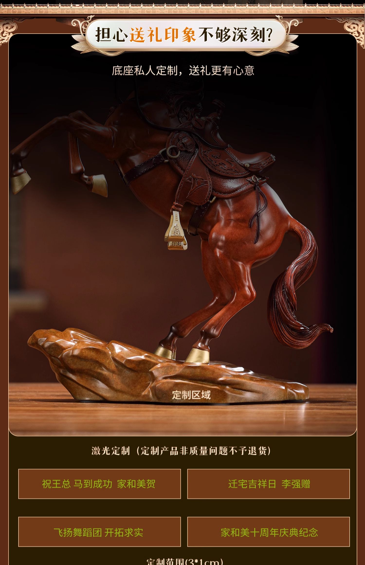 1130 / 礼之源檀溪战马黄铜马到成功摆件办公室高级感装饰品乔迁开业礼品
