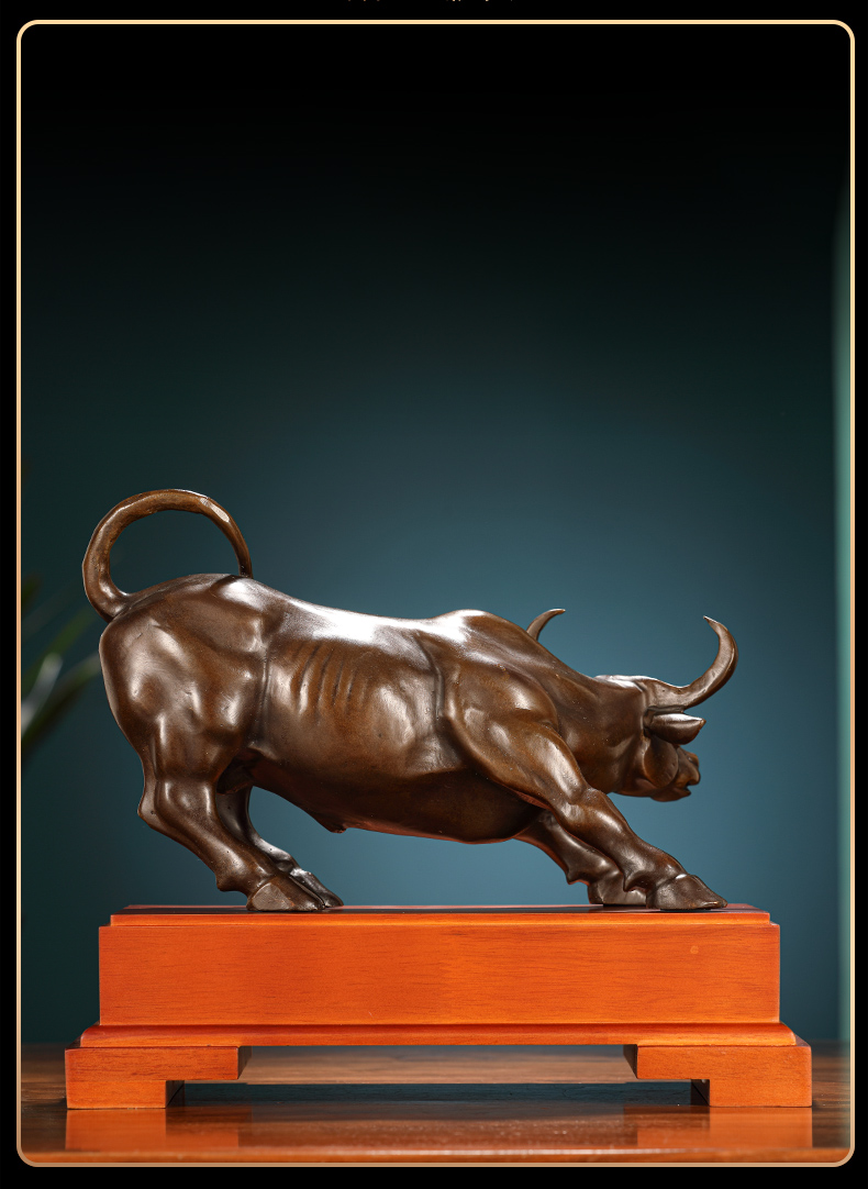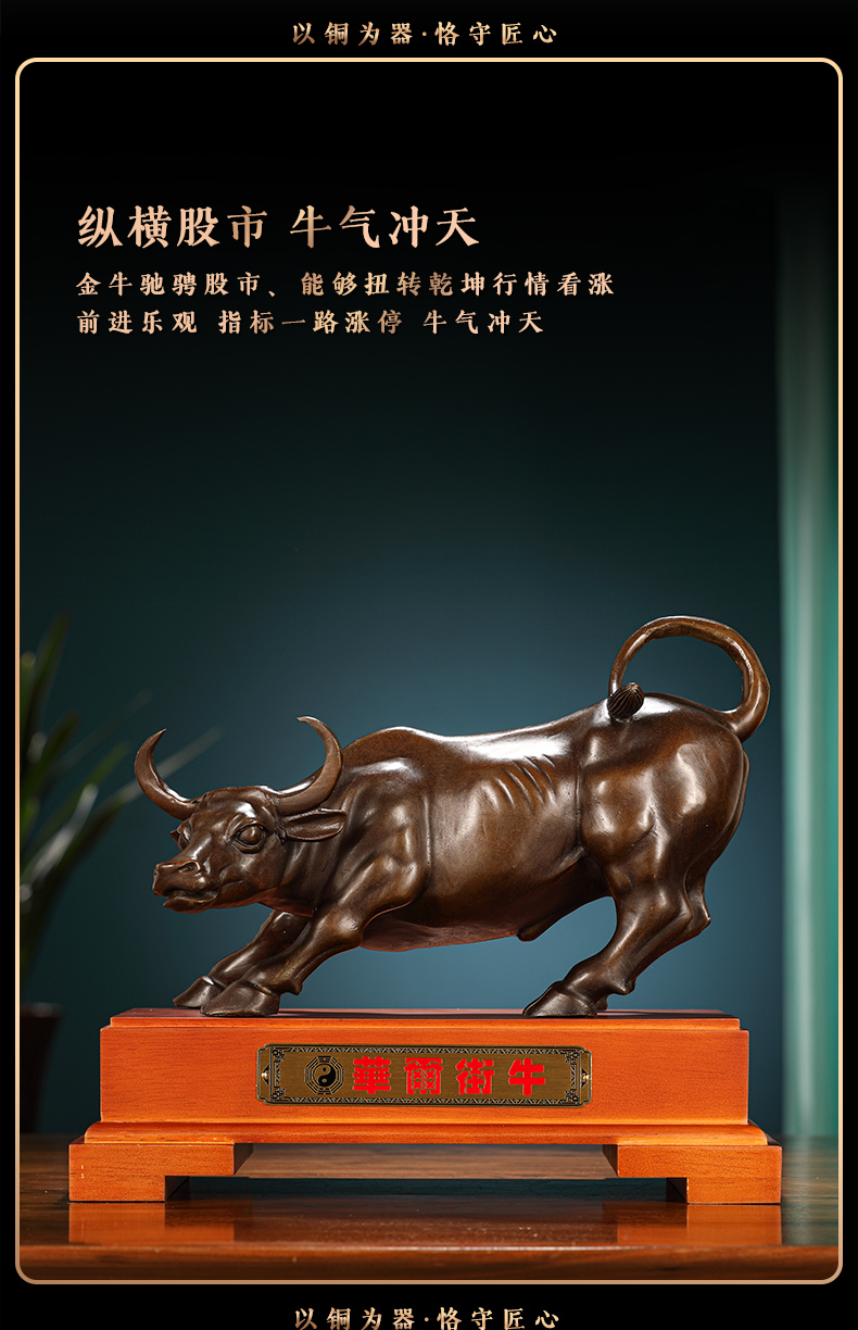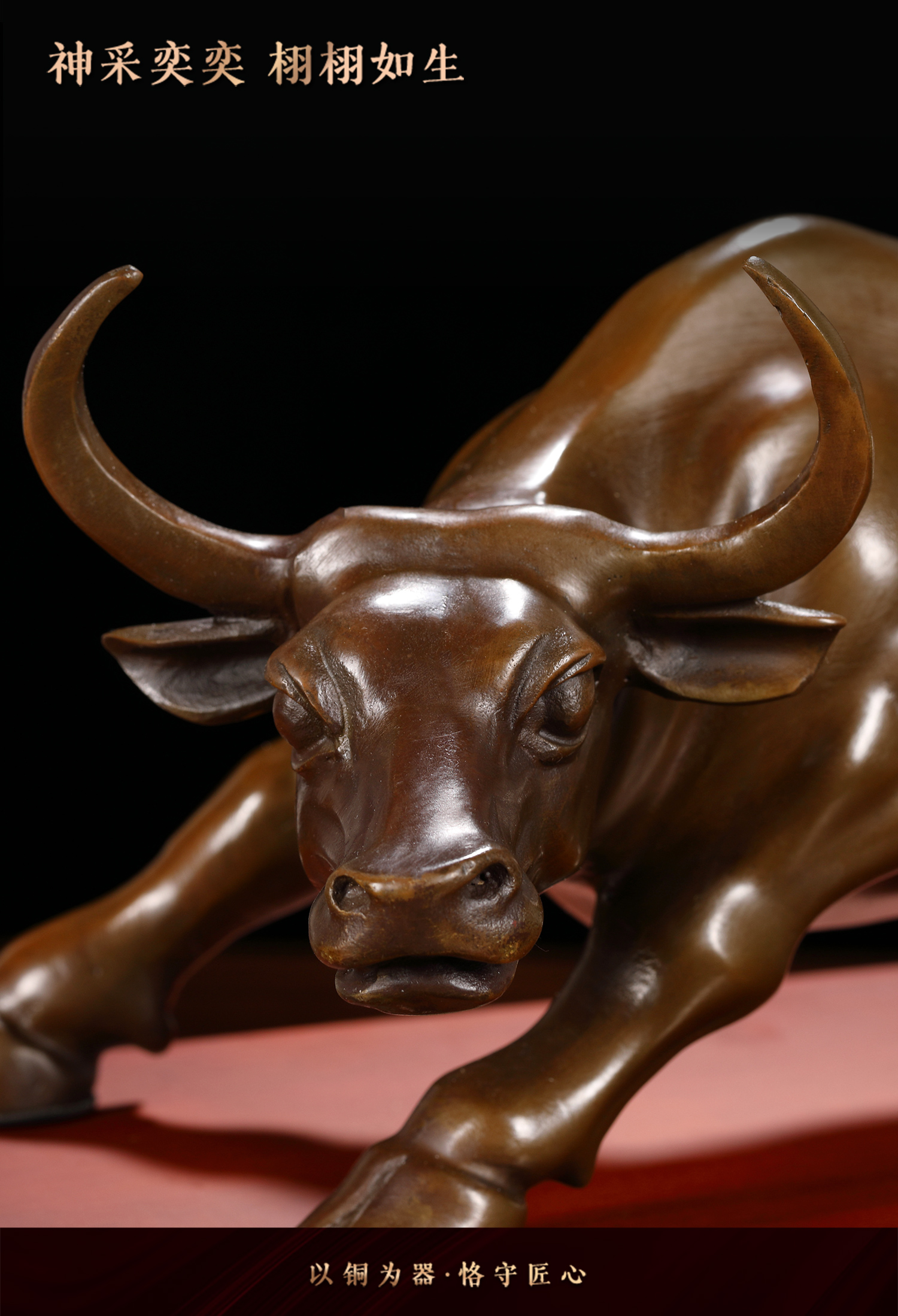 33 / 大铜世家黄铜华尔街牛摆件客厅酒柜玄关办公室桌面装饰品工艺礼品