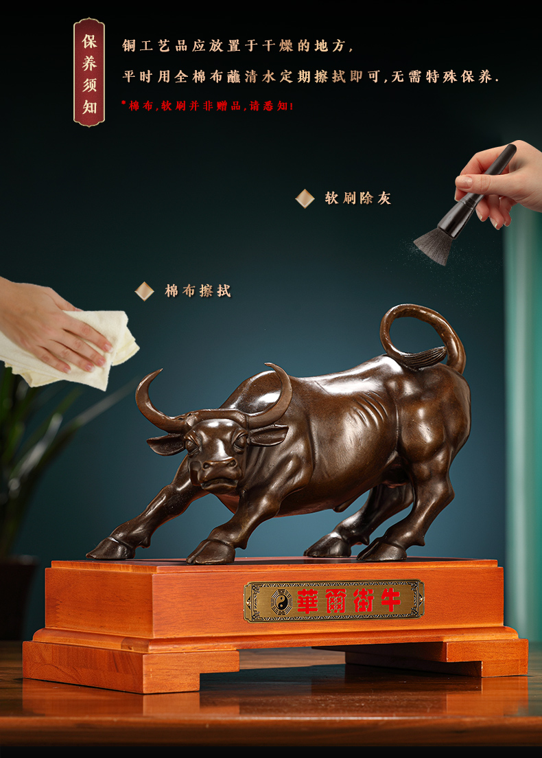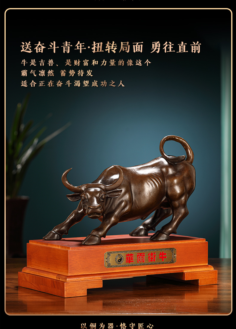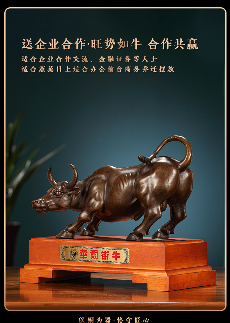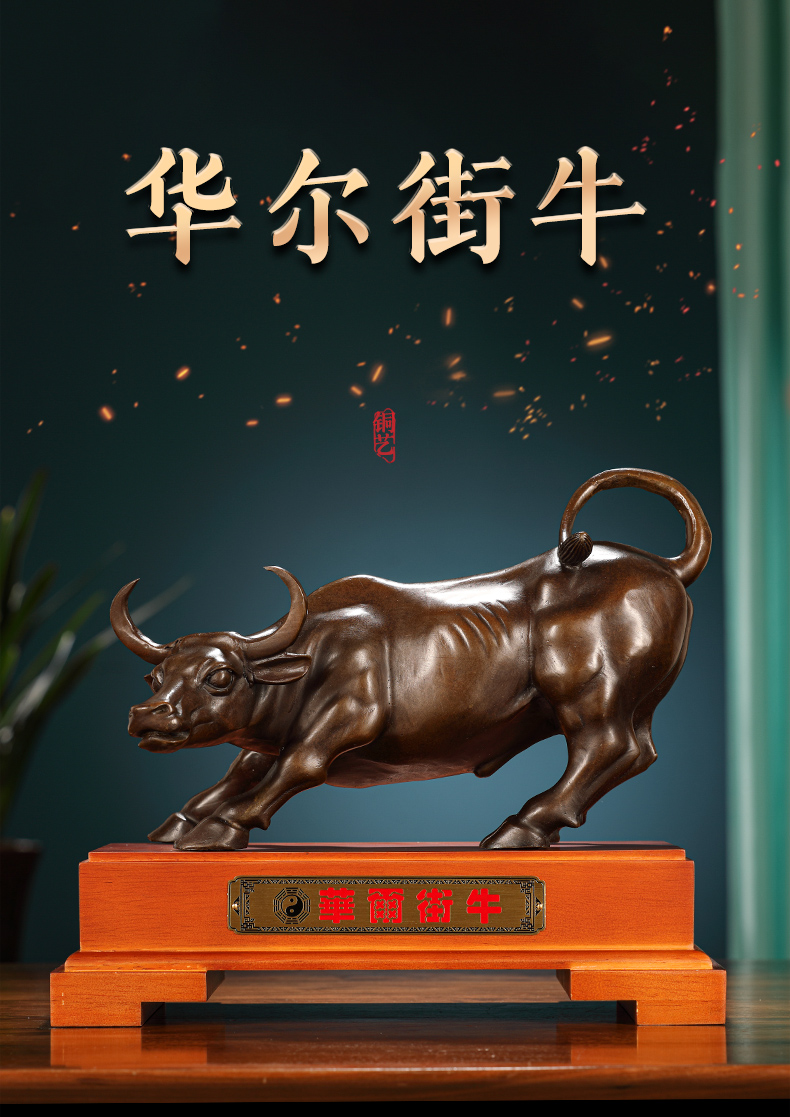 33 / 大铜世家黄铜华尔街牛摆件客厅酒柜玄关办公室桌面装饰品工艺礼品