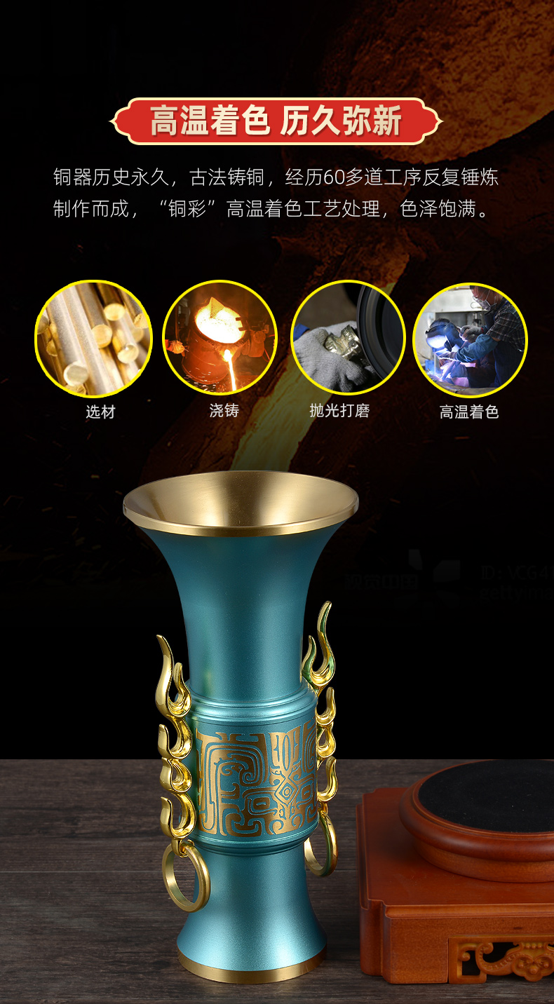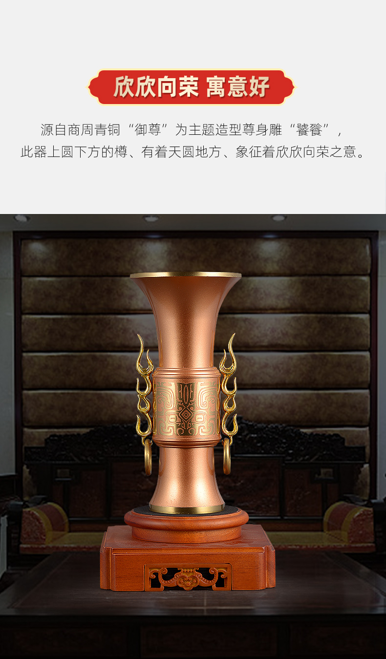 35 / 彩铜中国尊摆件蒸蒸日上客厅办公室老板桌工艺品御尊摆设商务礼品