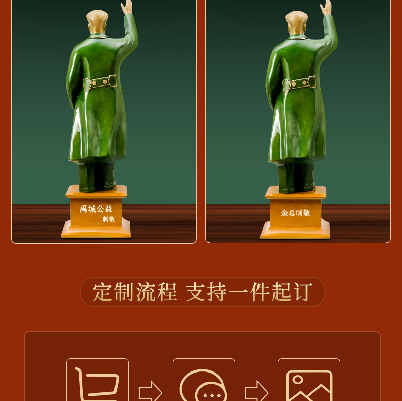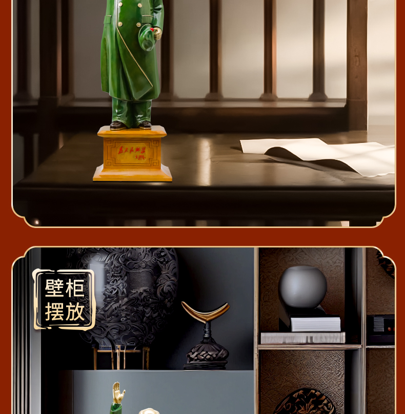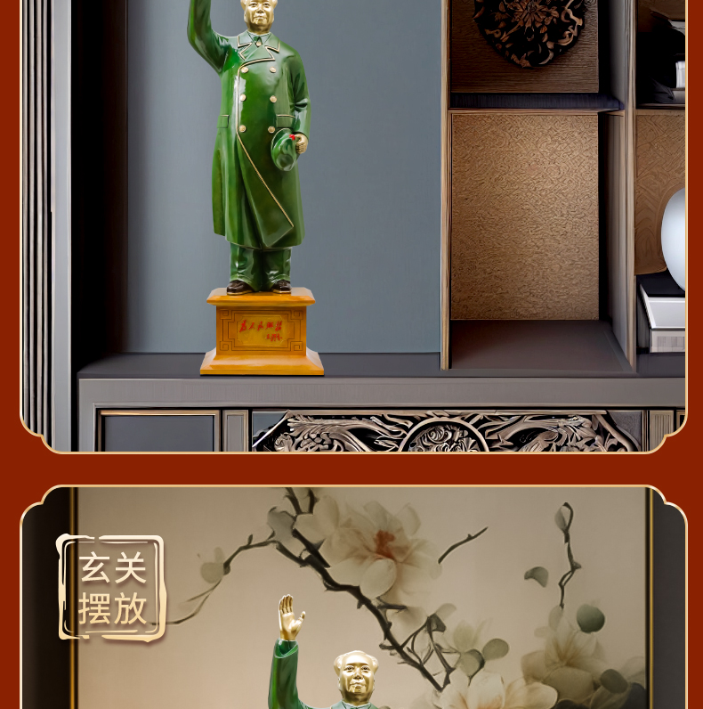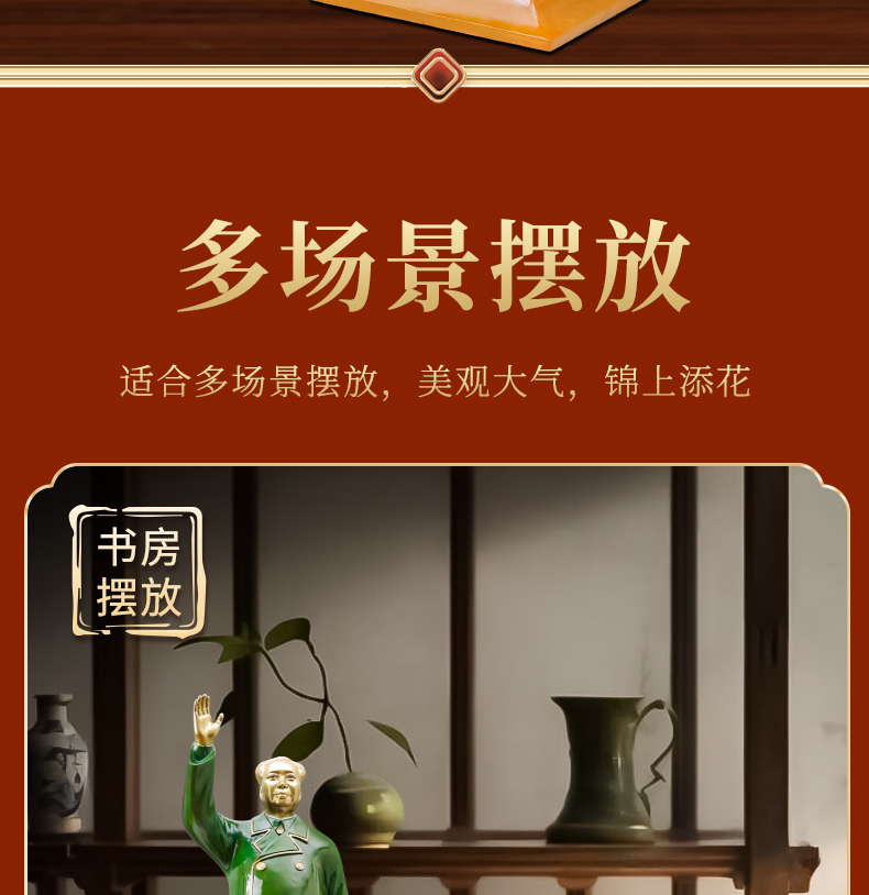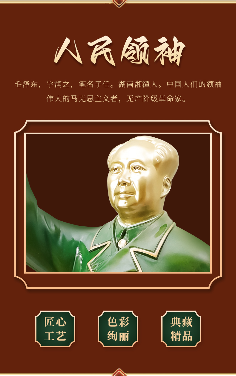 50 / 黄铜毛泽东摆件毛主席伟人像办公室桌面为人民服务书房全身雕塑像